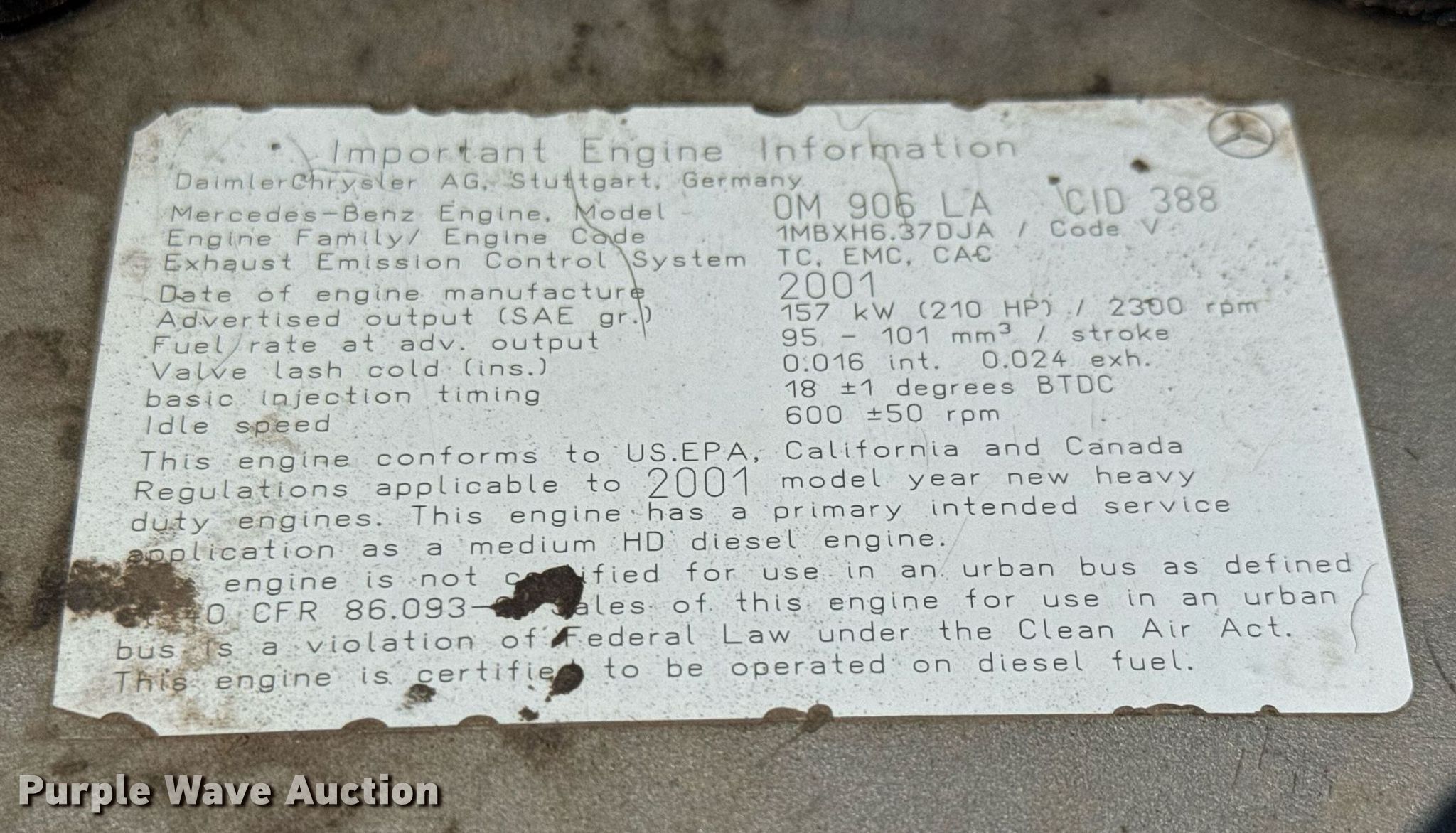 2002 Freightliner Business Class M2 refuse truck. Miles: 153,556 on odometer, VIN: 1FVABUCS12HJ63672. Engine Mercedes-Benz 0M 906 LA, Displacement: 6.4L, Cylinders: 6, Fuel type: Diesel. Transmission Automatic. Chassis Axles: Single, Suspension: Spring, Brakes: Air, PTO, GVWR: 35,000 lbs. Interior Heat, Cruise control. Features Refuse bed Cranton 20RL Viper, Serial: 2881-8-00, Load: Rear, Winch. Tires Size: 11R22.5. Notes Dash warning indicator: ABS, Windshield chipped or cracked, Dead battery. Kansas title. Title distribution may be delayed up to 14 days from verification of funds. El Dorado, KS 67042