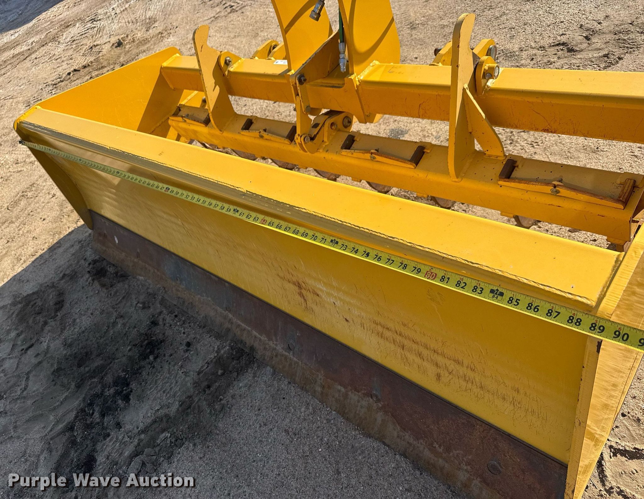 Purple Wave is selling a used Ag Equip. Other in Kansas. This item is a Box blade with the following: Shanks: 8, Lift: Hydraulic, Hitch: Three point, Width: 89"