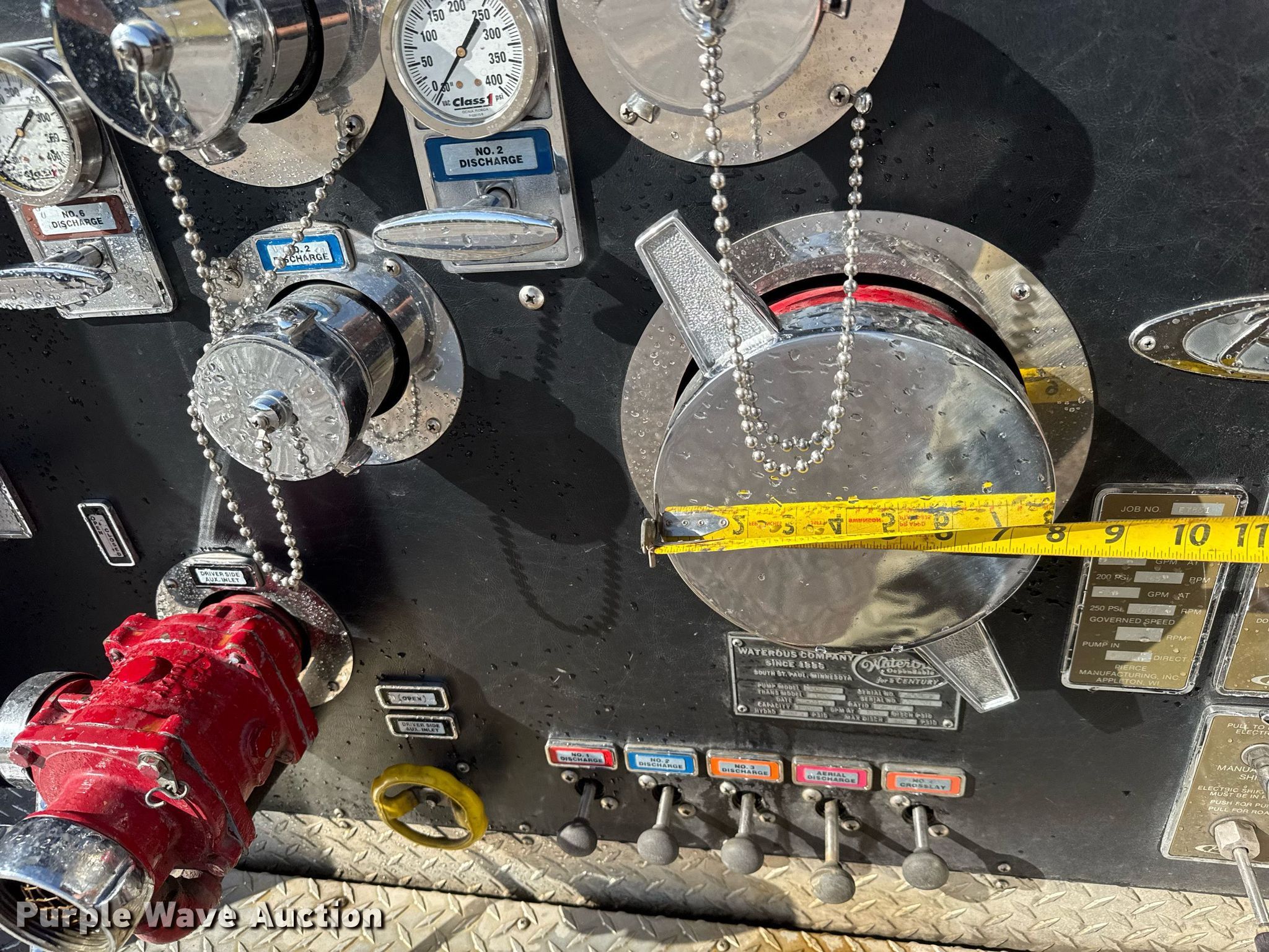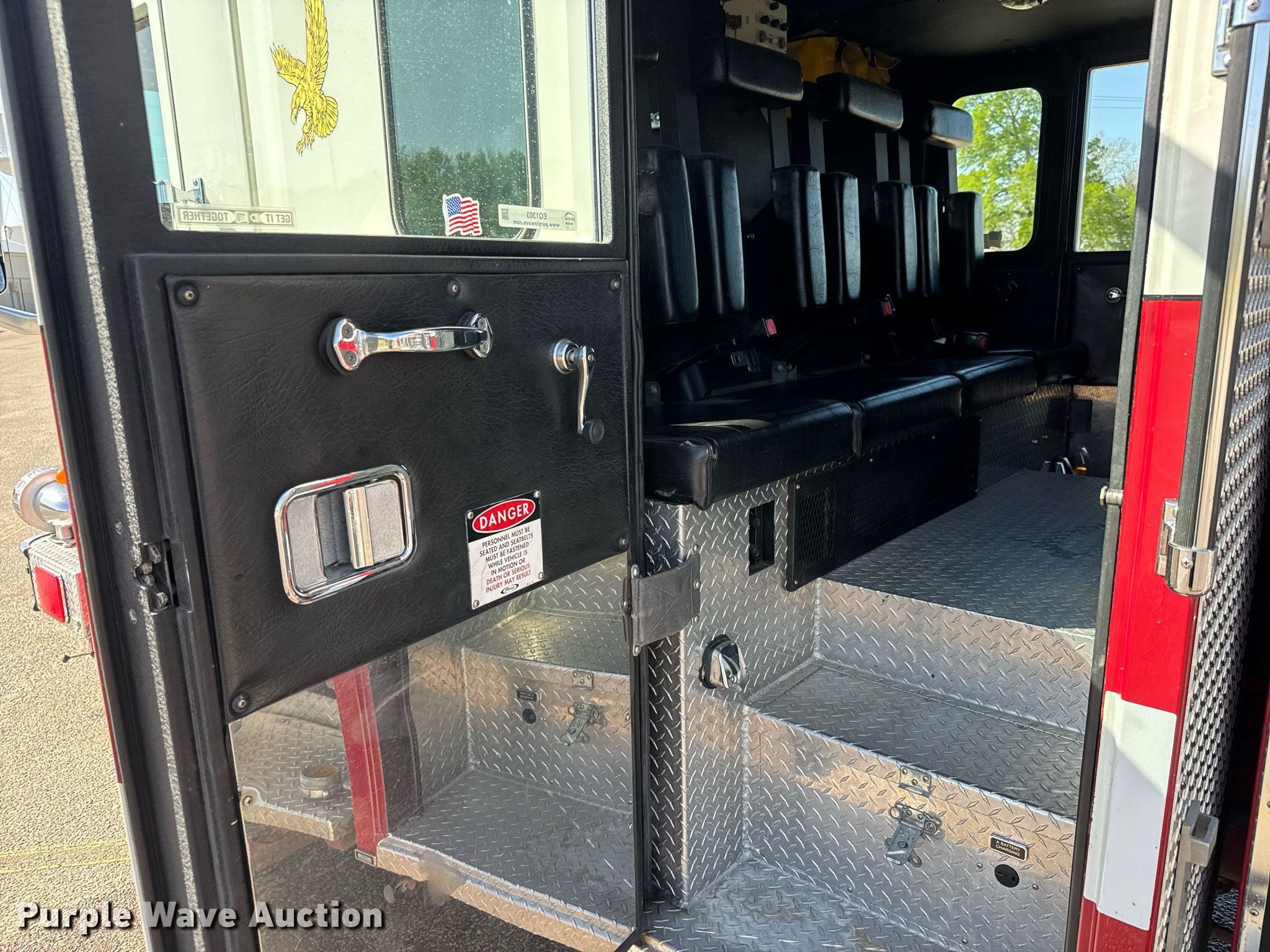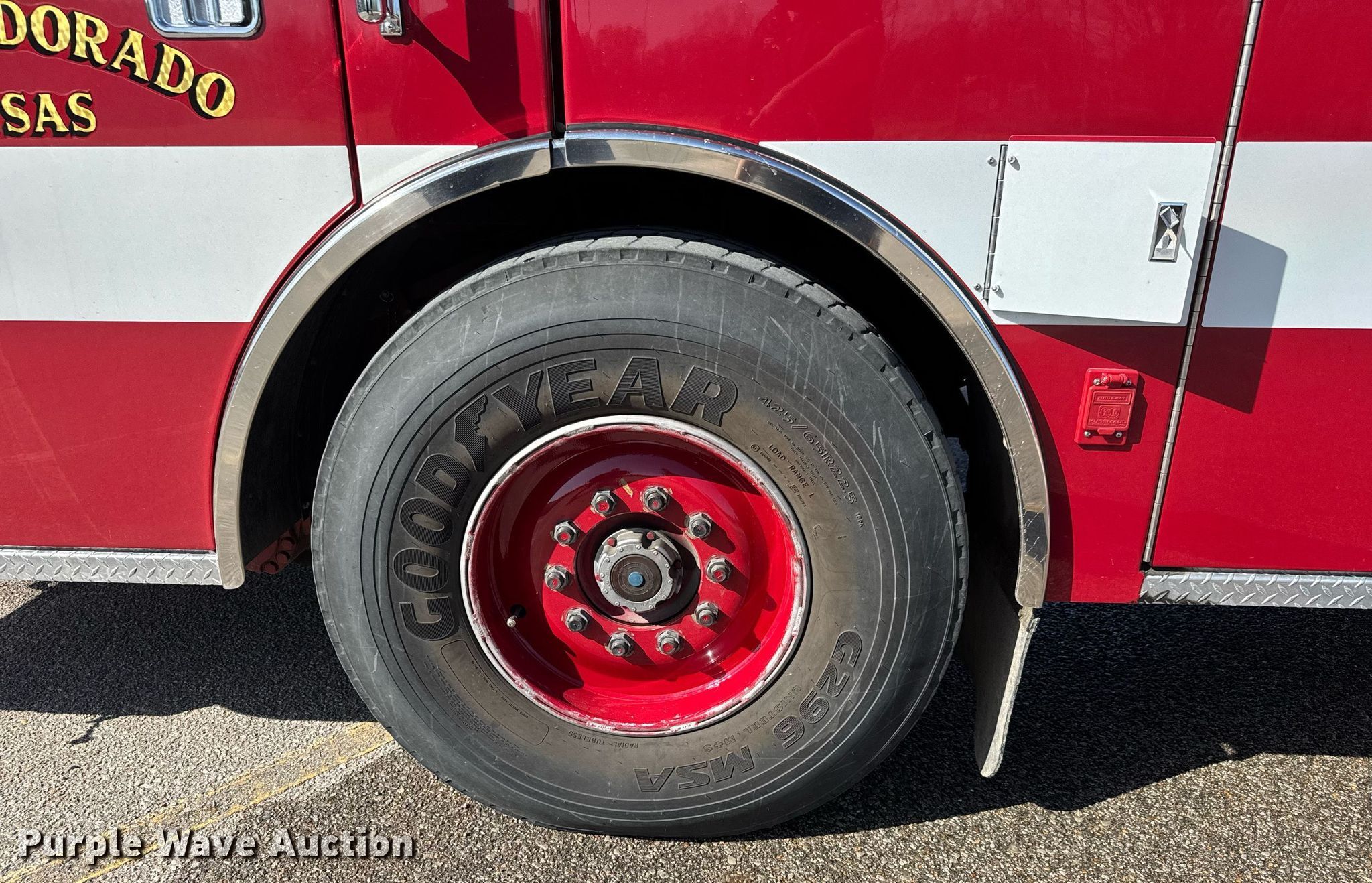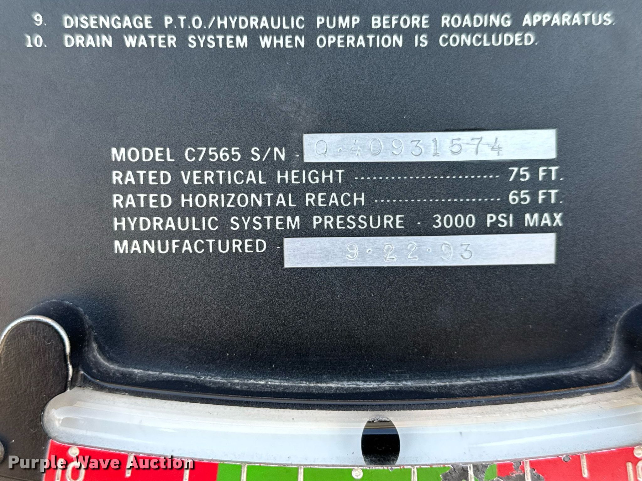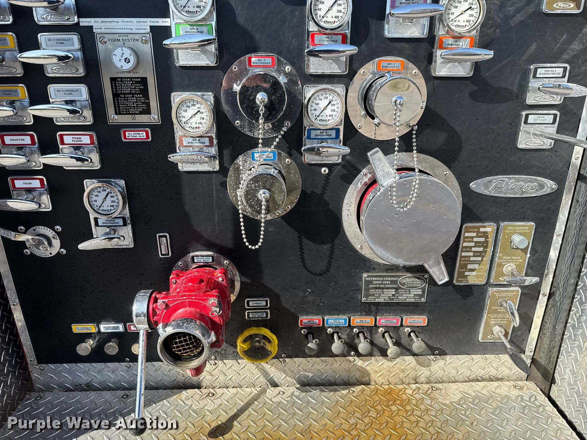 1993 Pierce Lance quint fire truck. Miles: 34,331 on odometer, Hours: 4,715 on meter, VIN: 4P1CT02D7PA000691. Engine Detroit Diesel 6V 92TA DDEC, Displacement: 552 C.I.D., Cylinders: 6, Fuel type: Diesel, HP: 350. Transmission Automatic. Chassis Axles: Single, Suspension: Spring, Brakes: Air, GVWR: 52,000 lbs. Interior AC, Heat, Backup camera. Features Fire truck body Aerial Model: Tele Squrt-75 C7565, Maximum height: 75', Maximum lift capacity: 700 lbs, Stabilizers Quantity: 4, Elevated deck gun 75 gpm, Tank Capacity: 500 gallons, Pump 1,500 gpm, Hours: 489 on meter, Ground ladder, Generator Honda EM5000S, Fuel type: Gas, PA/ siren controls. Tires Size: 425/65R22.5. Notes Possible chip or crack in aerial ladder turntable, Aerial ladder rotation issues, slow clockwise rotation, Hydraulic leak, Unknown operating condition of AC. Kansas title. Title distribution may be delayed up to 14 days from verification of funds. El Dorado, KS 67042