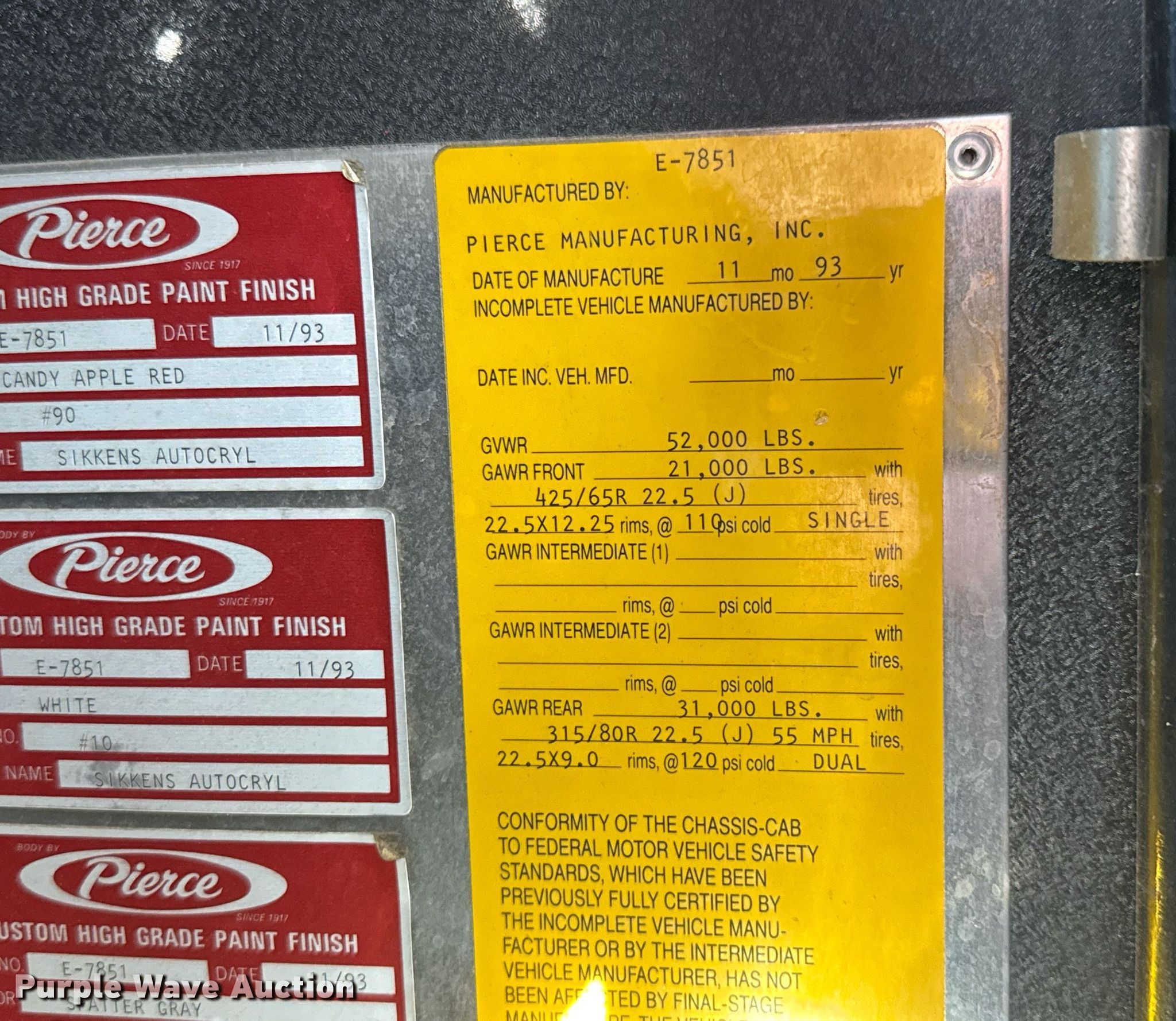 1993 Pierce Lance quint fire truck | SOLD! May 13 Government Auction