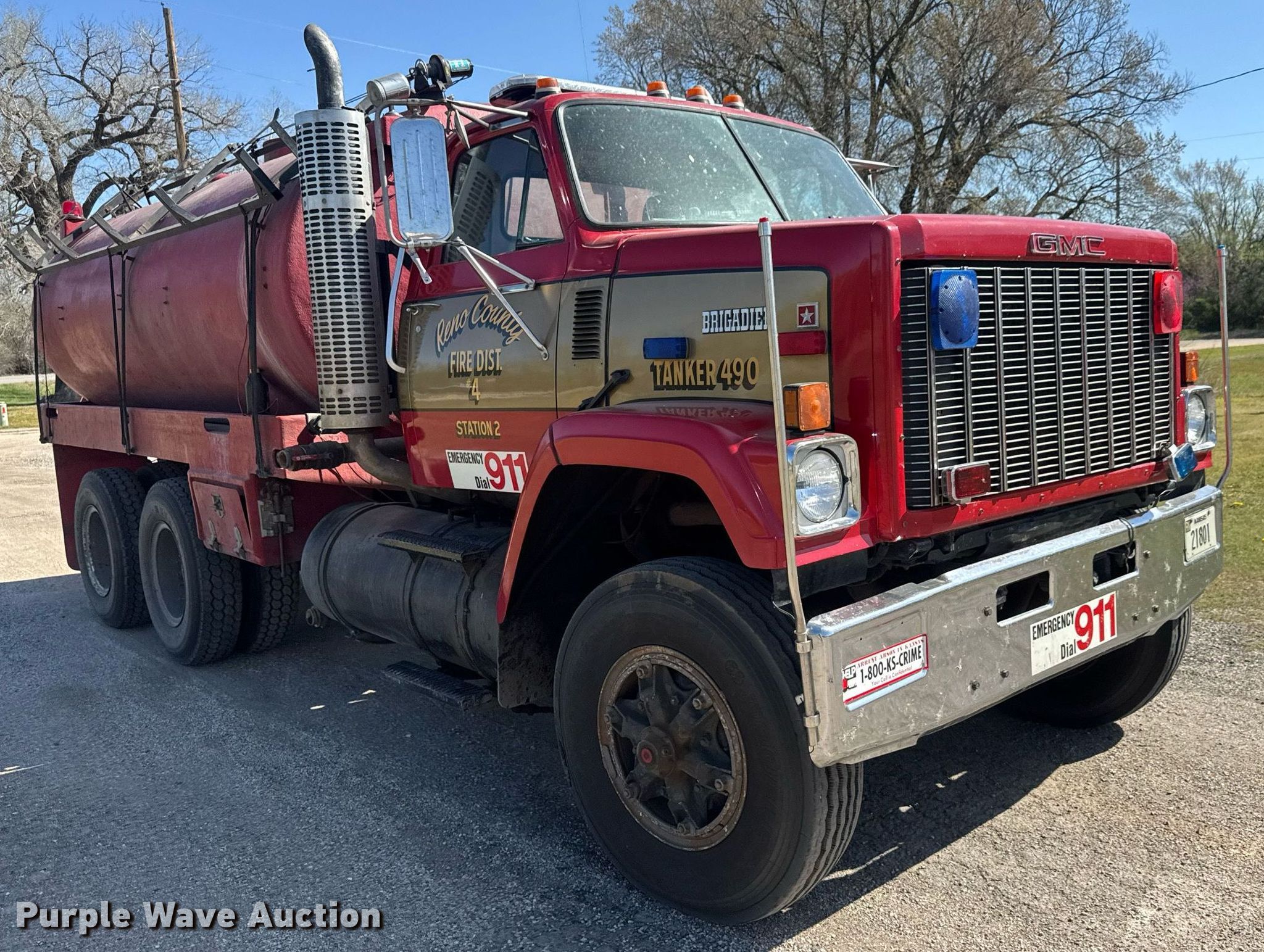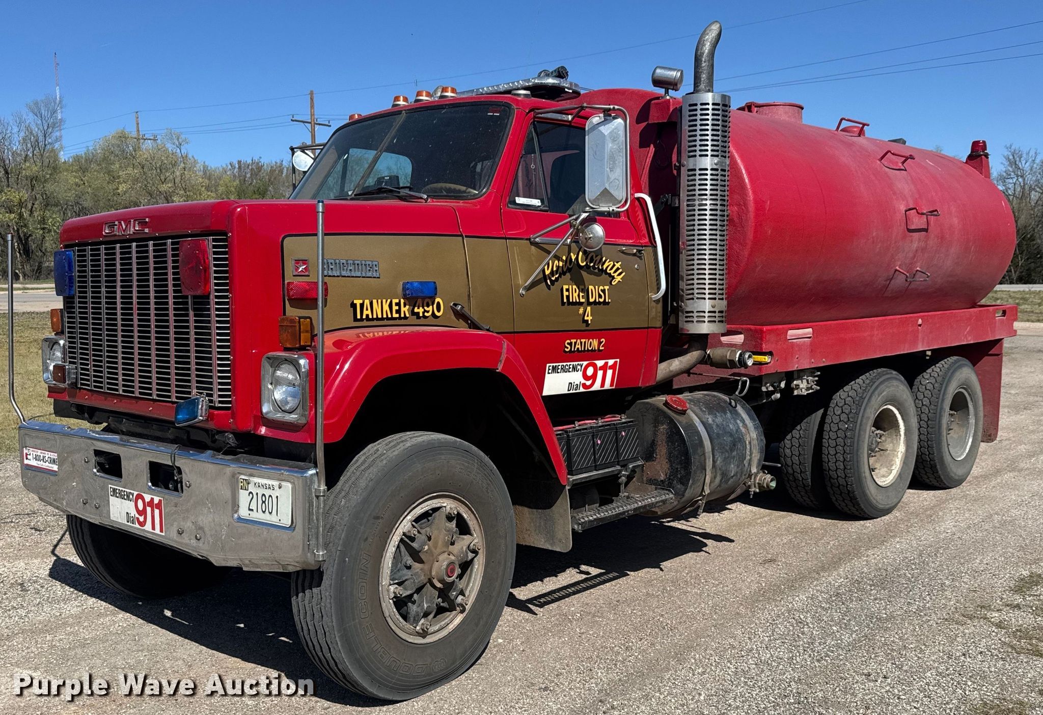 Purple Wave is selling a used Tank Truck or Water Truck in Kansas. This item is a 1979 GMC Brigadier tank truck with the following: Miles: 492,727 on odometer, Hours: 1,219 on meter, VIN: T49CH9V576273, Unit #: Tanker 490