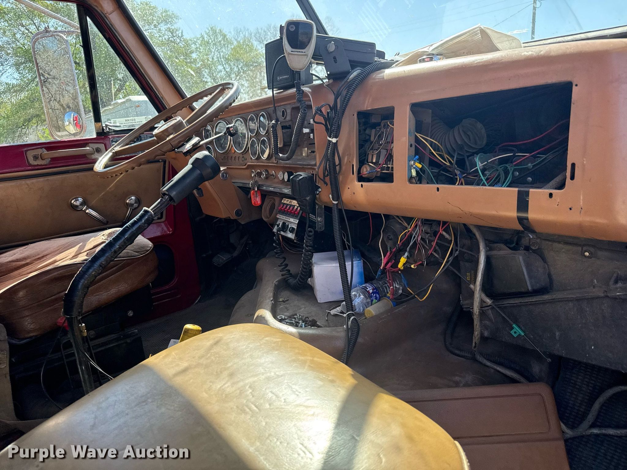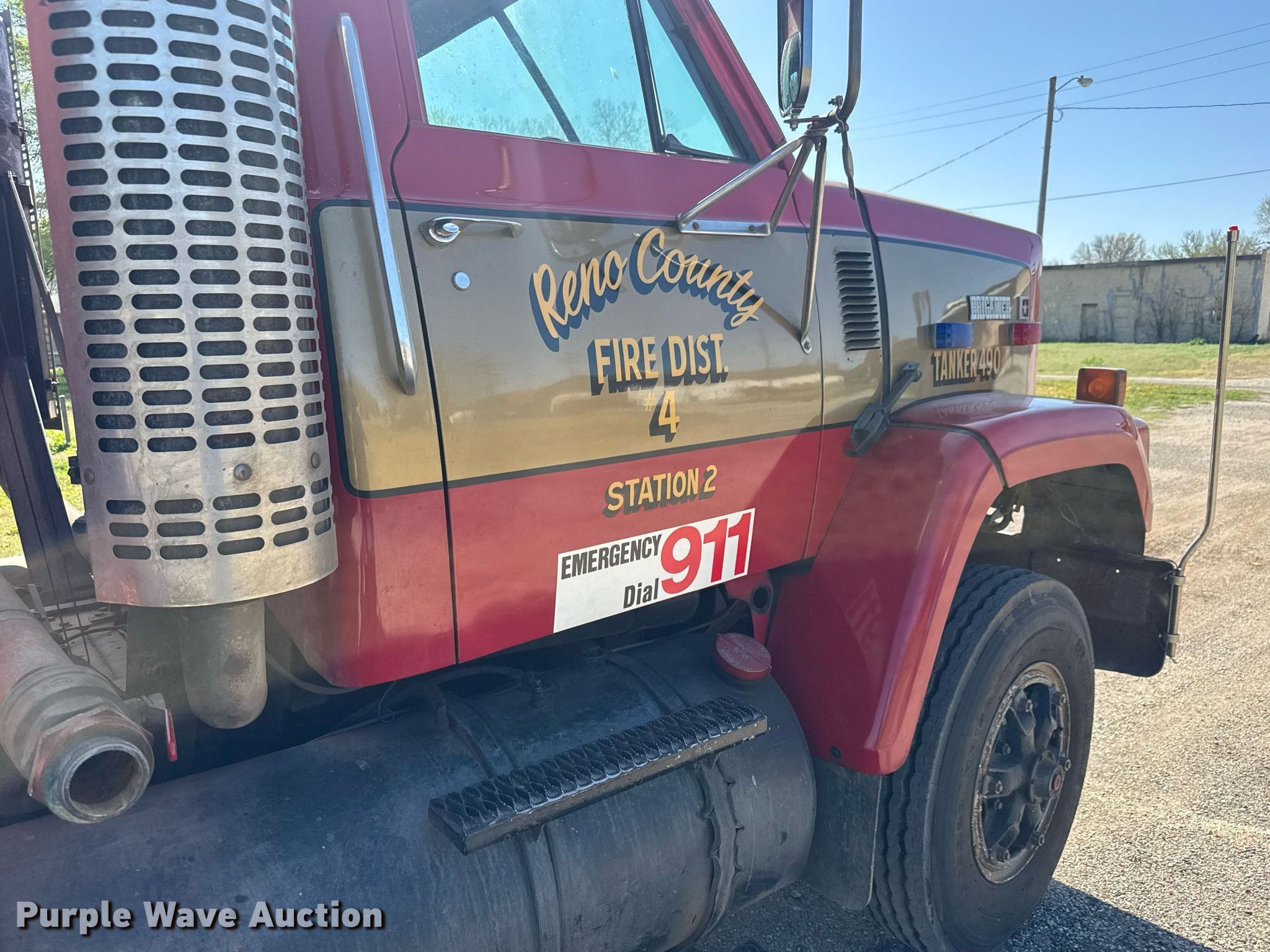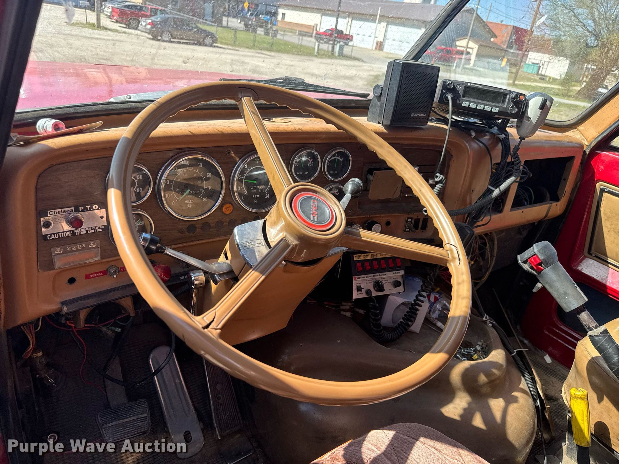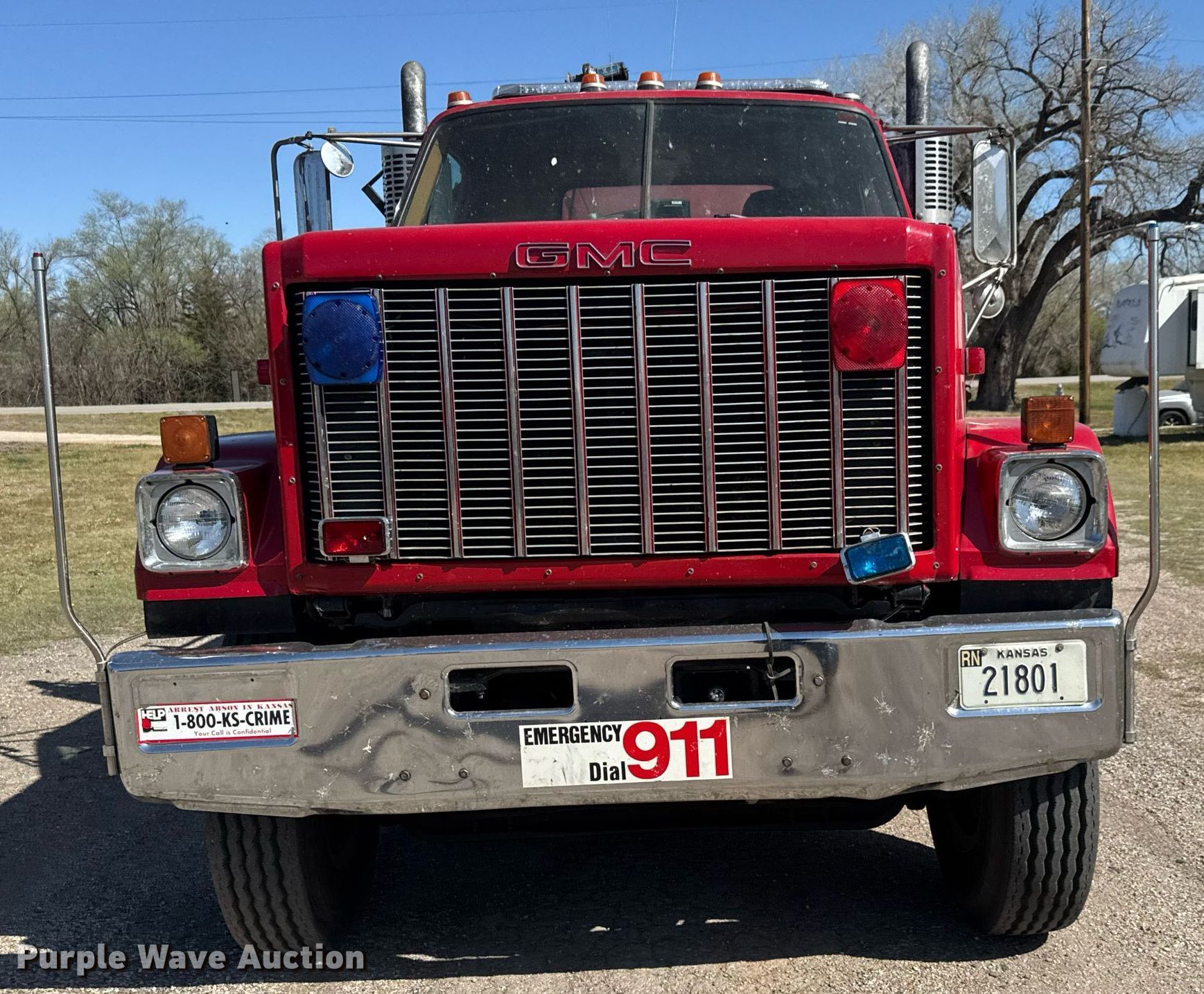 1979 GMC Brigadier tank truck. Miles: 492,727 on odometer, Hours: 1,219 on meter, VIN: T49CH9V576273, Unit #: Tanker 490. Engine Detroit Diesel, Cylinders: 8, Fuel type: Diesel. Transmission Manual, Speed: 9. Chassis Axles: Tandem, Differential lock: Inter-axle, Suspension: Spring, Brakes: Air, PTO, GVWR: 44,860 lbs. Interior Heat. Features Bed / tank Glass King, Serial: 002164, Capacity: 3,500 gallons, 15' L x 94" W, Side discharge, Top fill, Rear drain: 8". Tires Size: 10.00R20. Kansas title. Title distribution may be delayed up to 14 days from verification of funds. Reno County Rural Fire Dept District 4. Arlington, KS 67514