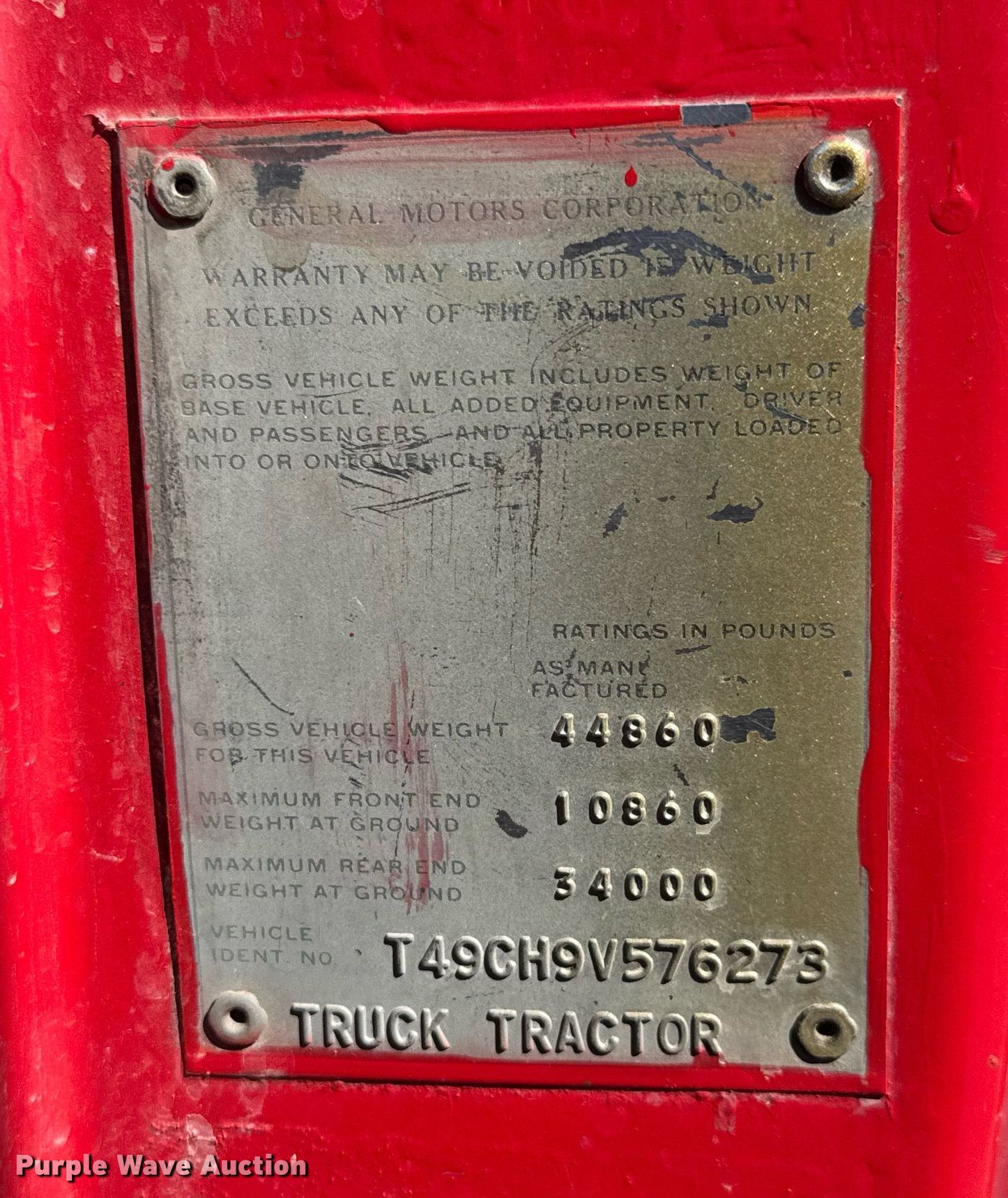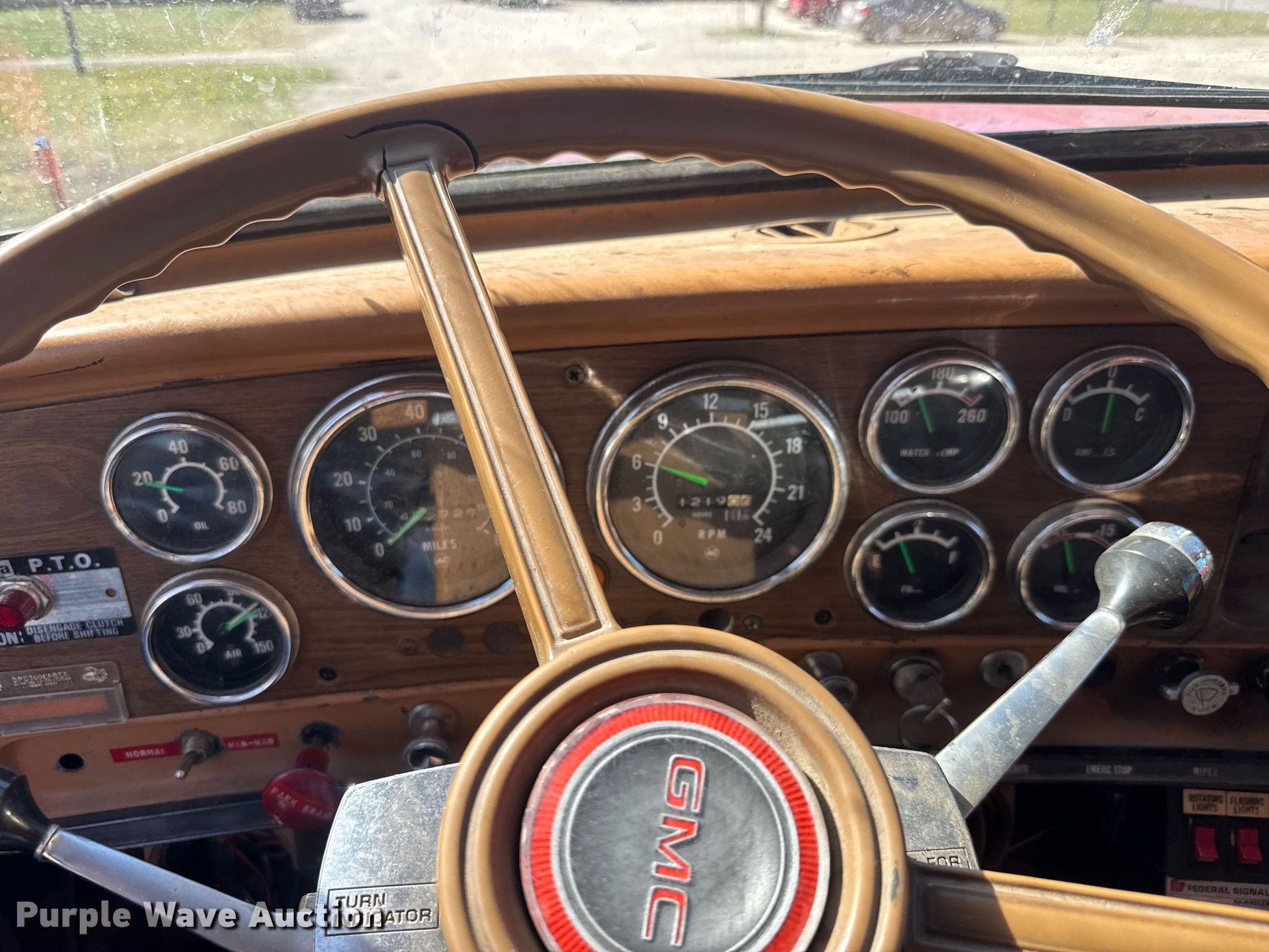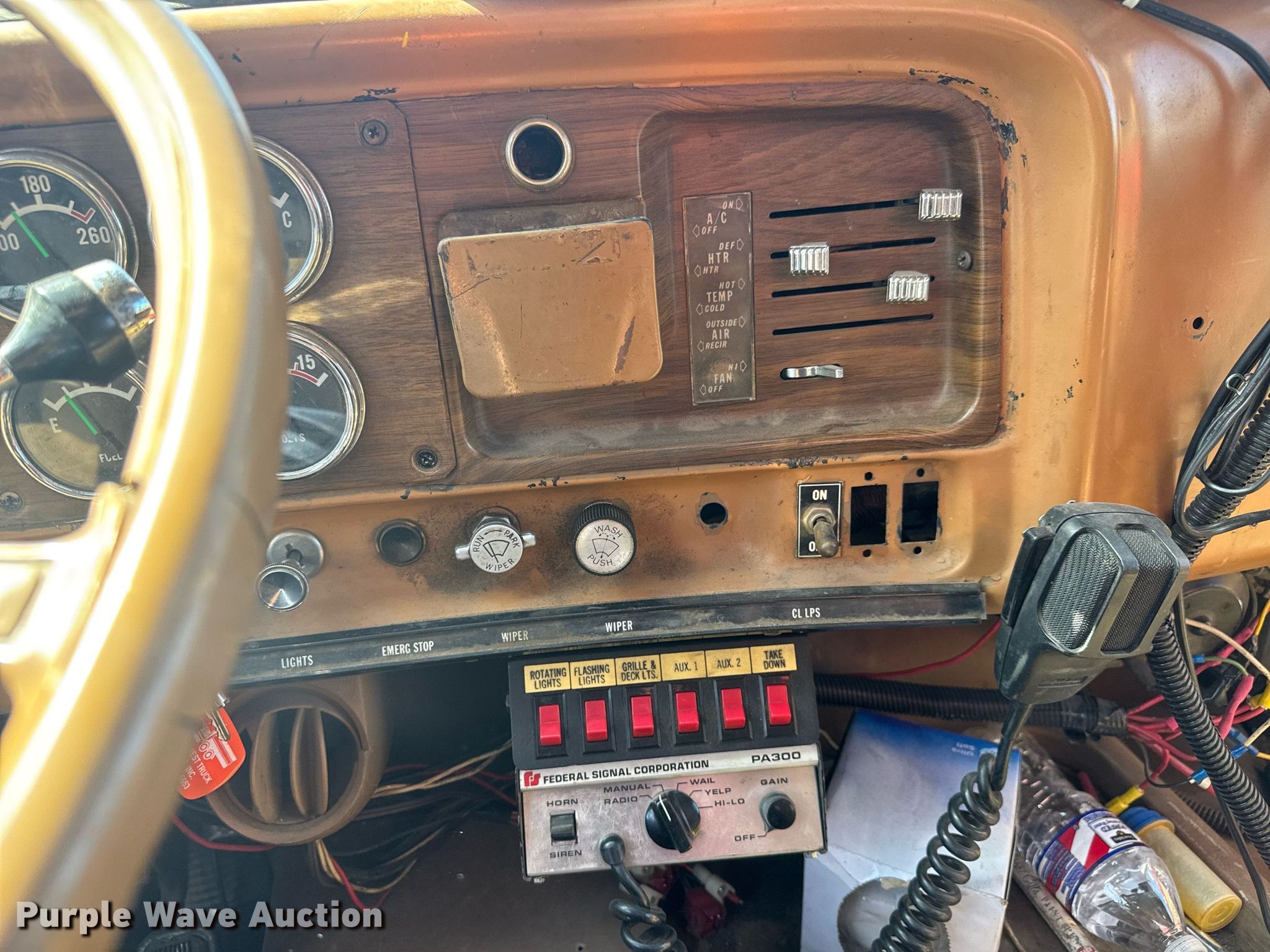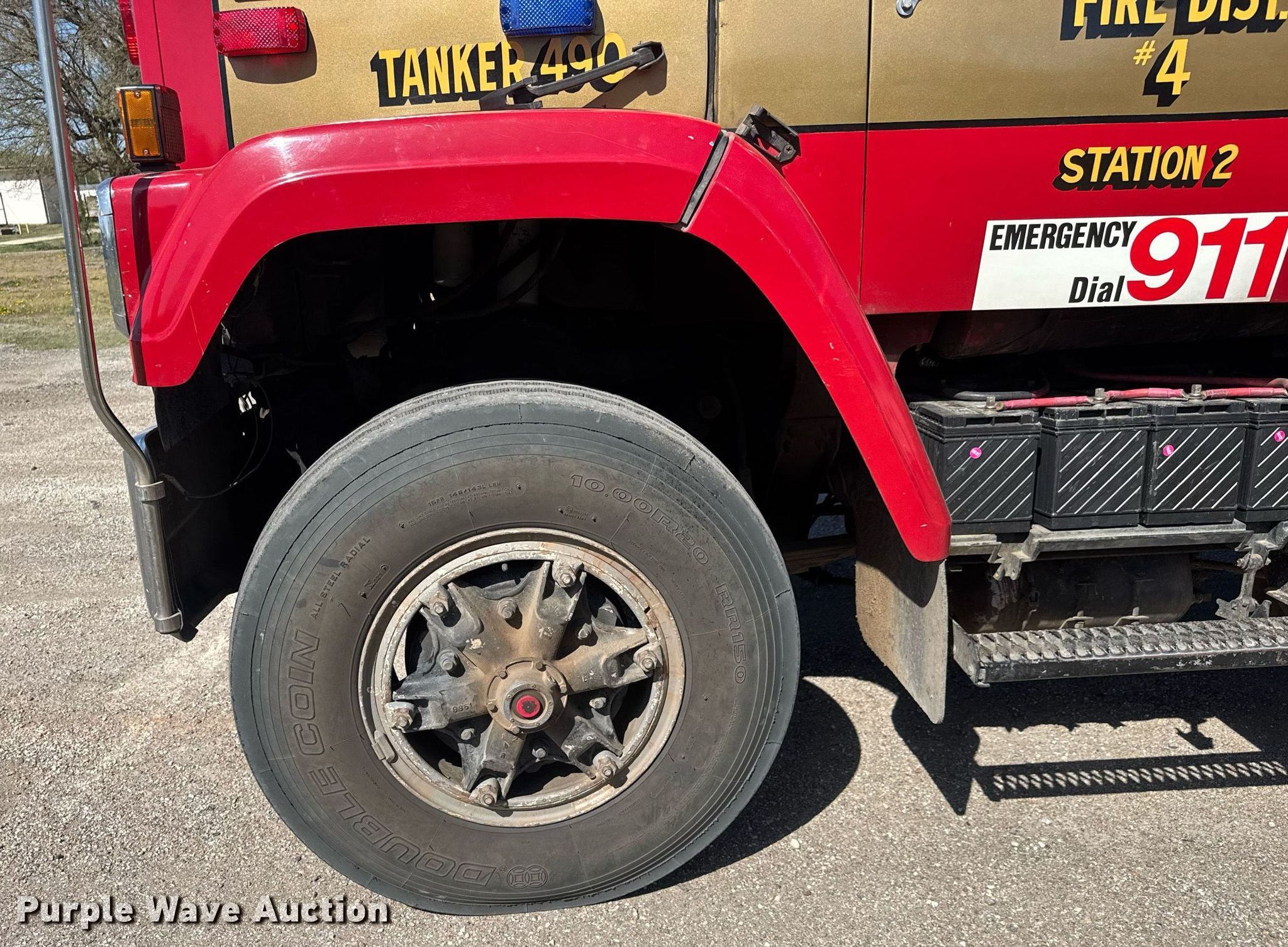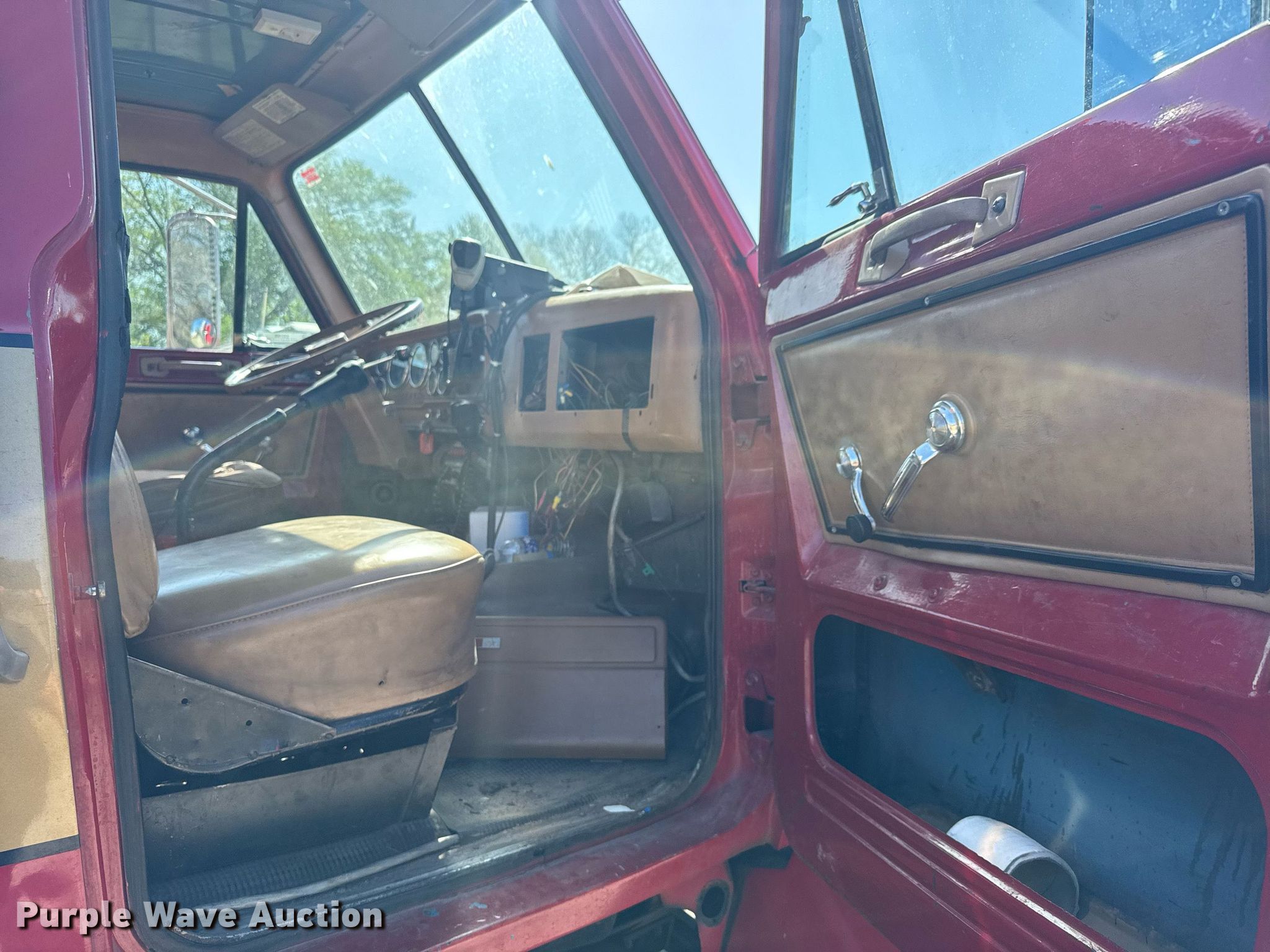1979 GMC Brigadier tank truck. Miles: 492,727 on odometer, Hours: 1,219 on meter, VIN: T49CH9V576273, Unit #: Tanker 490. Engine Detroit Diesel, Cylinders: 8, Fuel type: Diesel. Transmission Manual, Speed: 9. Chassis Axles: Tandem, Differential lock: Inter-axle, Suspension: Spring, Brakes: Air, PTO, GVWR: 44,860 lbs. Interior Heat. Features Bed / tank Glass King, Serial: 002164, Capacity: 3,500 gallons, 15' L x 94" W, Side discharge, Top fill, Rear drain: 8". Tires Size: 10.00R20. Kansas title. Title distribution may be delayed up to 14 days from verification of funds. Reno County Rural Fire Dept District 4. Arlington, KS 67514