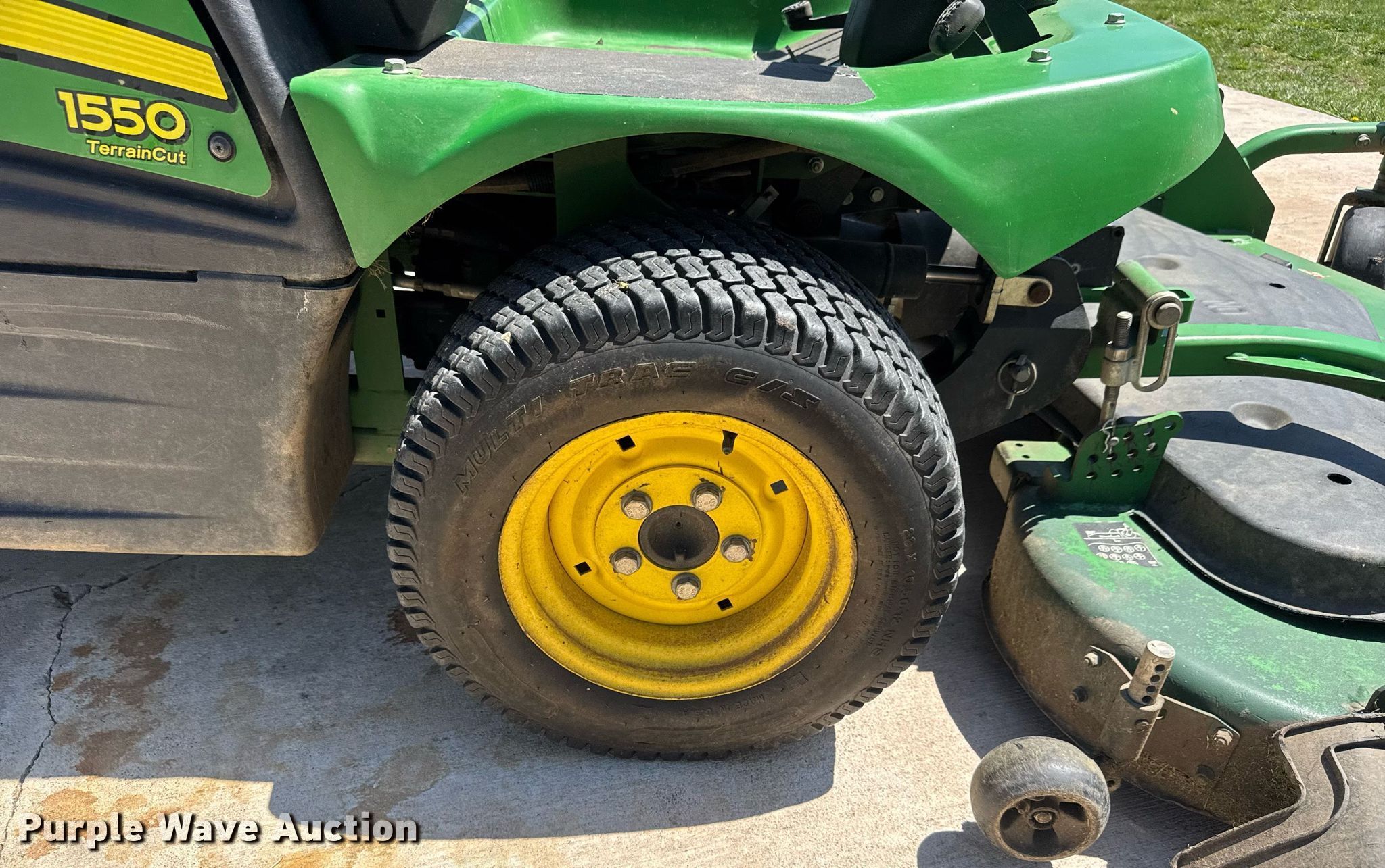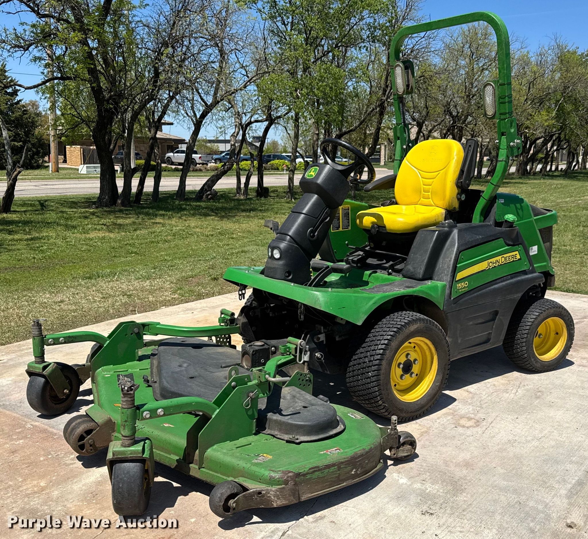 Purple Wave is selling a used Commercial Turf Mower in Kansas. This item is a John Deere 1550 Terrain Cut lawn mower with the following: Hours: 1,723 on meter, Cutting width: 75", Serial: 1TC1550DPFS020011