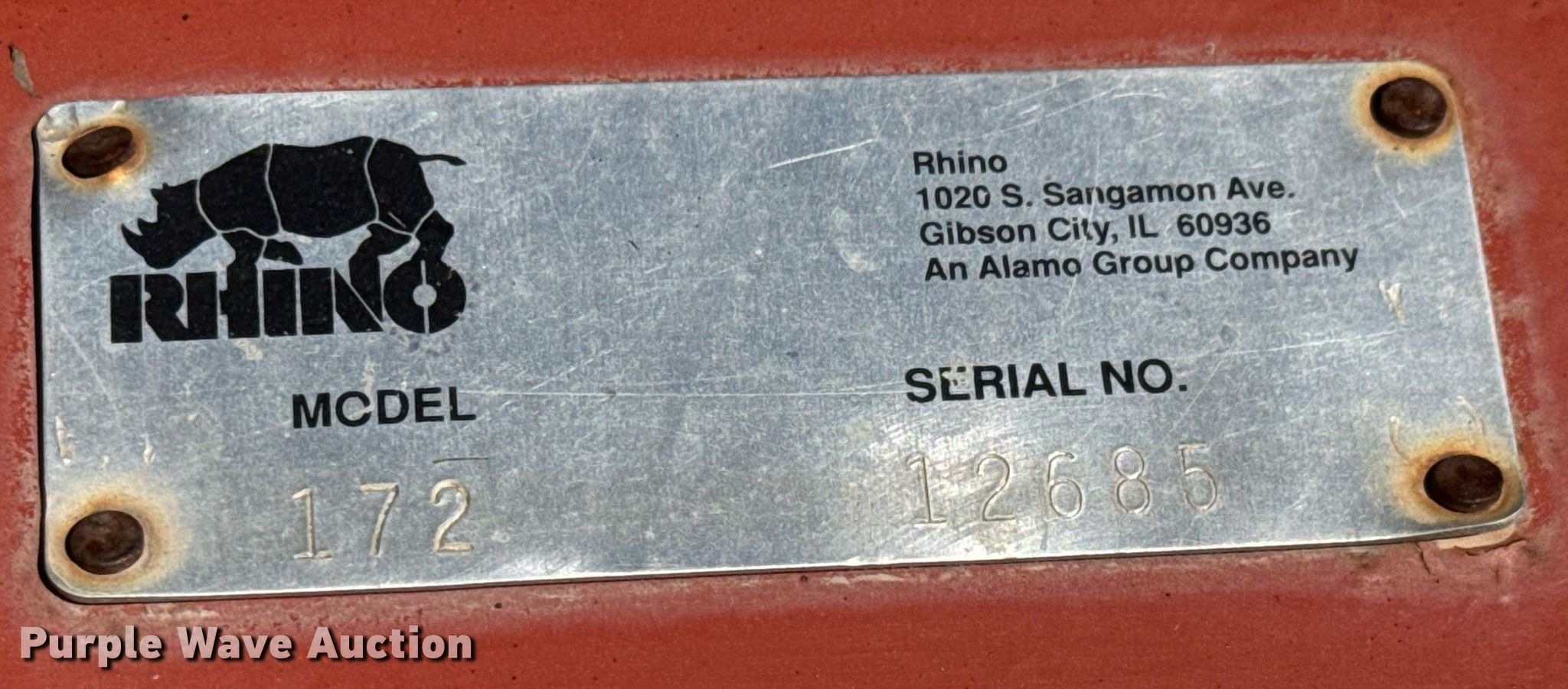 Purple Wave is selling a used Mower, Cutter, Shredder in Kansas. This item is a Rhino 172 rotary mower with the following: Serial: 12685