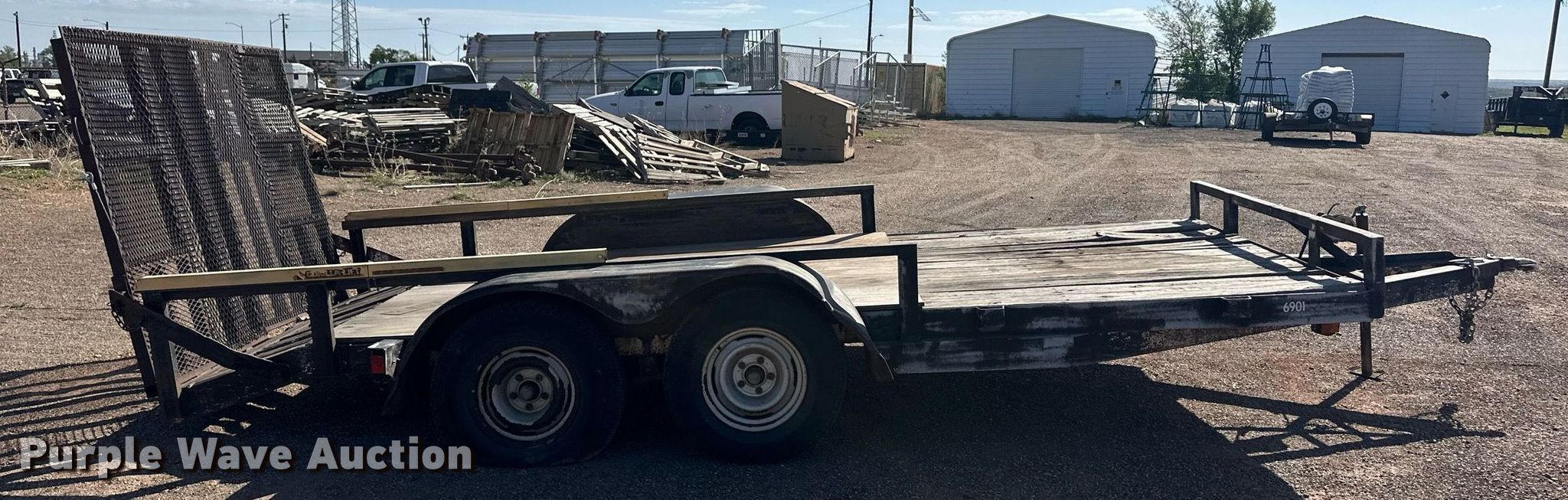 1993 PJ utility trailer. VIN: 4P5CF1628P1115090. Dimensions Overall: 23' L x 102" W, Deck: 14' L x 82" W, Ramps: Manual Length: 58". Features Deck type: Wood. Chassis Ball hitch: 2", Landing gear: Single, Suspension: Spring, Axles: Tandem. Tires Steel wheels, Size: 225/75R15. Texas title. Title distribution may be delayed up to 30 days from verification of funds. City of Borger, TX. Borger, TX 79007