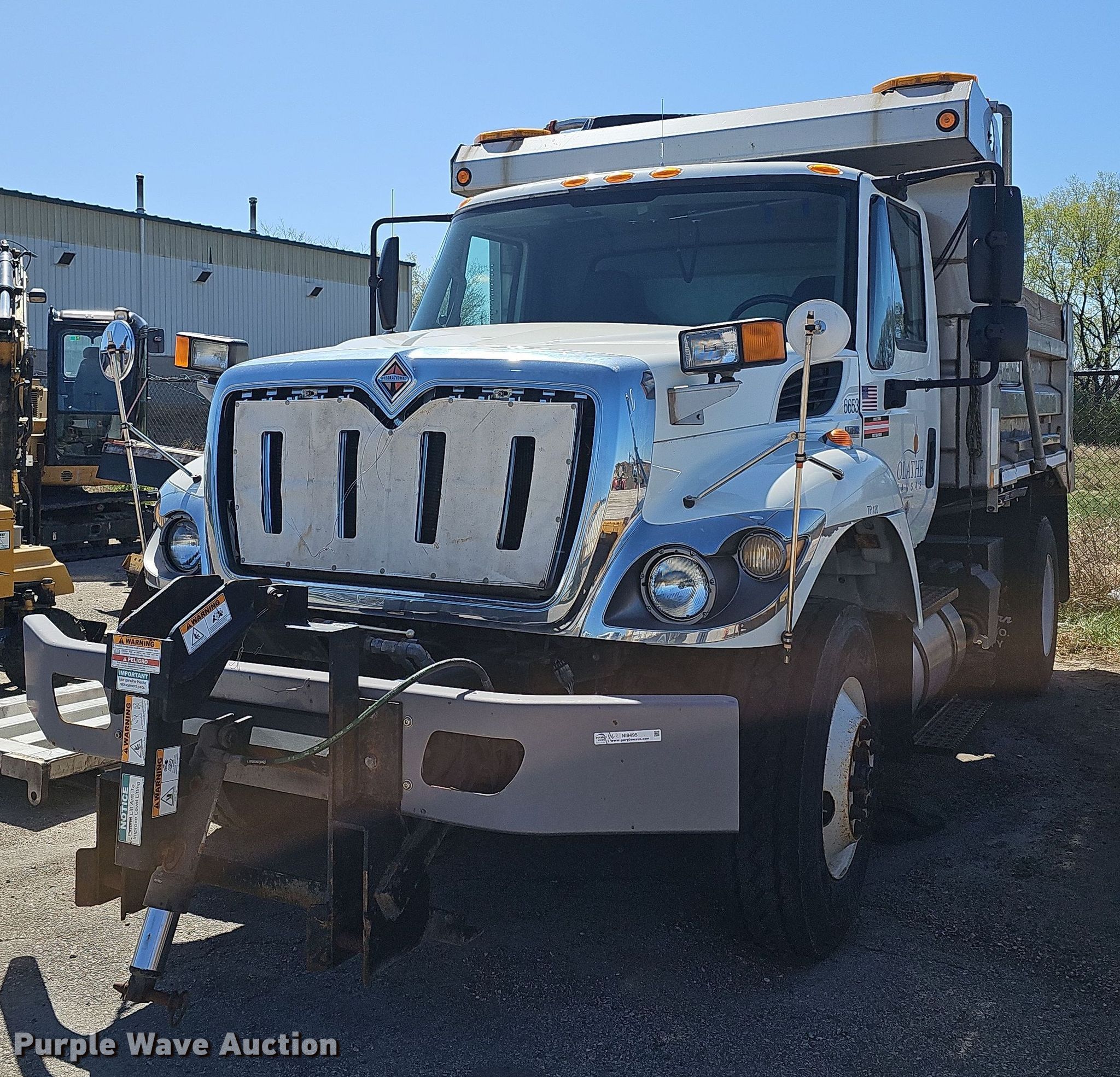 2012 International 7400 WorkStar dump truck. Miles: 59,629 on odometer, VIN: 1HTWDAAR9CJ054481, Unit #: 02060653. Engine International MaxxForce DT, Displacement: 7.6L, Cylinders: 6, Fuel type: Diesel. Transmission Allison, Automatic. Chassis Axles: Single, Suspension: Spring, Brakes: Air, Front mount PTO, GVWR: 36,220 lbs FAWR: 13,220 lbs, RAWR: 23,000 lbs, Wheelbase: 160". Interior AC, Heat, Heated mirrors, Cruise control. Features Dump bed Warren, 10' x 8' W, Side height: 24", Side board height: 9", Bed type: Aluminum, Roll tarp, Ram: Single, End gate: Manual, Plow Width: 120". Tires Size: 11R22.5. Notes Decals will be removed prior to auction, Engine turns over, but does not start , Possible starter issues, Turbo issues, oil return line needs repaired , Tailgate removed, but included, Snow plow removed, but included, Dead battery, Roll tarp arm damaged, Non-operational unit Unit must be towed or hauled. Kansas title. Title distribution may be delayed up to 14 days from verification of funds. City of Olathe. Olathe, KS 66061