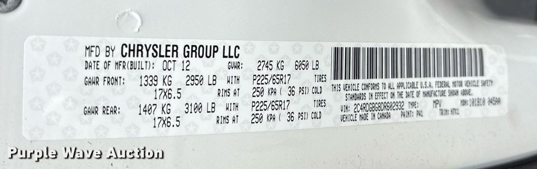Purple Wave is selling a used Passenger Vehicle in Arkansas. This item is a 2013 Dodge Grand Caravan van with the following: Miles: 254,586 on odometer, VIN: 2C4RDGBG8DR602932