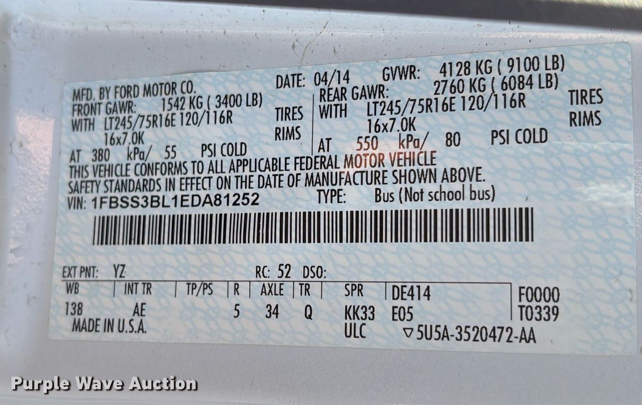 • VIN: 1FBSS3BL1EDA81252
