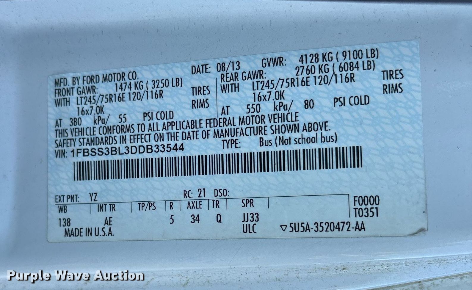 Purple Wave is selling a used Passenger Vehicle in Arkansas. This item is a 2013 Ford E350 Super Duty XL van with the following: Miles: 193,136 on odometer, VIN: 1FBSS3BL3DDB33544