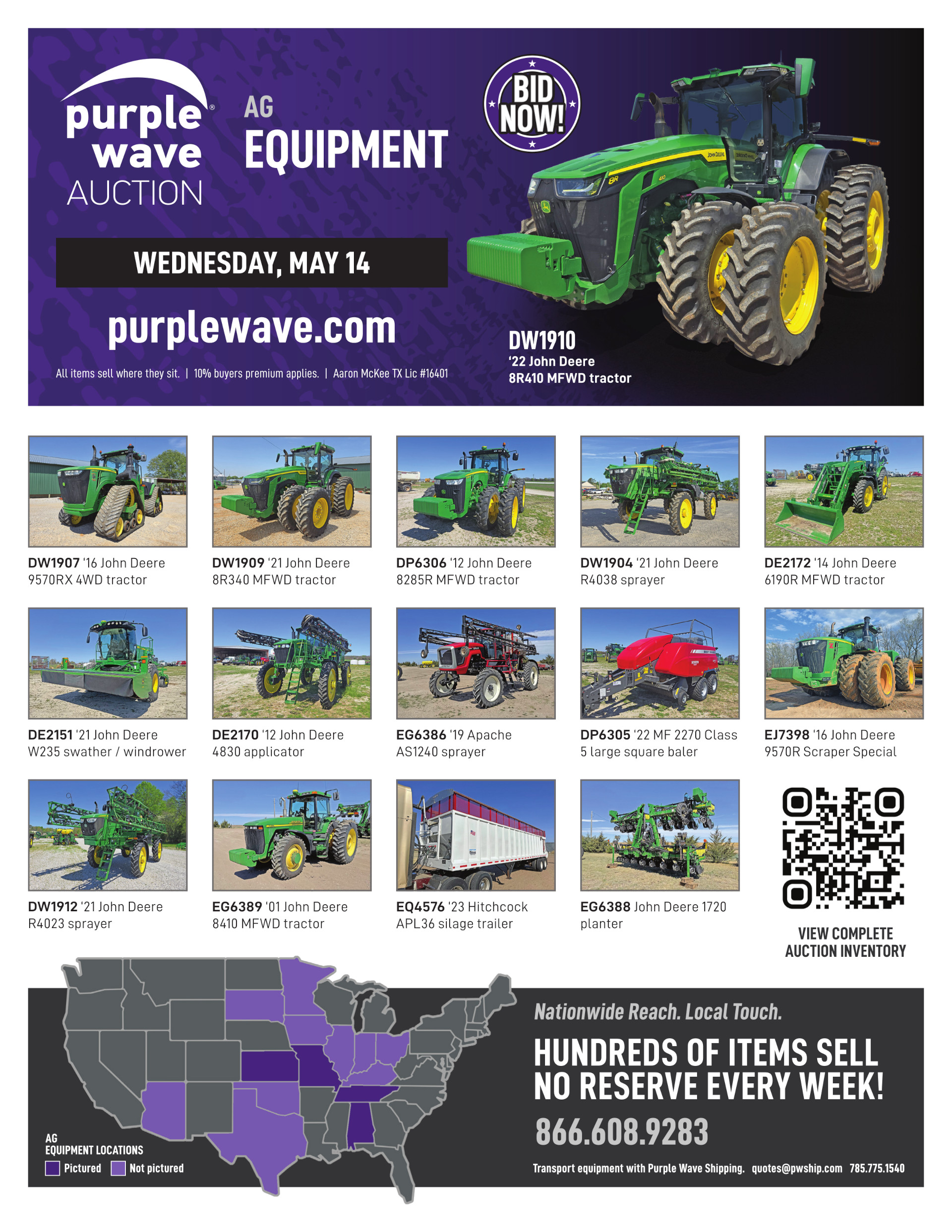 This auction is conducted by Purple Wave, Inc., whose home office is 825 Levee Drive, Manhattan, Kansas. Aaron McKee, Texas auctioneer license # 16401, operates Purple Wave, Inc. Complaints against us may be directed to the Texas Department of Licensing and Regulation, P.O. Box 12157, Austin, Texas 78711, (512) 463-6599. For additional required information, see the attached document.