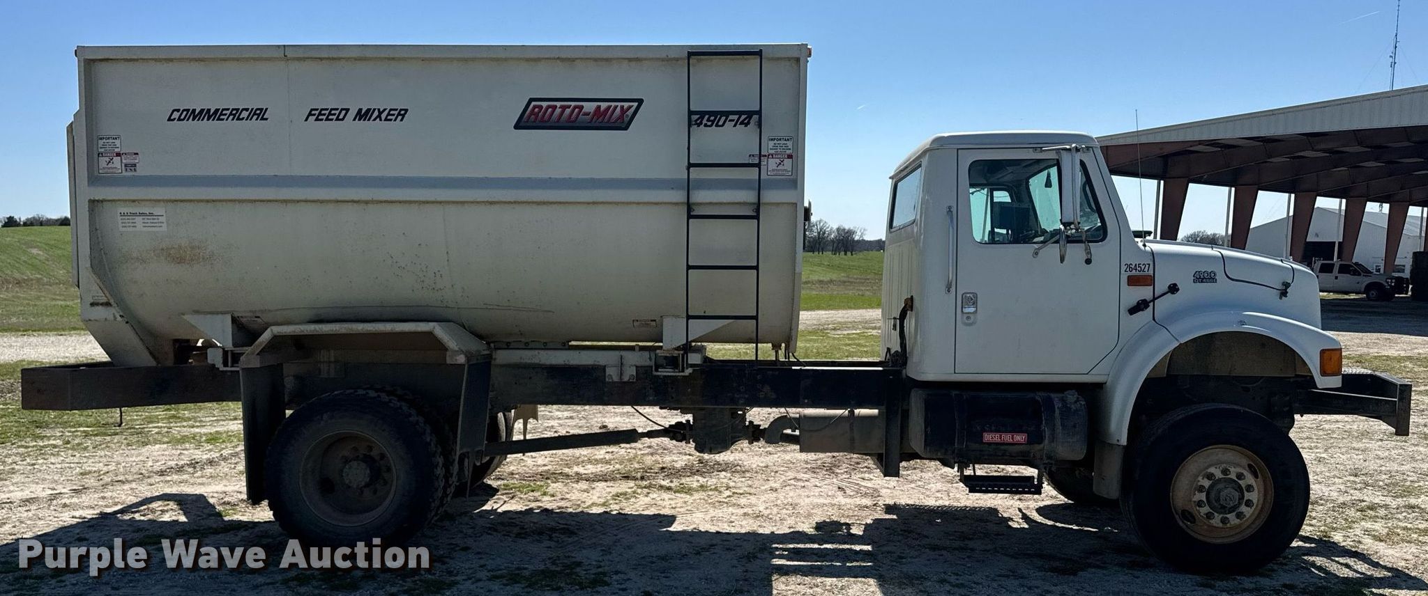 2001 International 4900 feed mixer truck. Miles: 40,818 on odometer, Hours: 5,296 on meter, VIN: 1HTSDAAN31H355960. Engine International DT466E, Displacement: 7.6L, Cylinders: 6, Fuel type: Diesel. Transmission Automatic. Chassis Double frame, Axles: Single, Suspension: Spring, Brakes: Air, PTO, Four wheel drive. Interior AC, Heat, Heated mirrors, Cruise control. Features Feed mixer bed Root-Mix 490-14, In-cab controls, Scales Digi-Star Ez 2500v, In-cab controls, Auger Quantity: 2, Diameter: 16", Discharge: Side Width: 48", Chute: Hydraulic, Door: Hydraulic. Tires Size: Same. Notes Possible power steering issues, Four wheel drive issues, stuck in four wheel drive , Unknown operating condition of hydraulic door, Unknown operating condition of hydraulic chute, Dash warning indicator: ABS. Pursuant to Missouri law, Purple Wave will not be collecting sales taxes on any of the purchases made in this business liquidation auction.. Missouri title. Title distribution may be delayed up to 14 days from verification of funds. M3 Hilltop Ranch Retirement - Open Inspection May 13th. 3939 Missouri 125. Rogersville, MO 65742