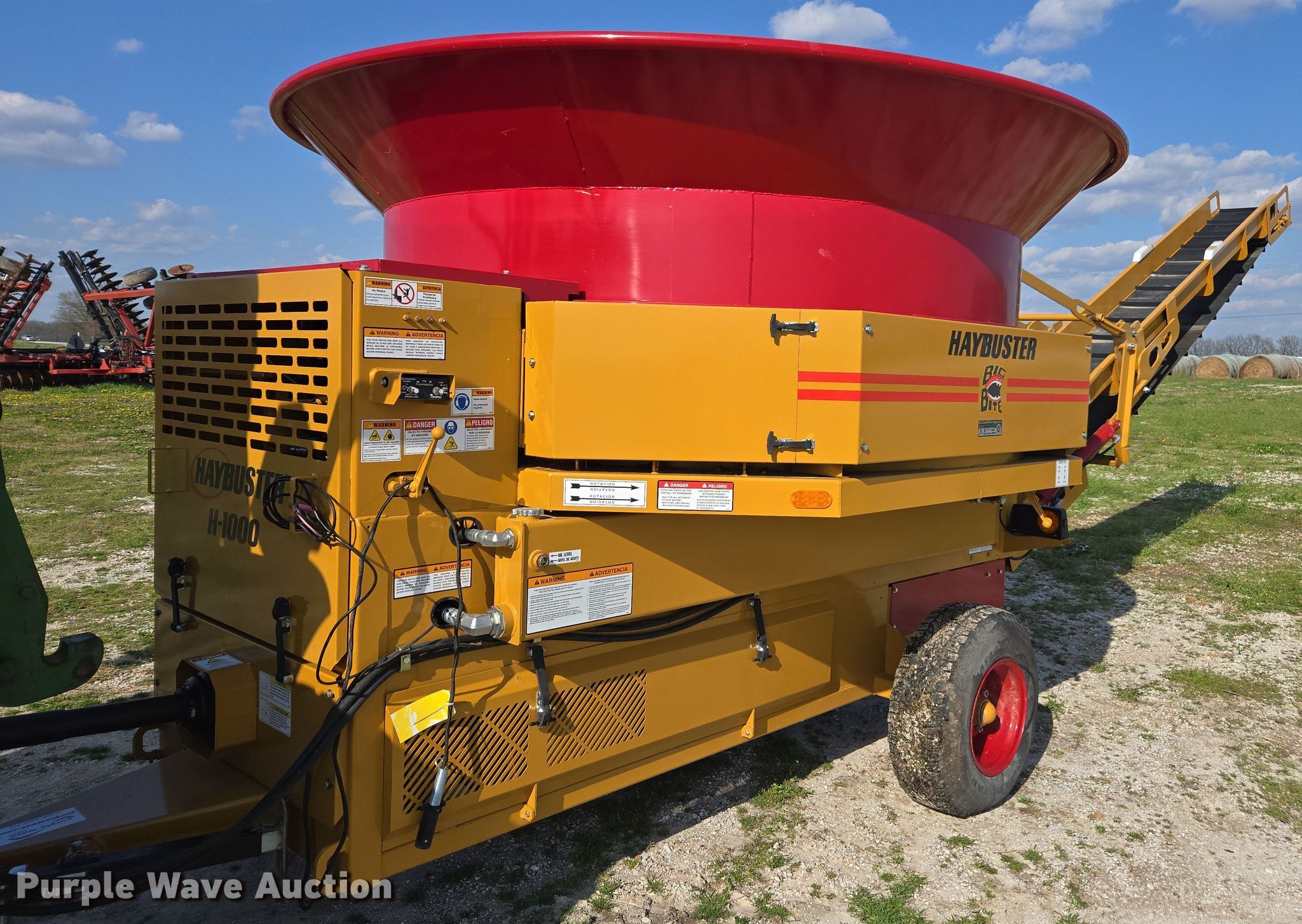2021 Haybuster 1000 tub grinder. Serial: 1021478200. Features PTO: 1 3/4" 1000, Discharge: Rear, Conveyor Width: 18", Hydraulic rear conveyor controls, Hammer Mill. Tires Size: 31x10.50R15. Notes Hitch pin not included. Pursuant to Missouri law, Purple Wave will not be collecting sales taxes on any of the purchases made in this business liquidation auction.. M3 Hilltop Ranch Retirement - Open Inspection May 13th. 3939 Missouri 125. Rogersville, MO 65742