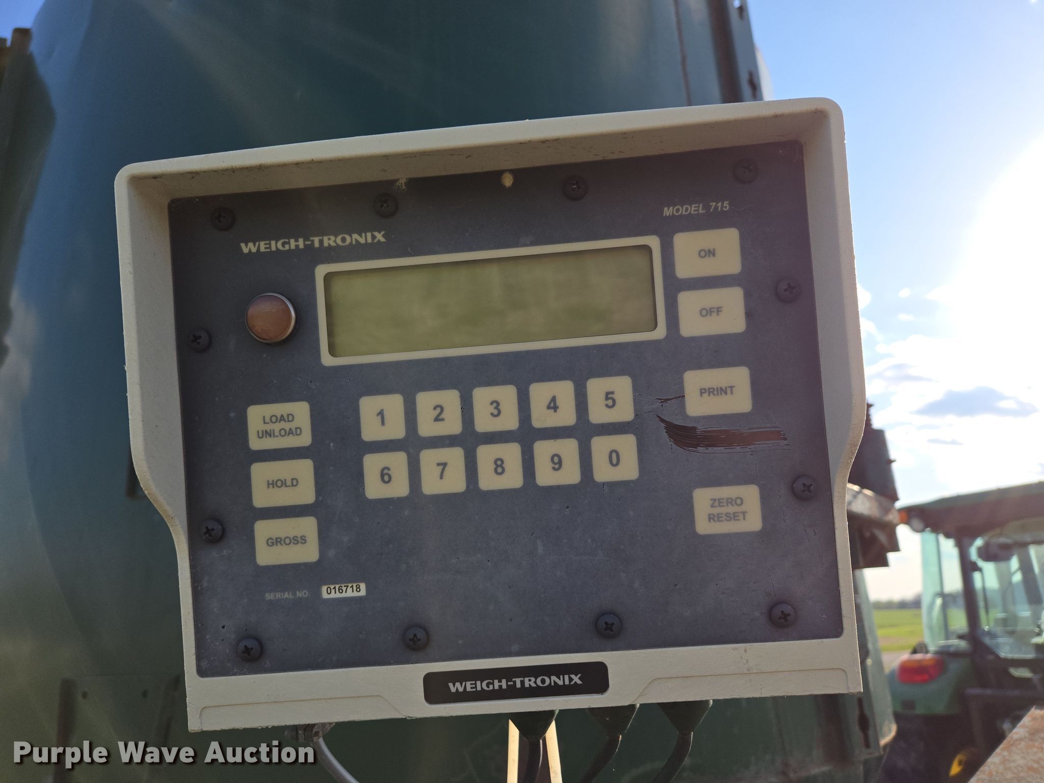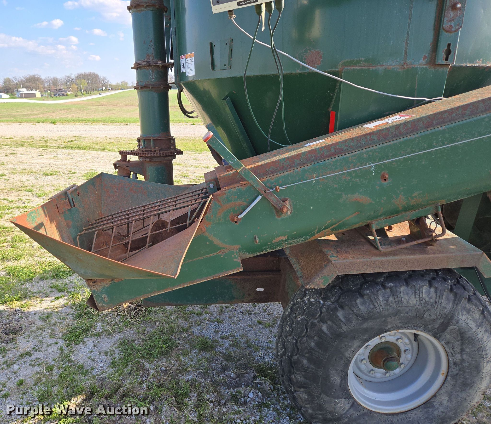 Art's-Way 528730 feed grinder/mixer. Serial: AW5165042075. Features PTO: 540, Scales Weigh-Tronix 715, Auger Diameter: 8", Door: Manual, Intermediate input chute width: 26", Initial input hopper width: 47". Tires Size: 13.5-16.1. Notes Tractor not included, Unknown operating condition of hydraulic system, Unknown operating condition of scales, Possible parts missing , Chains issues, possibly missing or loose , PTO shaft issues, rust, Unknown operating condition , Hitch pin not included. Pursuant to Missouri law, Purple Wave will not be collecting sales taxes on any of the purchases made in this business liquidation auction.. M3 Hilltop Ranch Retirement - Open Inspection May 13th. 3939 Missouri 125. Rogersville, MO 65742