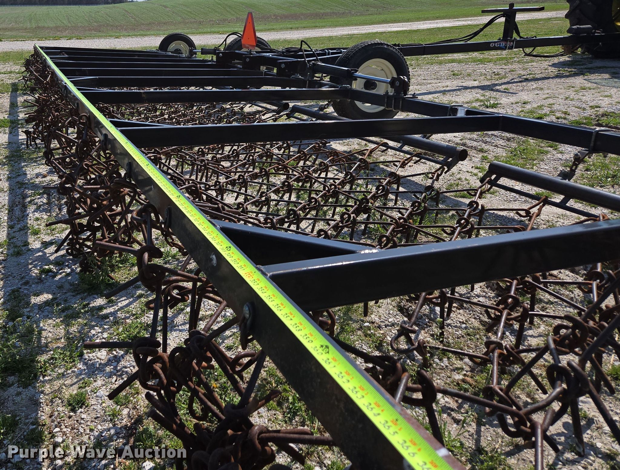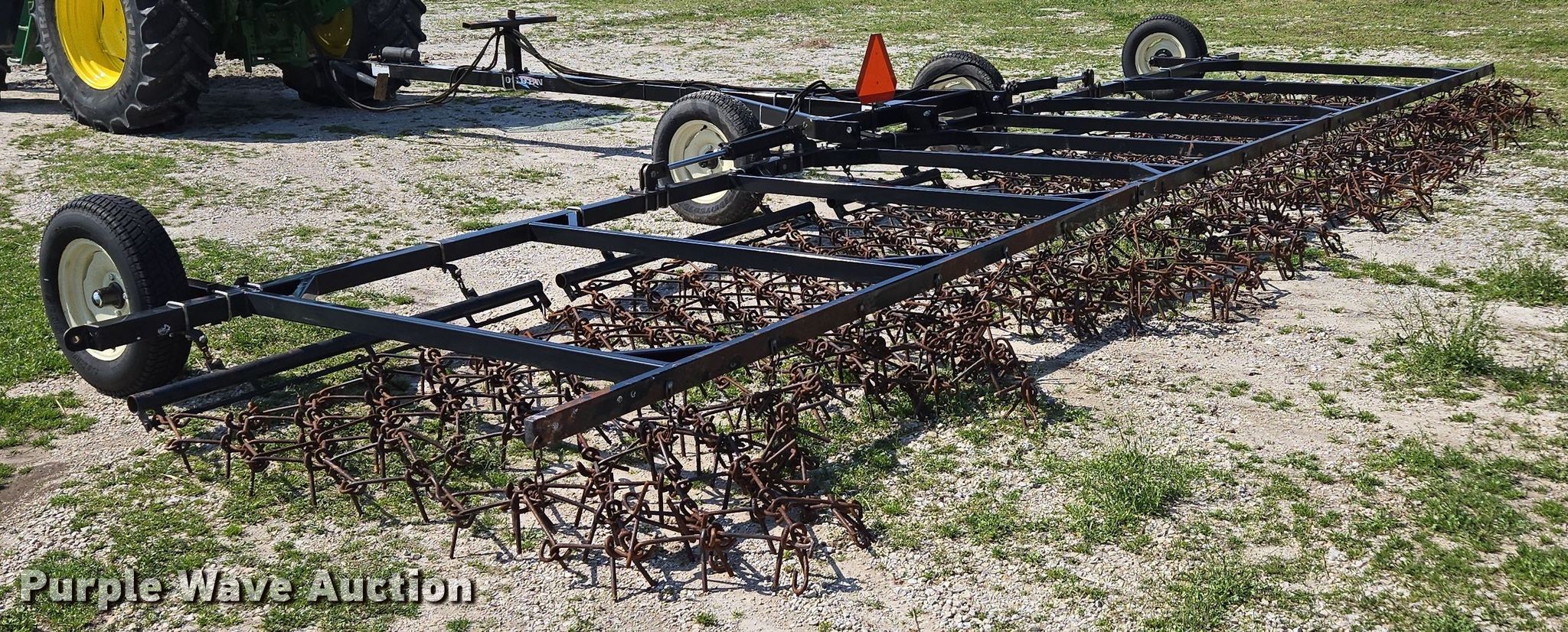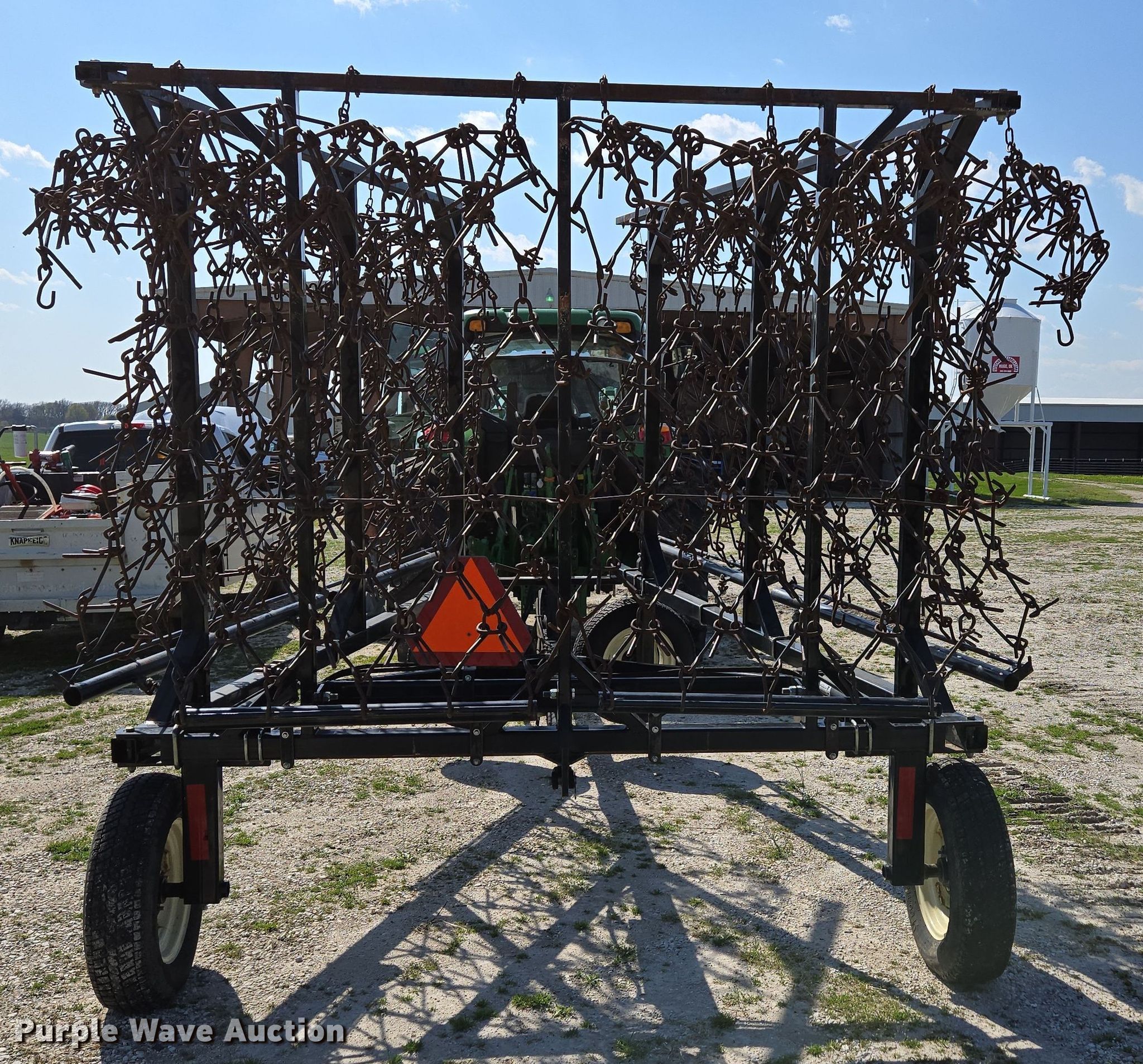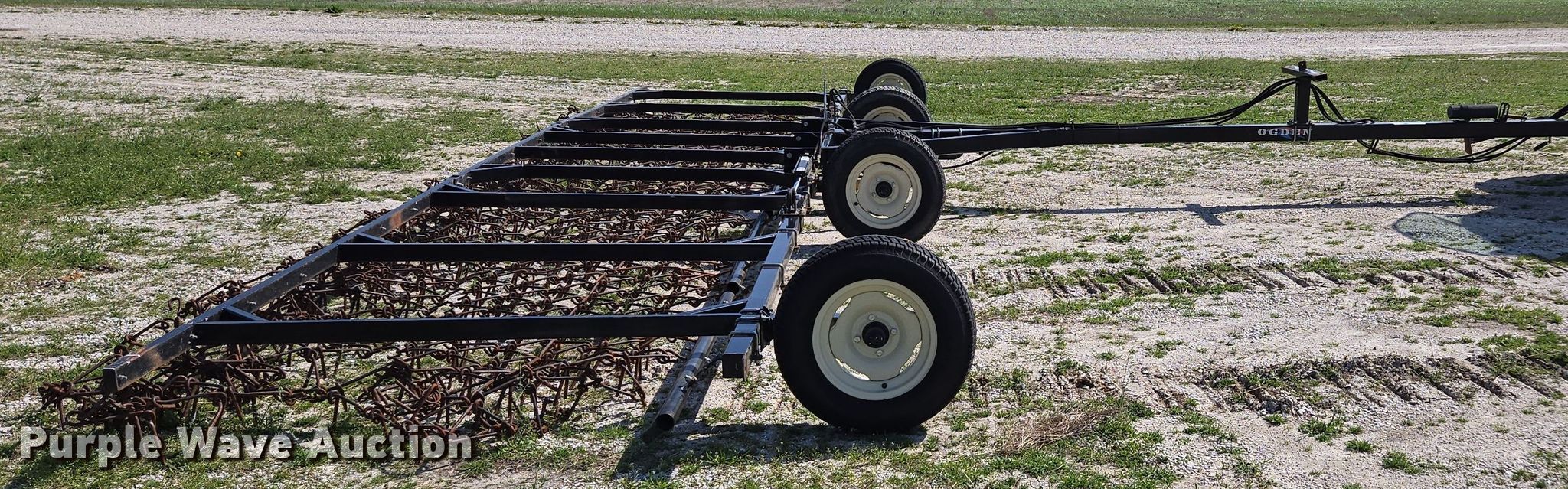 Ogden Metal Works INC drag harrow. Serial: 003851. Features Working width: 31', Hydraulic Fold. Tires Size: ST205/75D15. Notes Tractor not included, Some chain drag links missing or broken, Possible hydraulic fluid leak, Jack difficult to operate, Hitch pin not included. Pursuant to Missouri law, Purple Wave will not be collecting sales taxes on any of the purchases made in this business liquidation auction.. M3 Hilltop Ranch Retirement - Open Inspection May 13th. 3939 Missouri 125. Rogersville, MO 65742