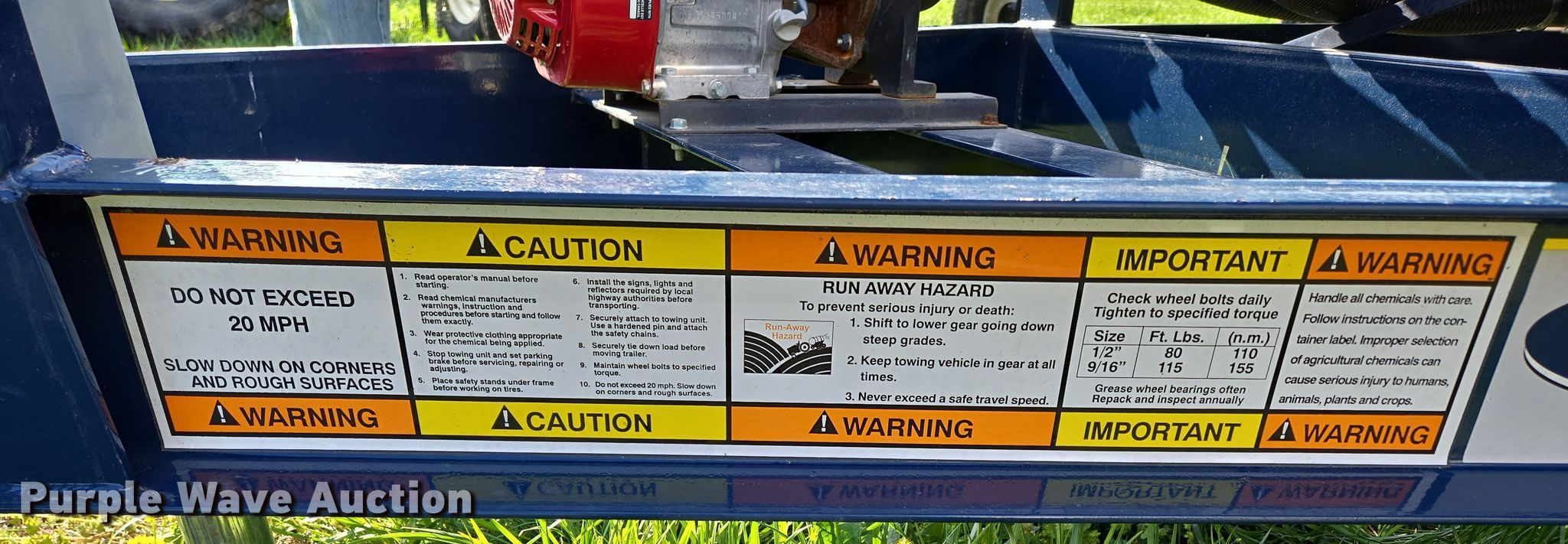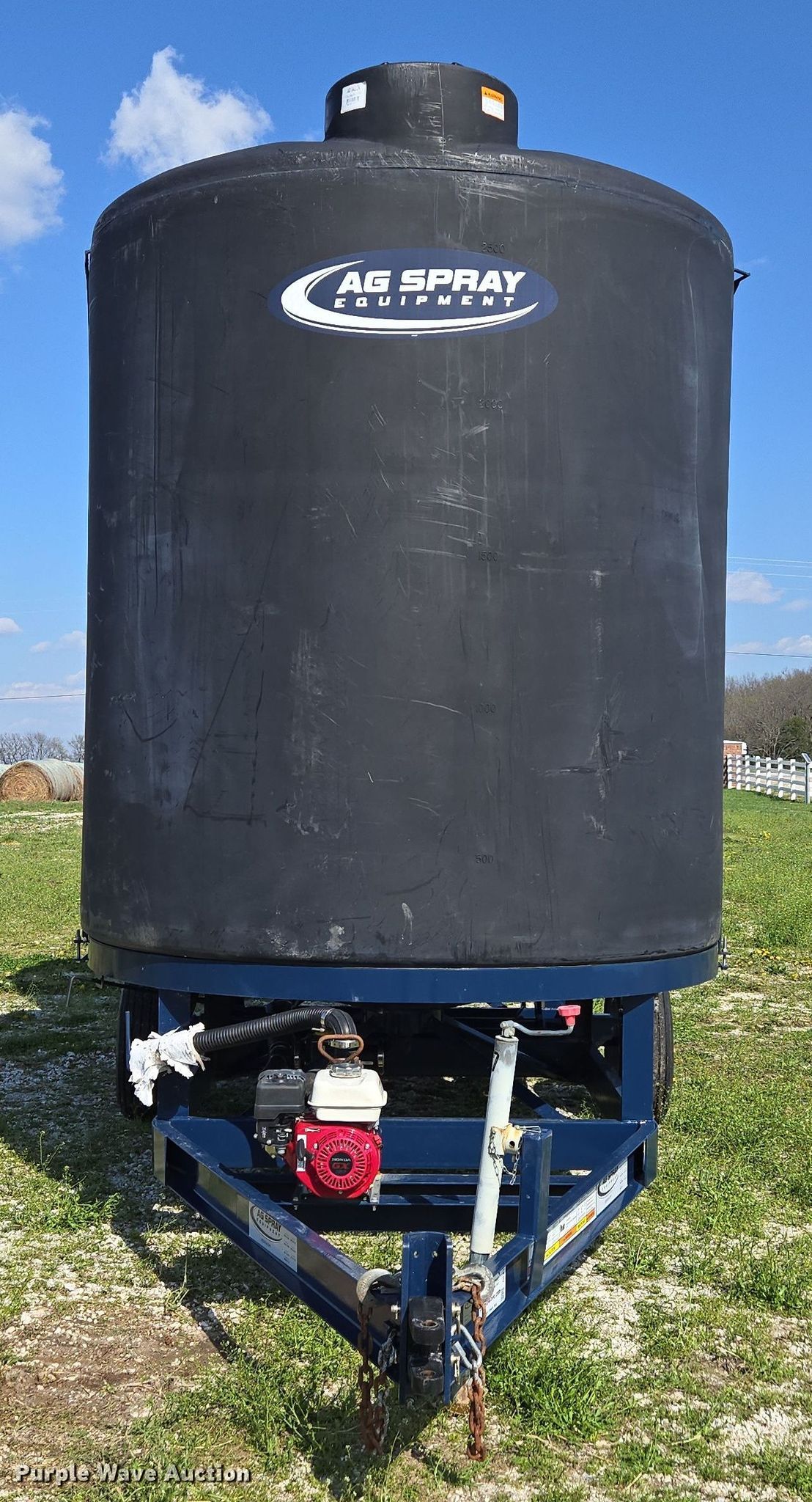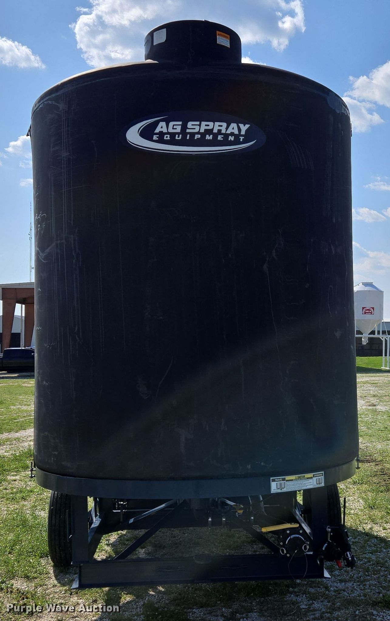 Ag Spray Equipment Double Cone nurse tank trailer. Item # 5301053, Serial # 1028650. Dimensions Overall: 20'L x 97" W. Engine Honda GX160, Displacement: 163 cc. Features (2) Poly tanks Capacity: 3,000 gallons, Sight glass, Outlet valves: 1 Size: 3.5", Fluid inlet valve size: 2.5" 2.5" to 3.5" adapter included, Pump Banjo Corporation Self-Priming Centrifugal Pump. Chassis Landing gear: Single. Tires Steel wheels, Size: 9.5L-15SL. Notes Engine issues, carburetor needs cleaned , Hitch pin not included. Pursuant to Missouri law, Purple Wave will not be collecting sales taxes on any of the purchases made in this business liquidation auction.. M3 Hilltop Ranch Retirement - Open Inspection May 13th. 3939 Missouri 125. Rogersville, MO 65742