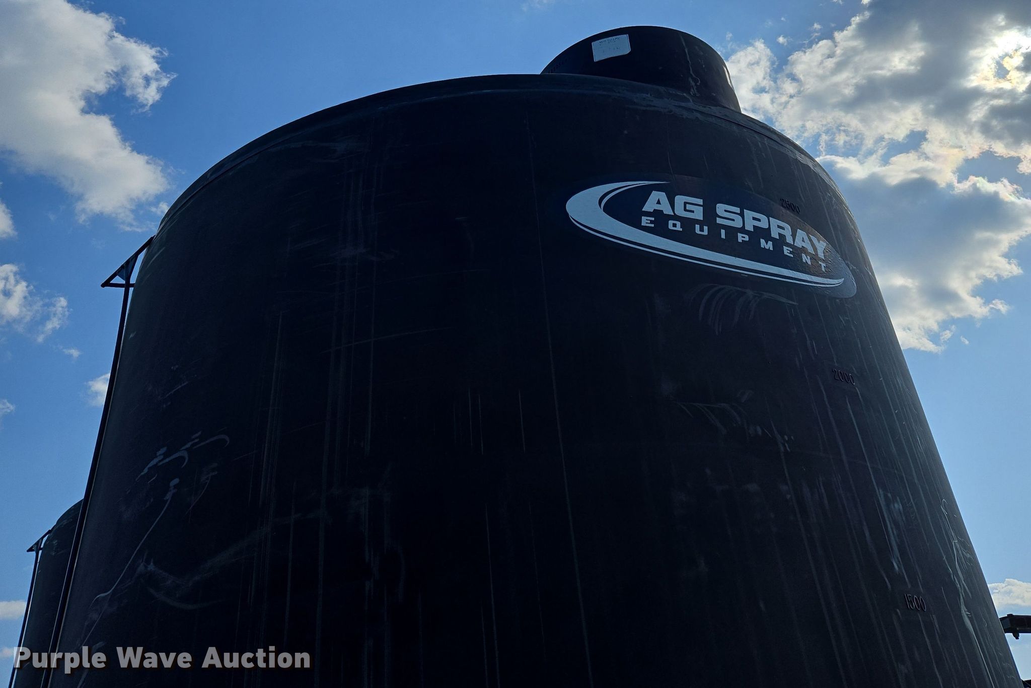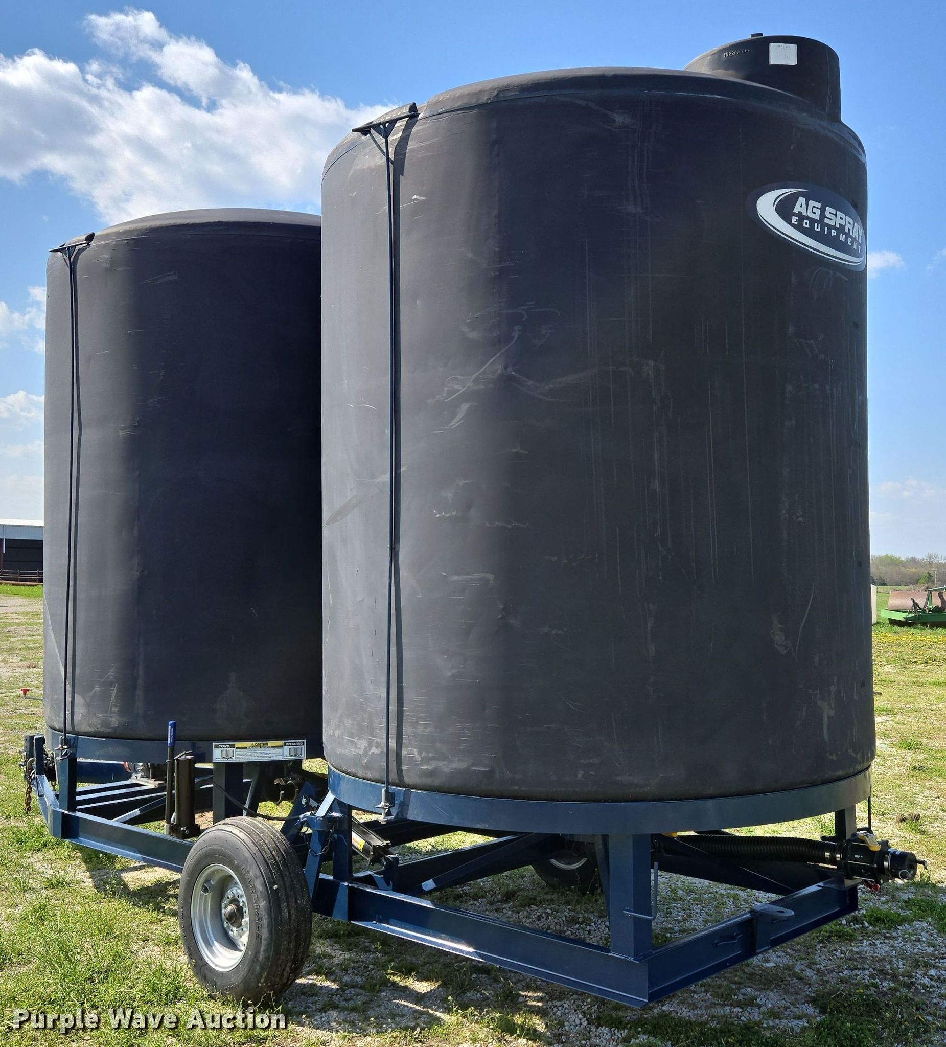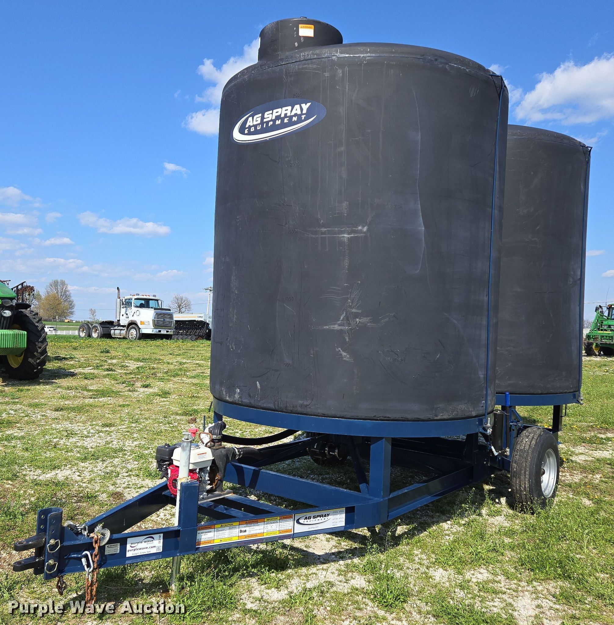 Ag Spray Equipment Double Cone nurse tank trailer. Item # 5301053, Serial # 1028650. Dimensions Overall: 20'L x 97" W. Engine Honda GX160, Displacement: 163 cc. Features (2) Poly tanks Capacity: 3,000 gallons, Sight glass, Outlet valves: 1 Size: 3.5", Fluid inlet valve size: 2.5" 2.5" to 3.5" adapter included, Pump Banjo Corporation Self-Priming Centrifugal Pump. Chassis Landing gear: Single. Tires Steel wheels, Size: 9.5L-15SL. Notes Engine issues, carburetor needs cleaned , Hitch pin not included. Pursuant to Missouri law, Purple Wave will not be collecting sales taxes on any of the purchases made in this business liquidation auction.. M3 Hilltop Ranch Retirement - Open Inspection May 13th. 3939 Missouri 125. Rogersville, MO 65742