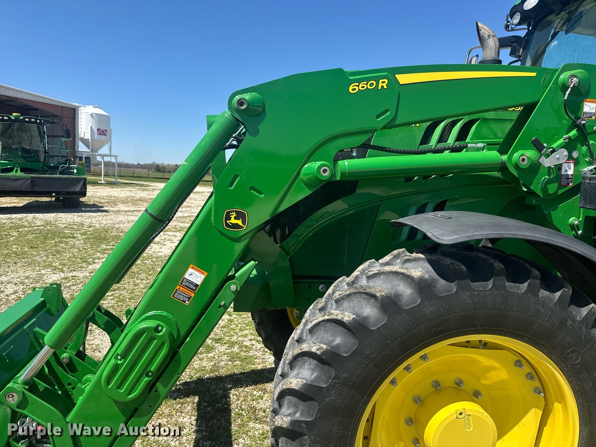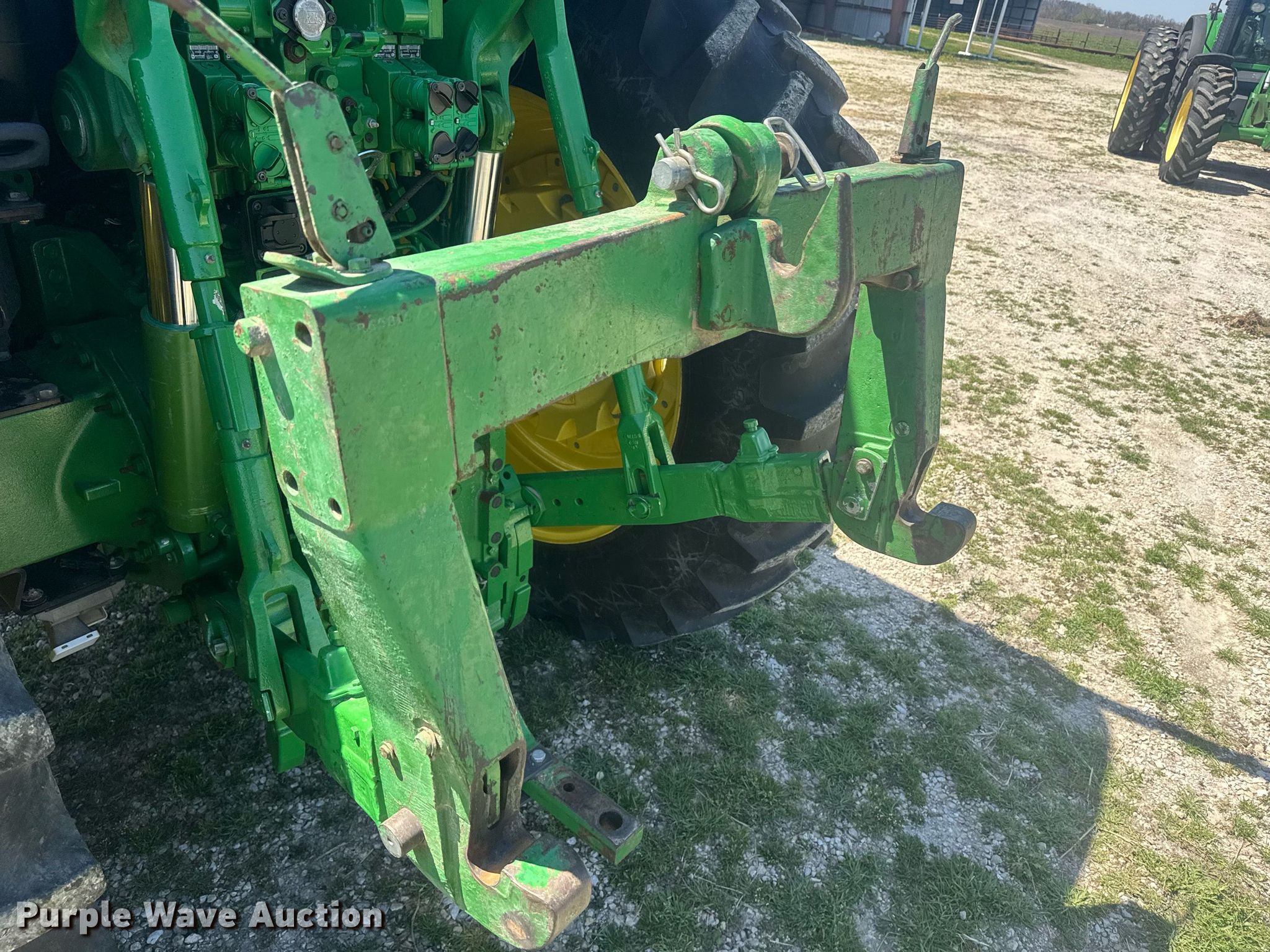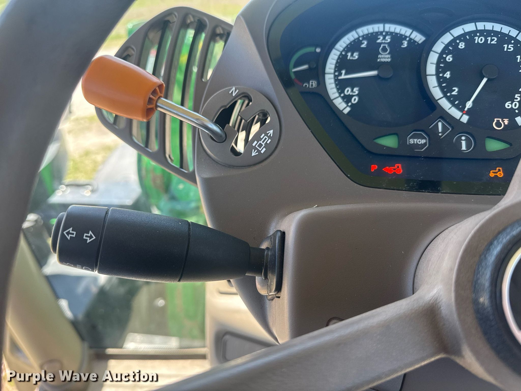 2014 John Deere 6190R MFWD tractor. Hours: 1,513 on meter, Serial: 1RW6190RTED012565. Engine John Deere, Cylinders: 6, Fuel type: Diesel. Transmission IVT, Left-hand reverser, Differential lock. Operators station AC, Heat. Features PTO: 1 3/4" 1000, Three point Top link, Quick attach, Seven pin outlet, ISOBUS outlet, Hydraulic remote sets Rear: 4, Power beyond (hydraulics), Loader ready, Loader John Deere 660R, Quick attach, Controls: Joystick, Bucket Width: 85".. Tires Front: 380/85R34, Rear: 480/80R46, Wheel weights: 2, Duals. Notes Duals removed, but included. Pursuant to Missouri law, Purple Wave will not be collecting sales taxes on any of the purchases made in this business liquidation auction.. M3 Hilltop Ranch Retirement - Open Inspection May 13th. 3939 Missouri 125. Rogersville, MO 65742