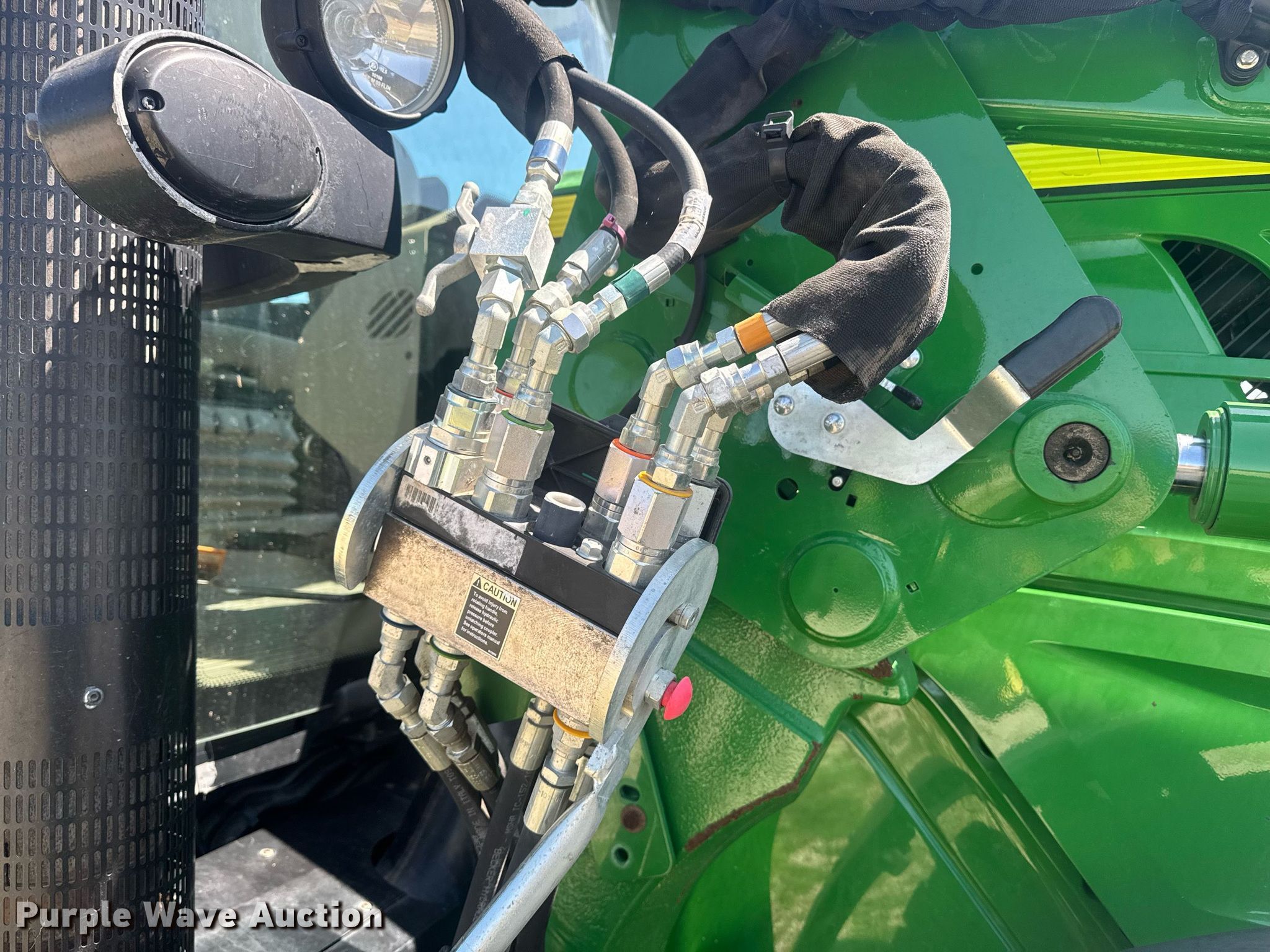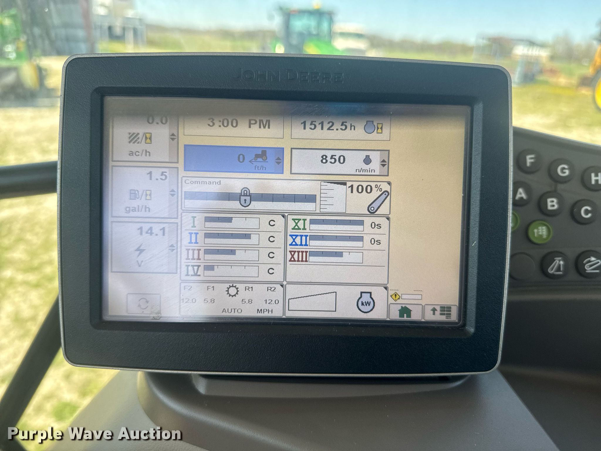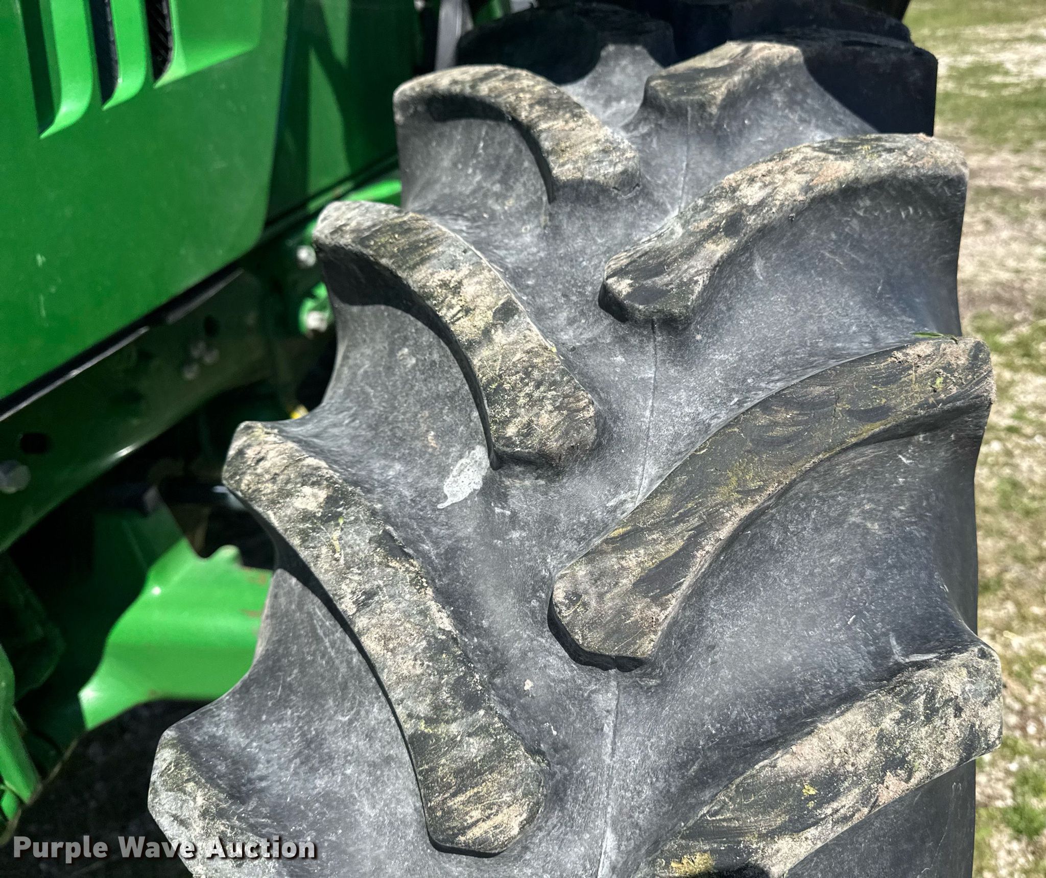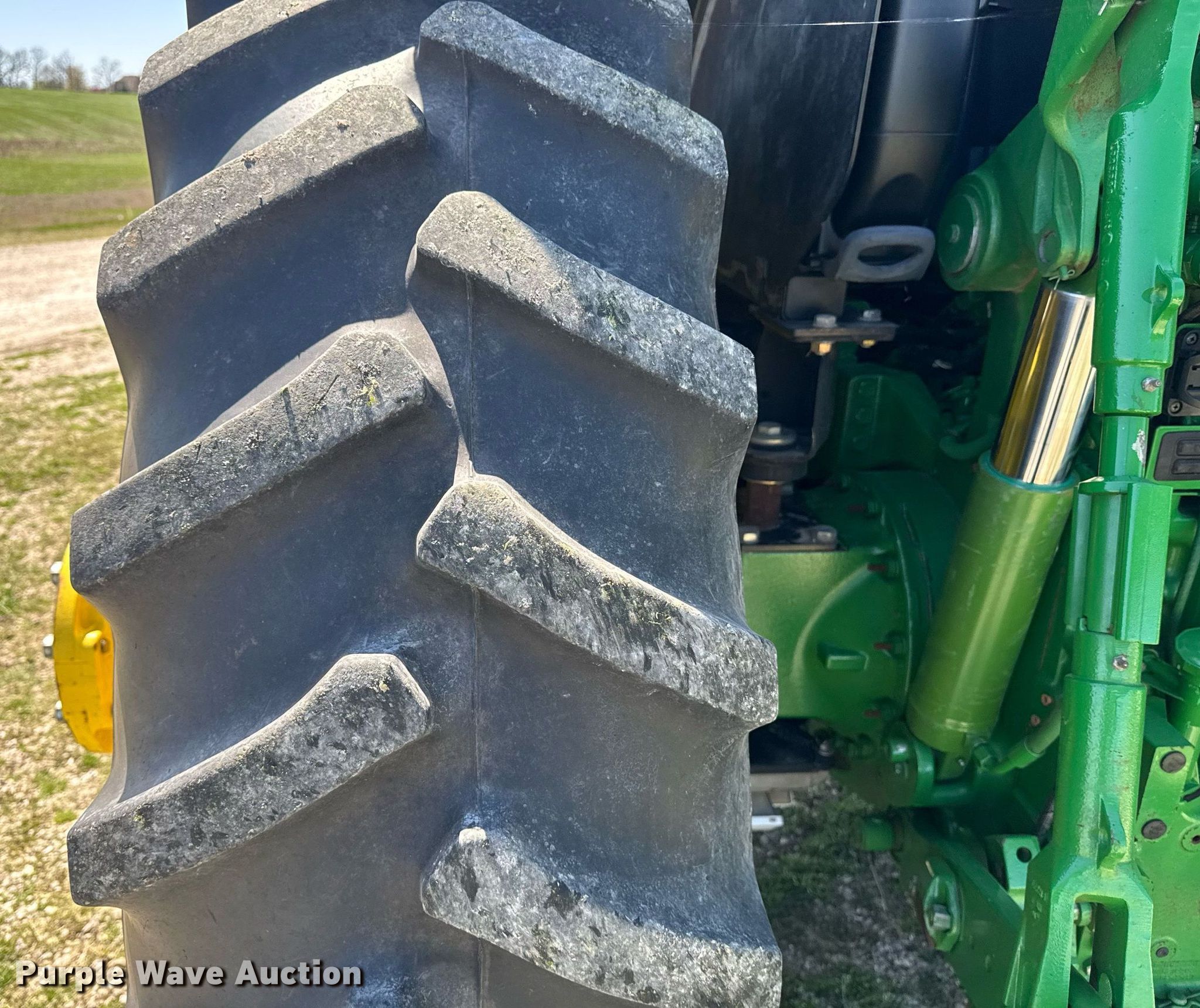 2014 John Deere 6190R MFWD tractor. Hours: 1,513 on meter, Serial: 1RW6190RTED012565. Engine John Deere, Cylinders: 6, Fuel type: Diesel. Transmission IVT, Left-hand reverser, Differential lock. Operators station AC, Heat. Features PTO: 1 3/4" 1000, Three point Top link, Quick attach, Seven pin outlet, ISOBUS outlet, Hydraulic remote sets Rear: 4, Power beyond (hydraulics), Loader ready, Loader John Deere 660R, Quick attach, Controls: Joystick, Bucket Width: 85".. Tires Front: 380/85R34, Rear: 480/80R46, Wheel weights: 2, Duals. Notes Duals removed, but included. Pursuant to Missouri law, Purple Wave will not be collecting sales taxes on any of the purchases made in this business liquidation auction.. M3 Hilltop Ranch Retirement - Open Inspection May 13th. 3939 Missouri 125. Rogersville, MO 65742