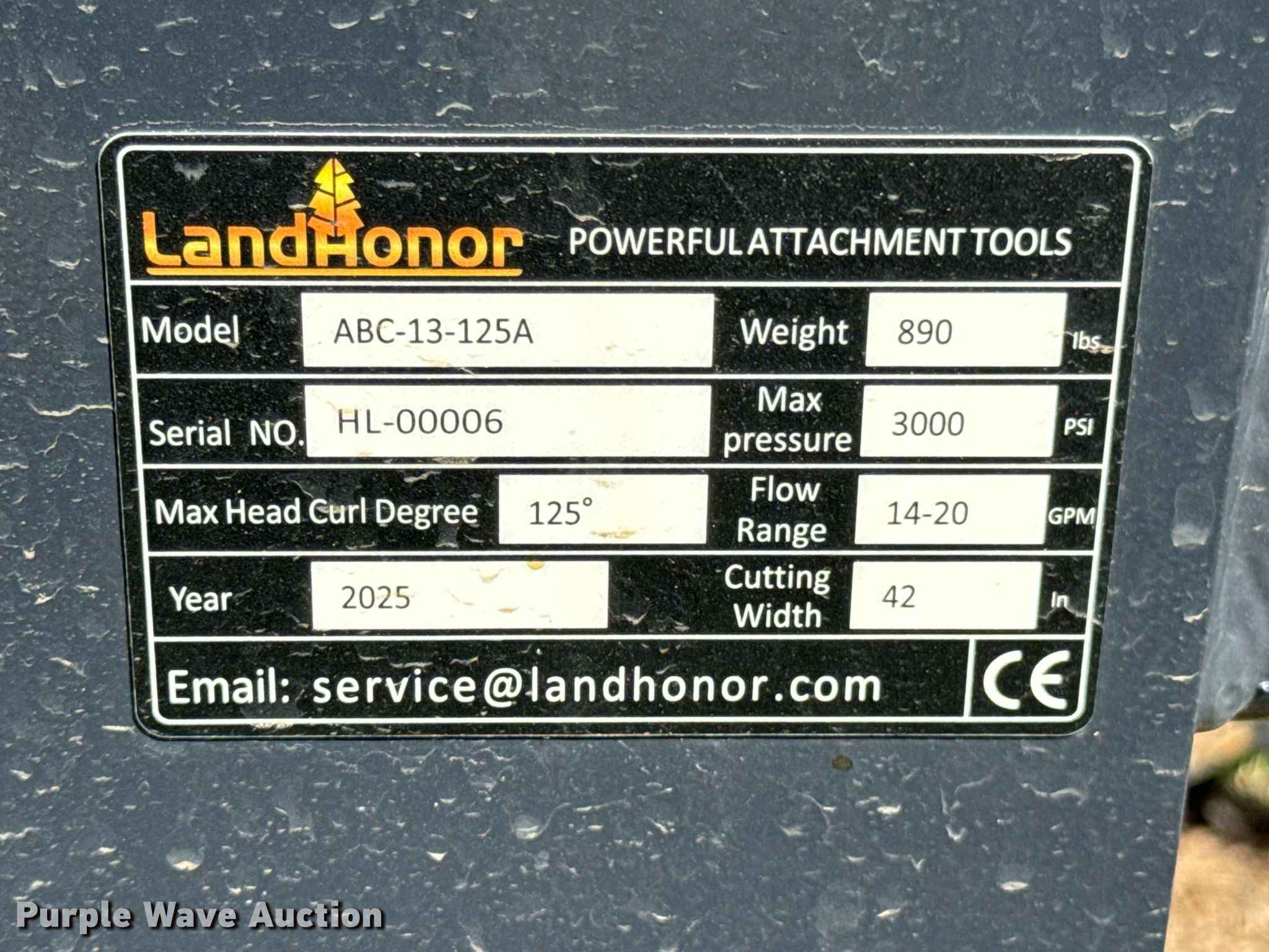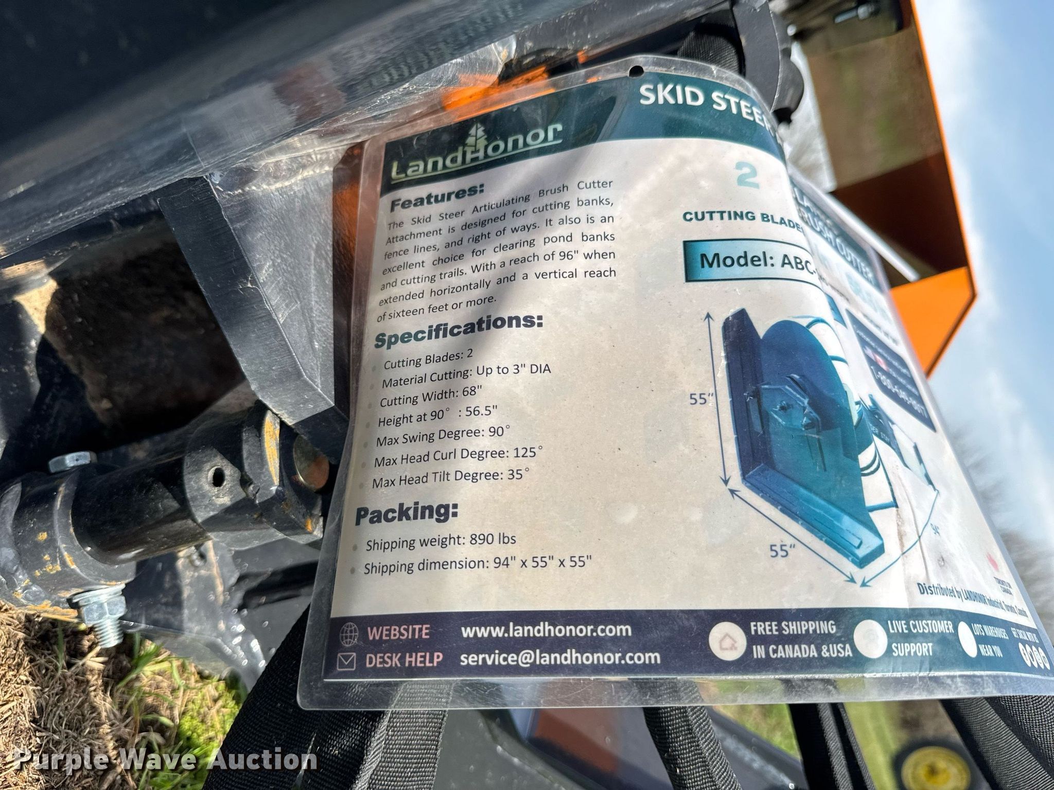 Purple Wave is selling a used Skid Steer Attach. in Kansas. This item is a 2025 LandHonor ABC-13-125A skid steer articulating brush mower with the following: Serial: HL-00006, Width: 40"