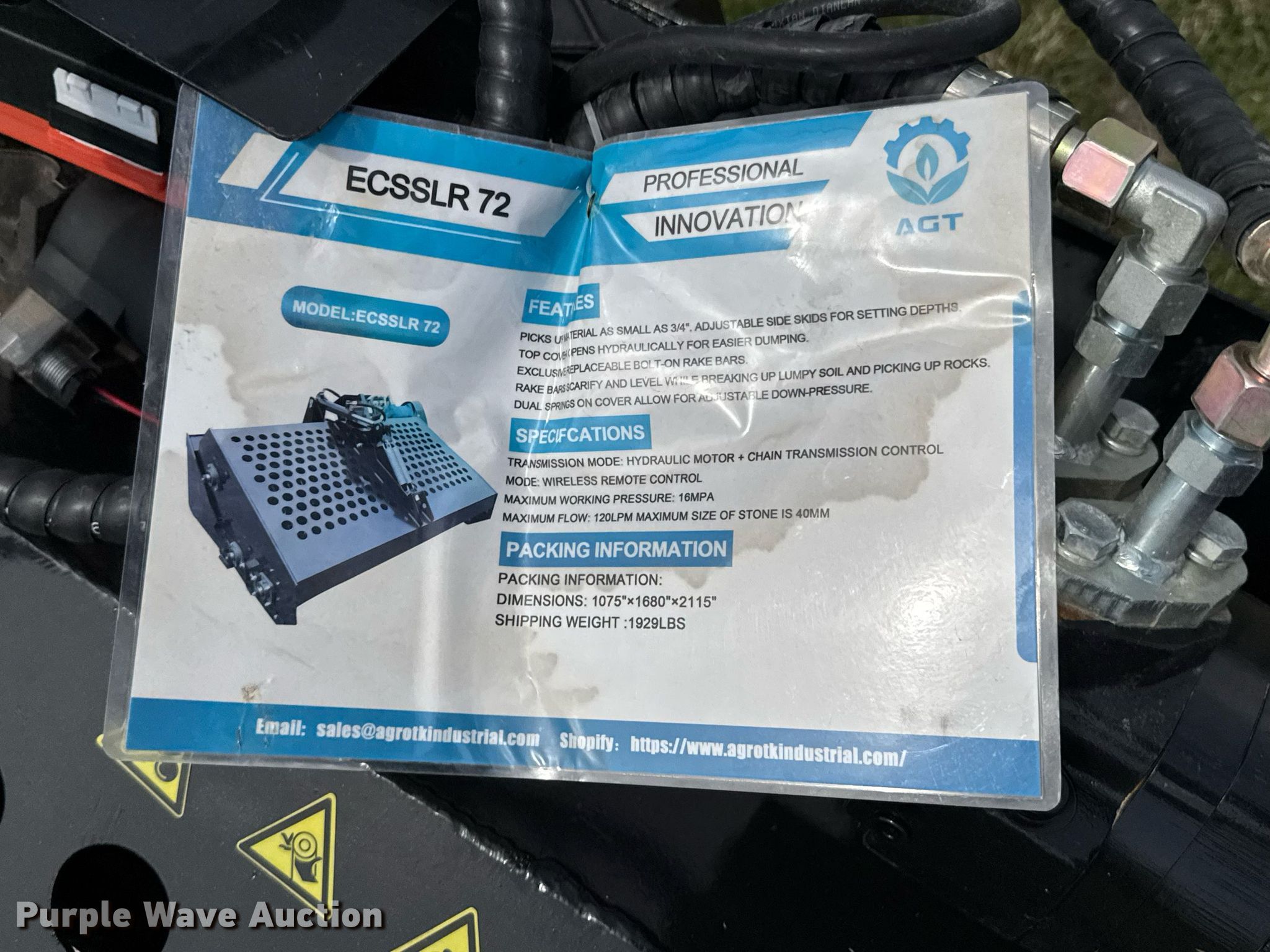 Purple Wave is selling a used Skid Steer Attach. in Kansas. This item is a AGT ECSSLR 72 skid steer landscape rake with the following: Width: 72"