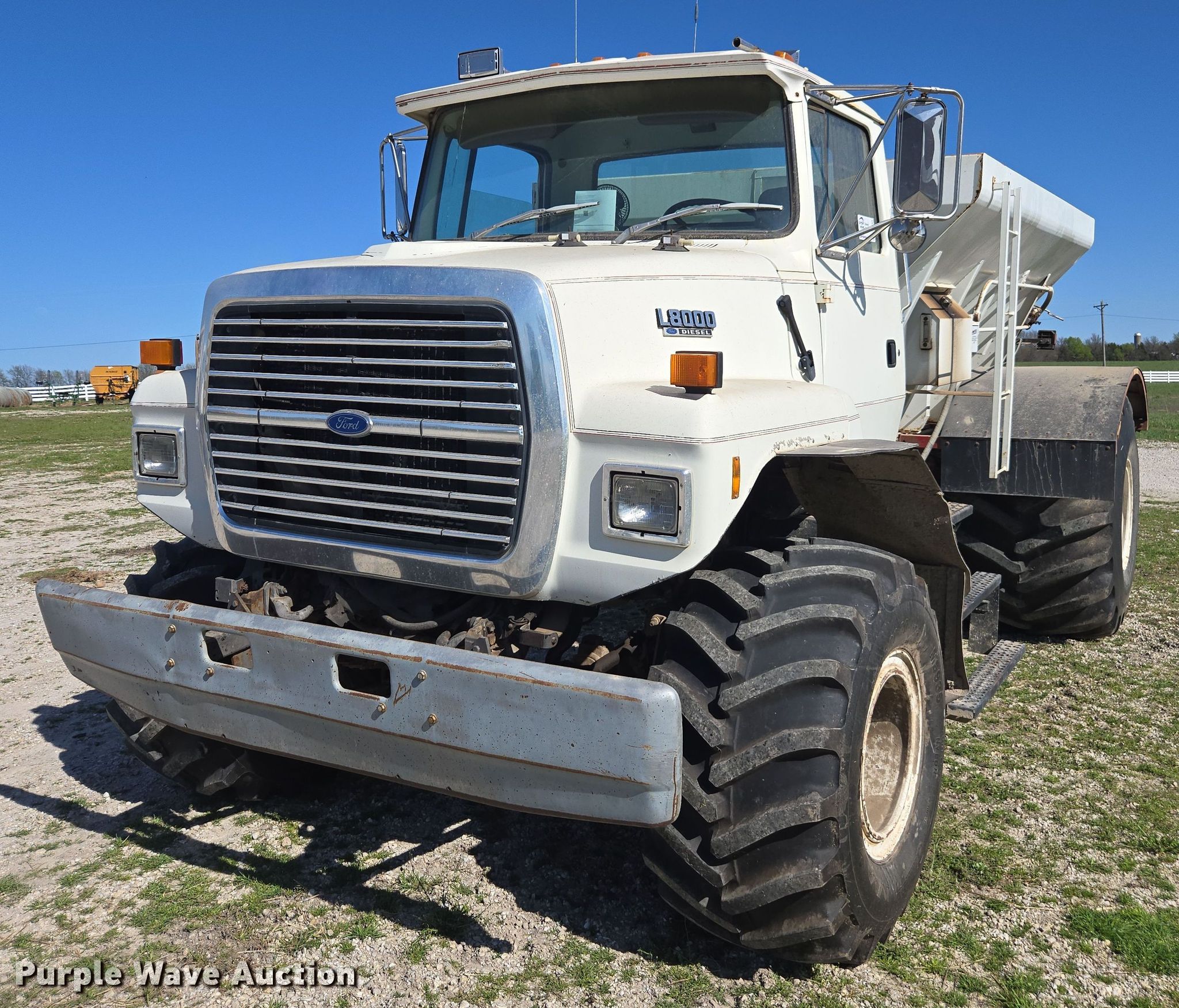 Purple Wave is selling a used Applicator Truck in Missouri. This item is a 1994 Ford L8000 spreader with the following: Miles: 53,795 on odometer, Engine hours: 4,988 on meter, VIN: 1FDYR82E4RVA17511