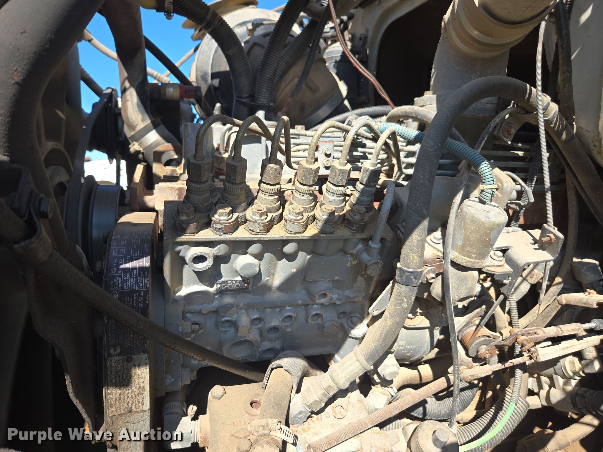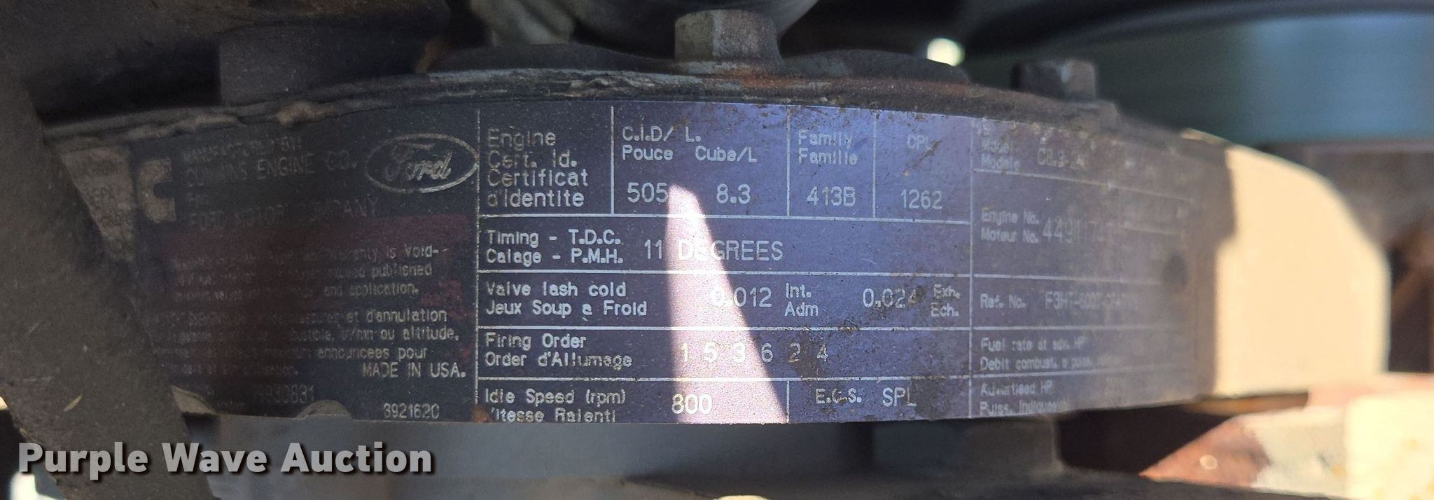 1994 Ford L8000 spreader. Miles: 53,795 on odometer, Engine hours: 4,988 on meter, VIN: 1FDYR82E4RVA17511. Engine Cummins, Displacement: 8.3L, Cylinders: 6, Fuel type: Diesel. Transmission Automatic. Operators station AC, Heat. Features Dry fertilizer spreader bed Highway Equipment, Length: 12', Dual spinners, Conveyor belt Width: 24".. Tires Front: 48x25.00-20, Rear: 66x43.00-25, Flotation tires. Notes Unknown operating condition of dash cluster. Pursuant to Missouri law, Purple Wave will not be collecting sales taxes on any of the purchases made in this business liquidation auction.. M3 Hilltop Ranch Retirement - Open Inspection May 13th. 3939 Missouri 125. Rogersville, MO 65742