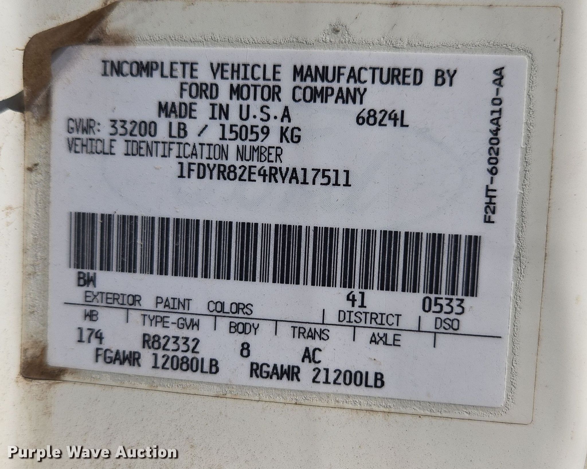 - VIN: 1FDYR82E4RVA17511