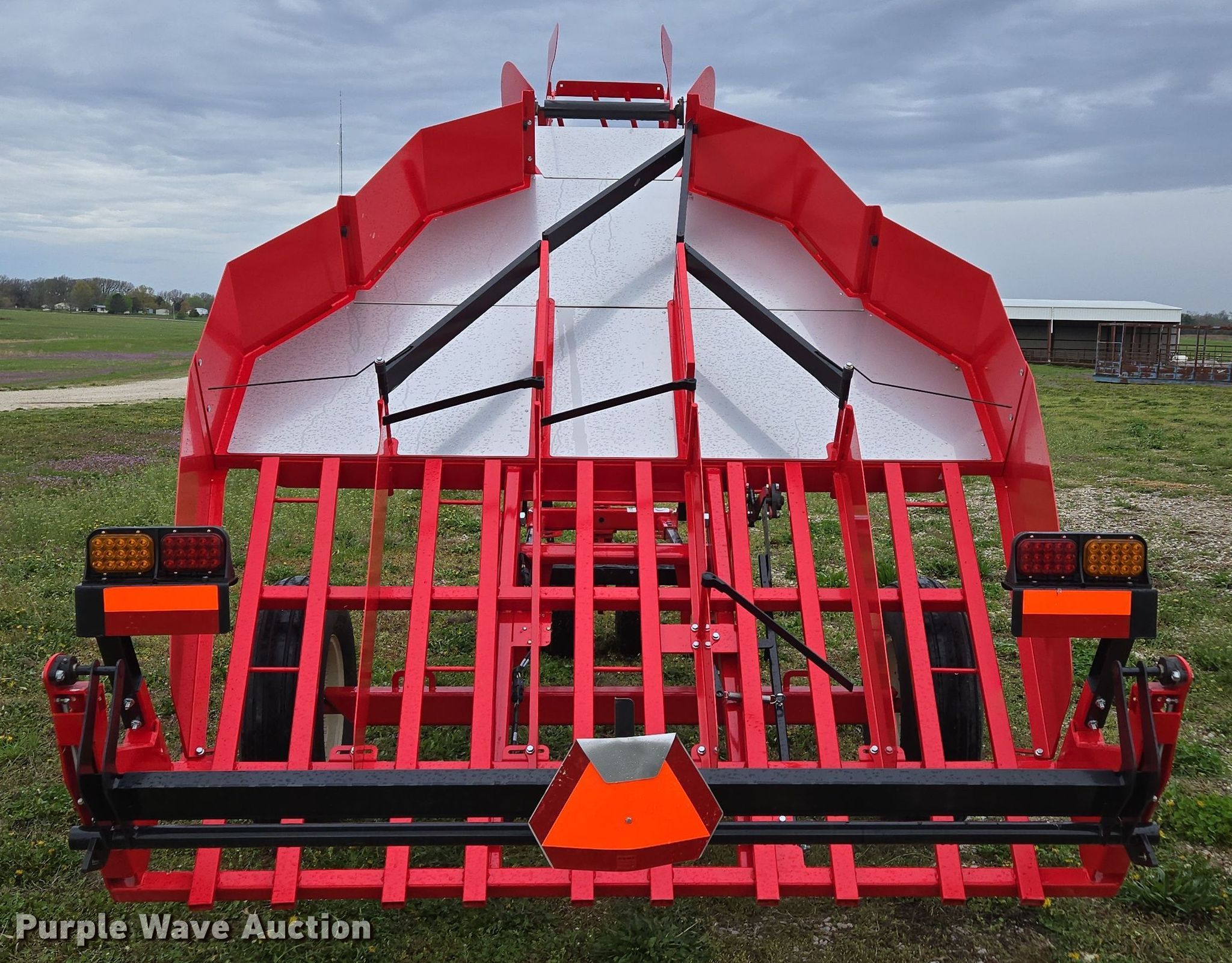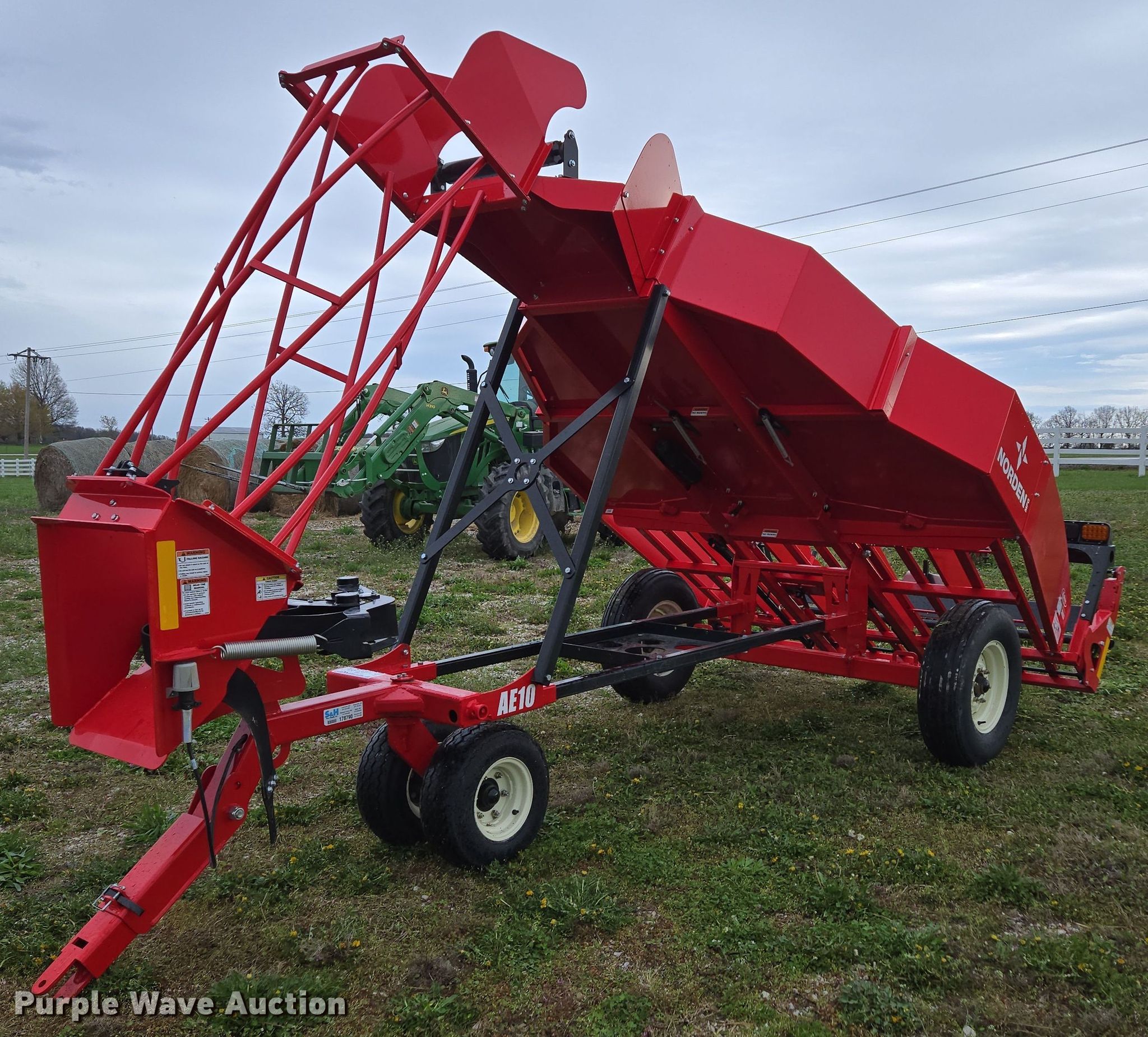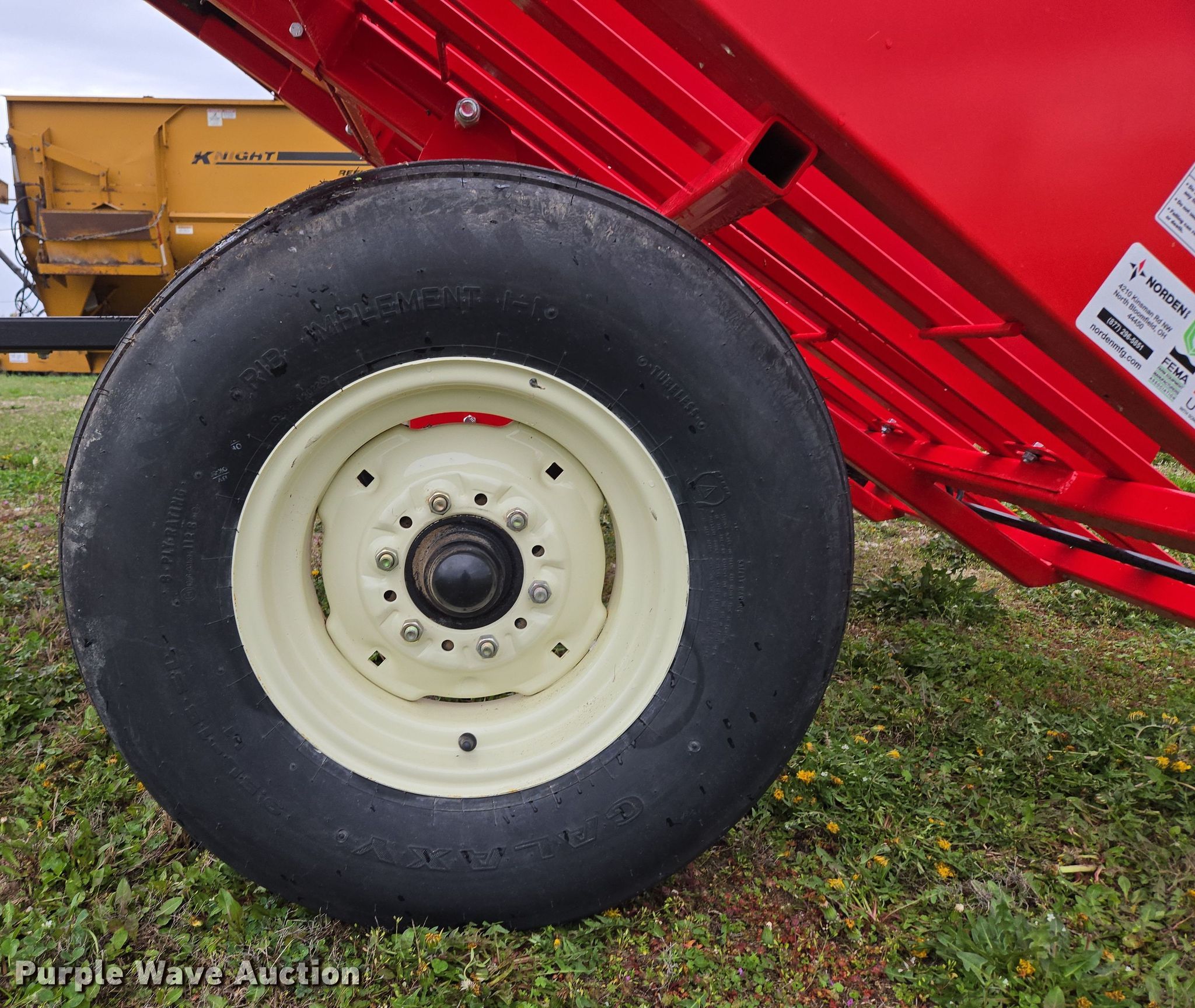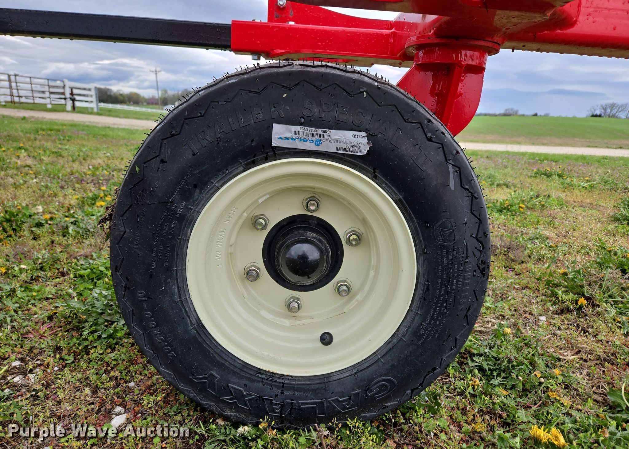 Norden AE10 bale accumulator. Serial: A235039. Features Capacity: 10 bales. Tires Front: 20.5x8.0-10, Rear: 9.5L-15 SL. Notes Hitch pin not included. Pursuant to Missouri law, Purple Wave will not be collecting sales taxes on any of the purchases made in this business liquidation auction.. M3 Hilltop Ranch Retirement - Open Inspection May 13th. 3939 Missouri 125. Rogersville, MO 65742