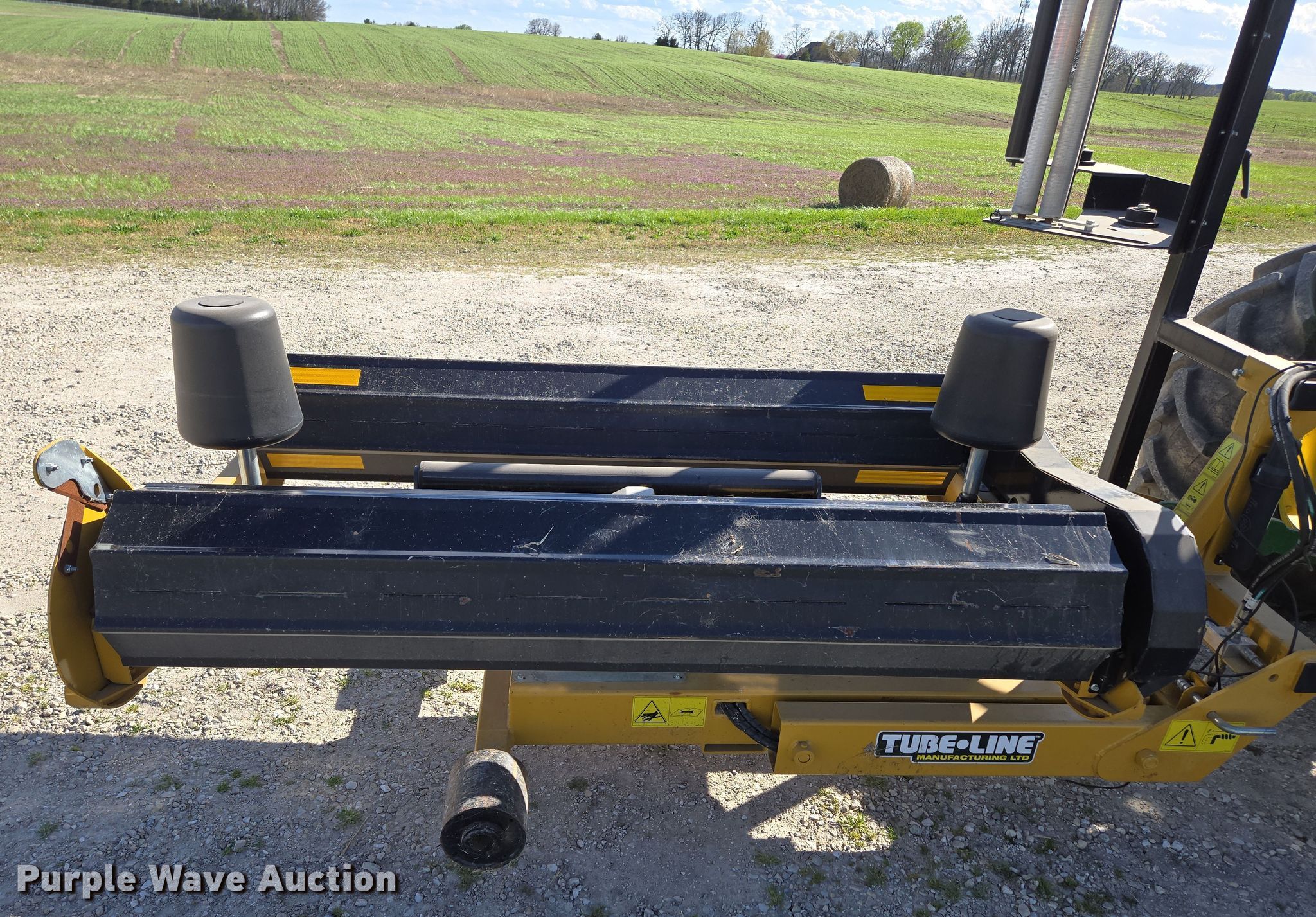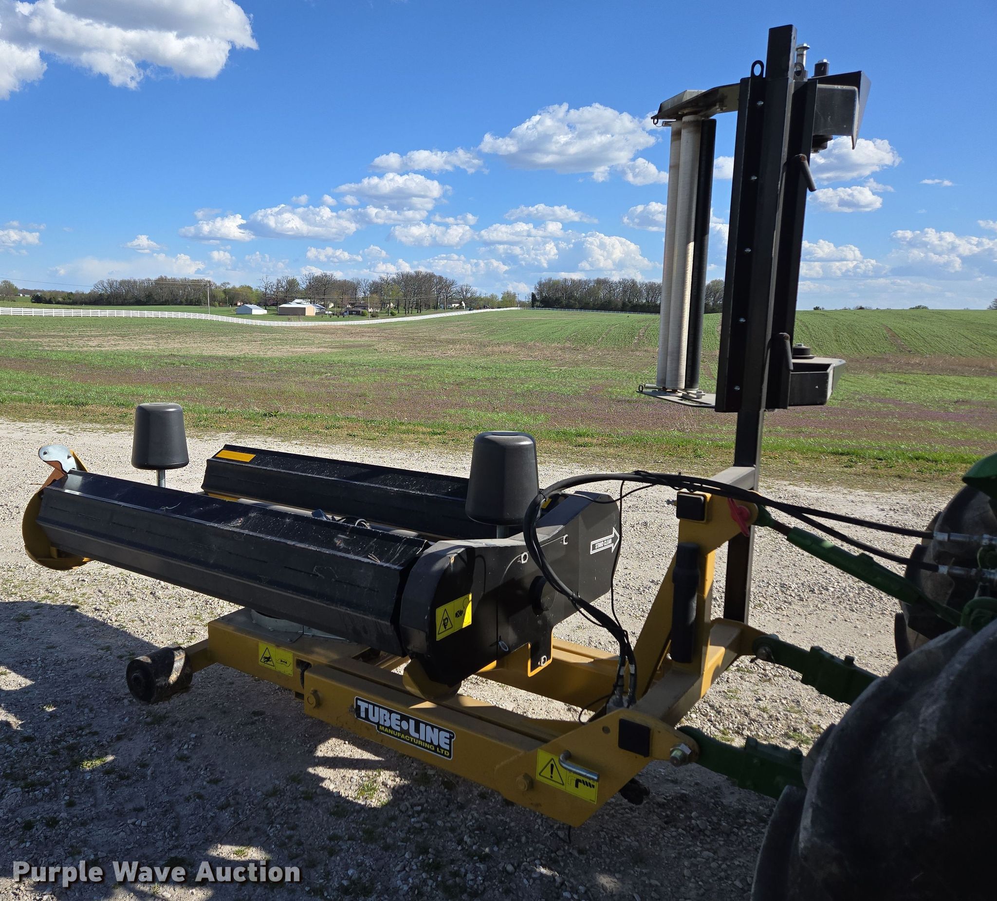 Tube-Line TL1000R bale wrapper. Serial: 2110014. Features Bale size: 4' x 4' and 5' x 5' 6", Bale guides adjustable 4' - 5', Hydraulically driven. Notes Monitor included, Tractor not included. Pursuant to Missouri law, Purple Wave will not be collecting sales taxes on any of the purchases made in this business liquidation auction.. M3 Hilltop Ranch Retirement - Open Inspection May 13th. 3939 Missouri 125. Rogersville, MO 65742