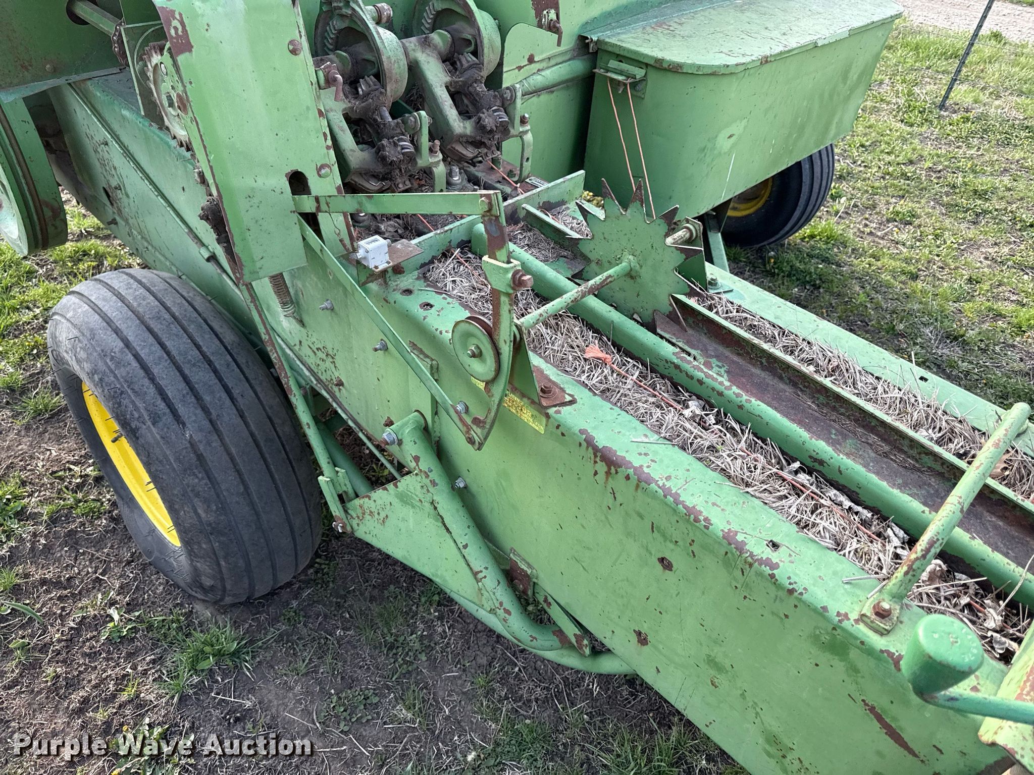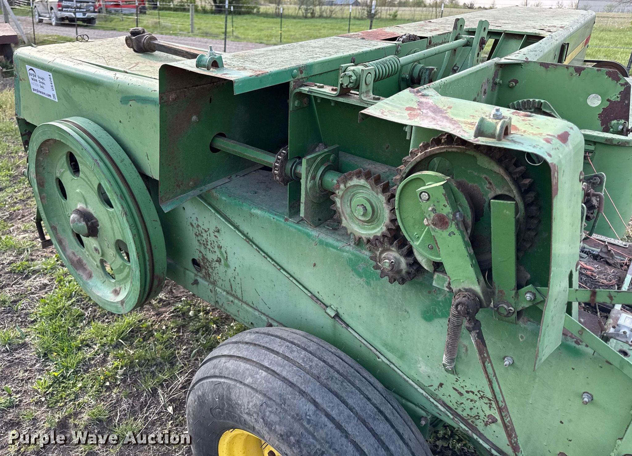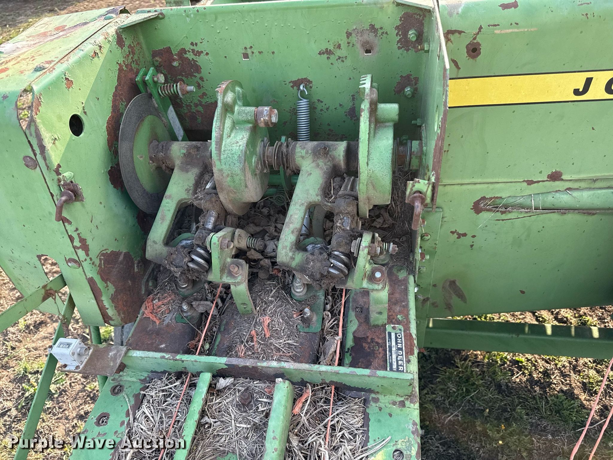 Purple Wave is selling a used Square Baler in Kansas. This item is a John Deere 336 small square baler with the following: PTO: 540, Gauge wheels, Pickup width: 55", Small square bale size: 14"x18", Knotters, Twine tie, Bale chute