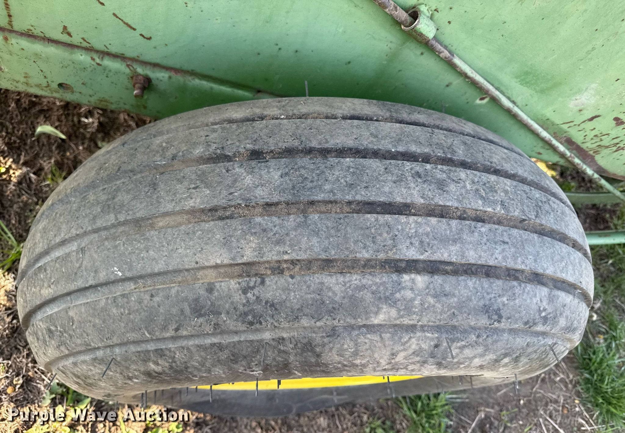 John Deere 336 small square baler. Features. PTO: 540, Gauge wheels, Pickup width: 55", Small square bale size: 14"x18", Knotters, Twine tie, Bale chute. Tires Size: 11L-14. Cronister Farms. Auburn, KS 66402