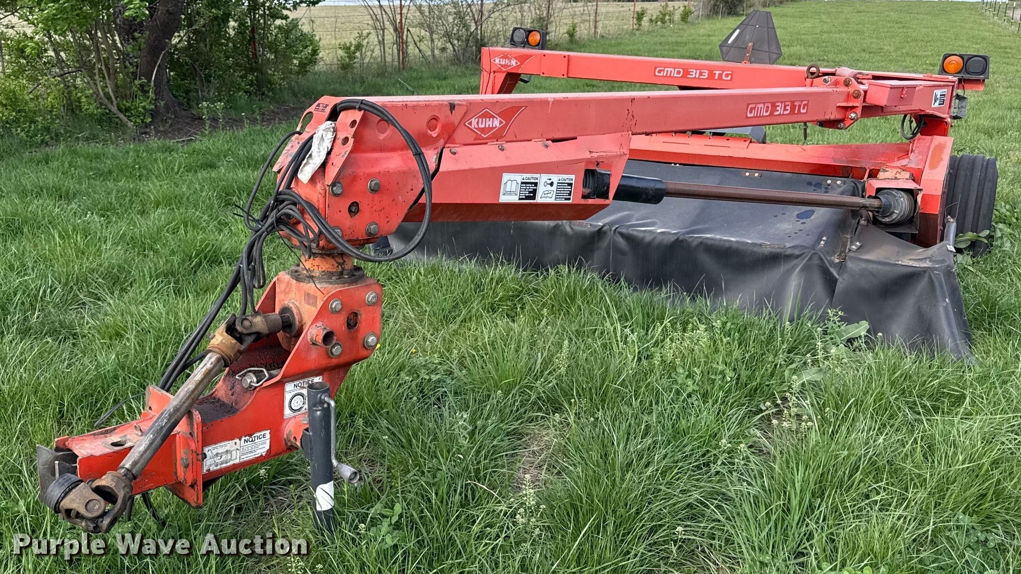 Purple Wave is selling a used Disc or Sickle Mower in Kansas. This item is a Kuhn GMD313TG disc mower with the following: Width: 10', Hydraulic lift, Hydraulic fold, PTO: 540