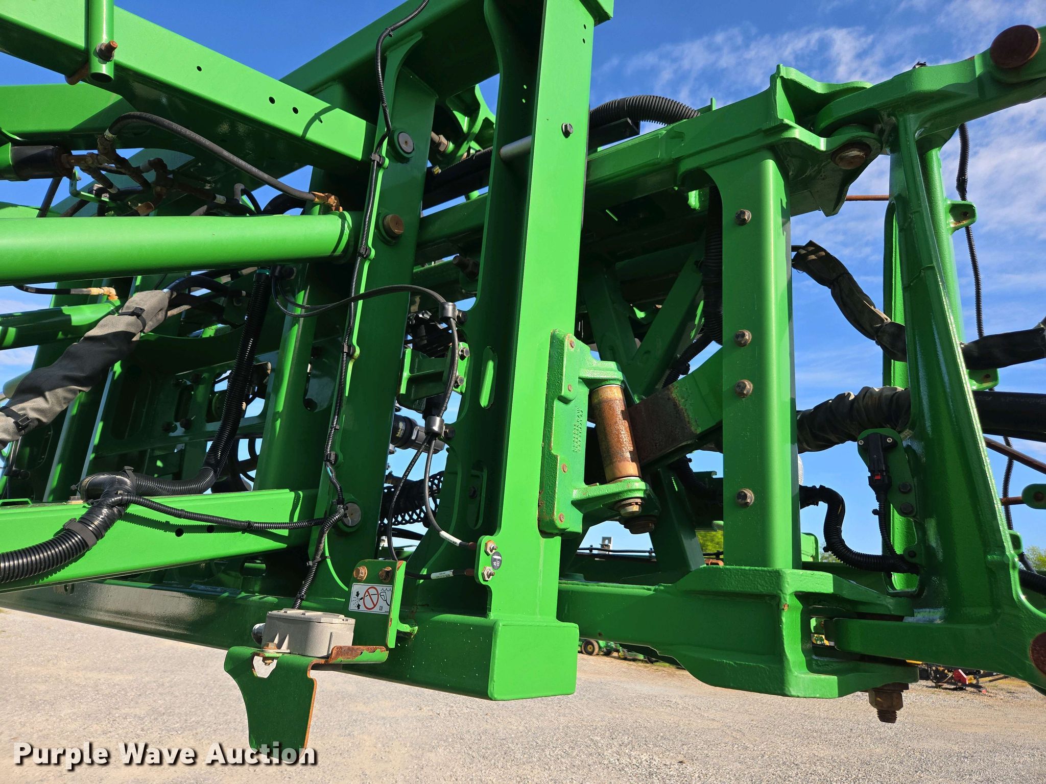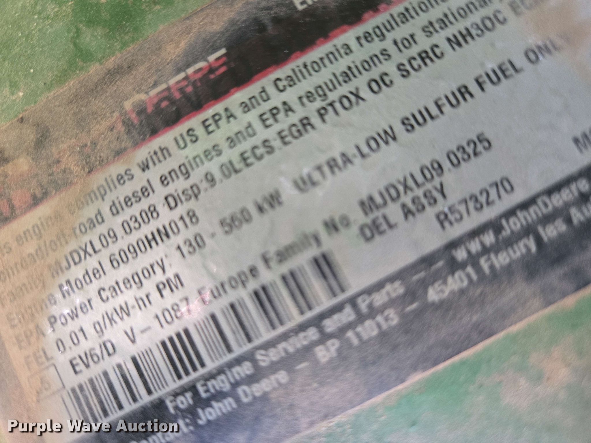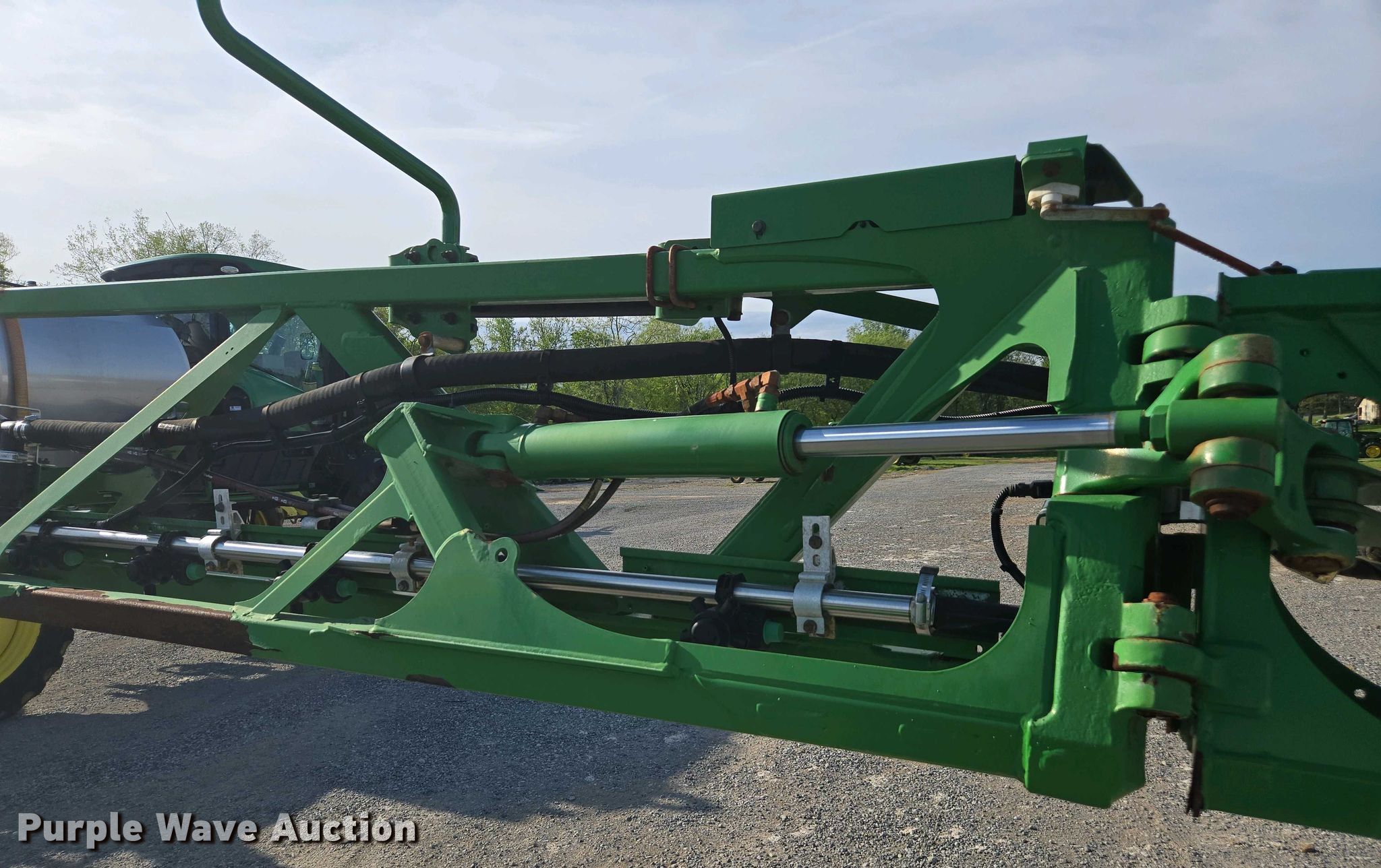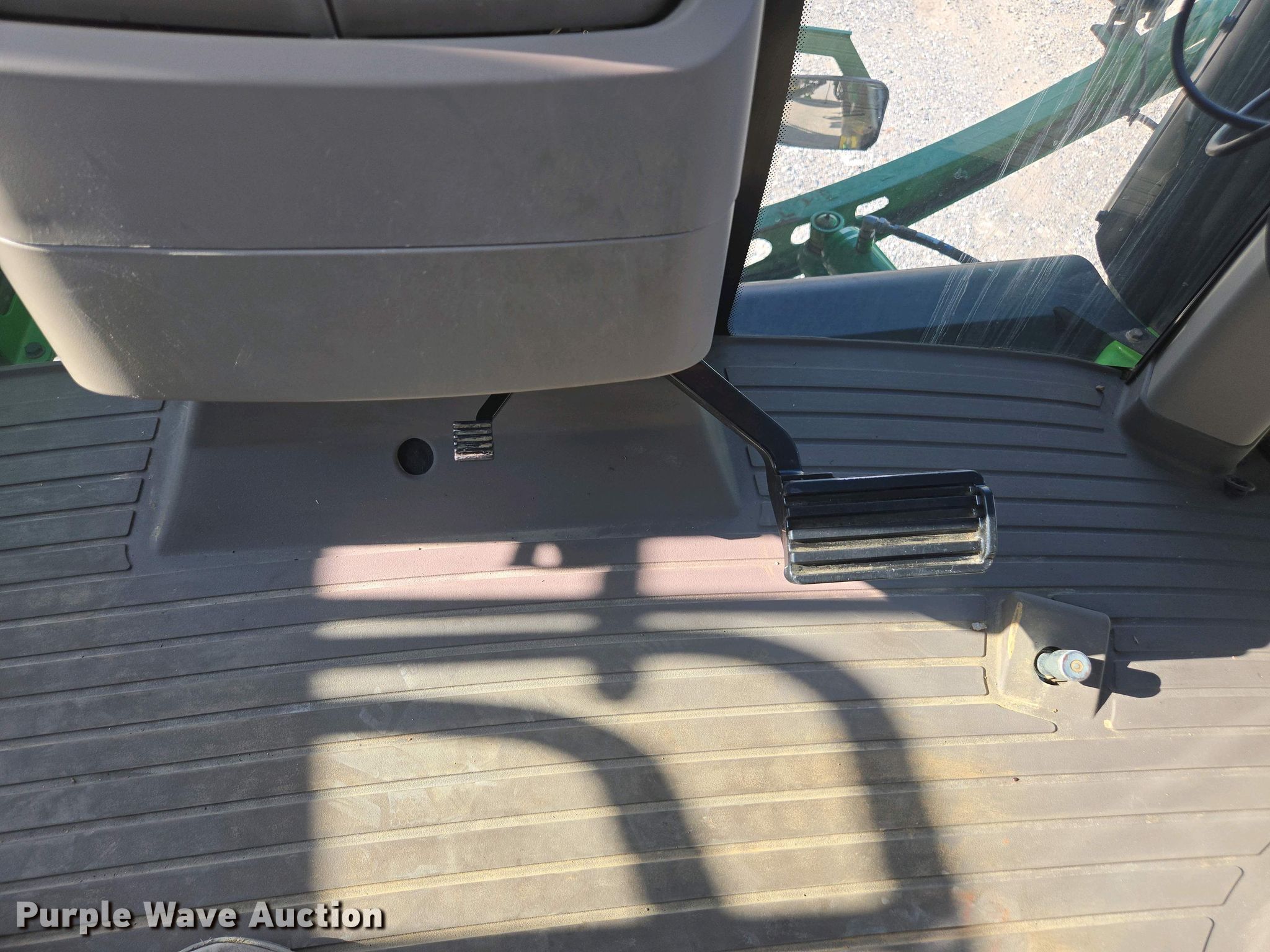 2021 John Deere R4038 sprayer. Engine hours: 948 on meter, Serial: 1N04038RLM0214672. Engine John Deere, Displacement: 9.0L, Cylinders: 6, Fuel type: Diesel. Transmission Hydrostatic, Four wheel drive. Chassis Hydraulic axle width adjust, Differential lock. Operators station AC, Heat, Rotary beacon. Features Hydraulic ladder, Solution tank Capacity: 1,000 gallons, Type: Stainless Steel, Front fill, Chemical eductor Type: Stainless Steel, Rinse tank, Boom Width: 100', Sections: 5, Boom breakaway, Hydraulic boom fold, Hydraulic height control, Automatic height control, Nozzle Spacing: 15", Make: John Deere, Nozzle bodies: 5-way, Fence row nozzles, Electronics GPS monitor John Deere, Auto steer. Tires Front: 380/90R46, Row crop tires. TriGreen Equipment. Athens, AL 35613