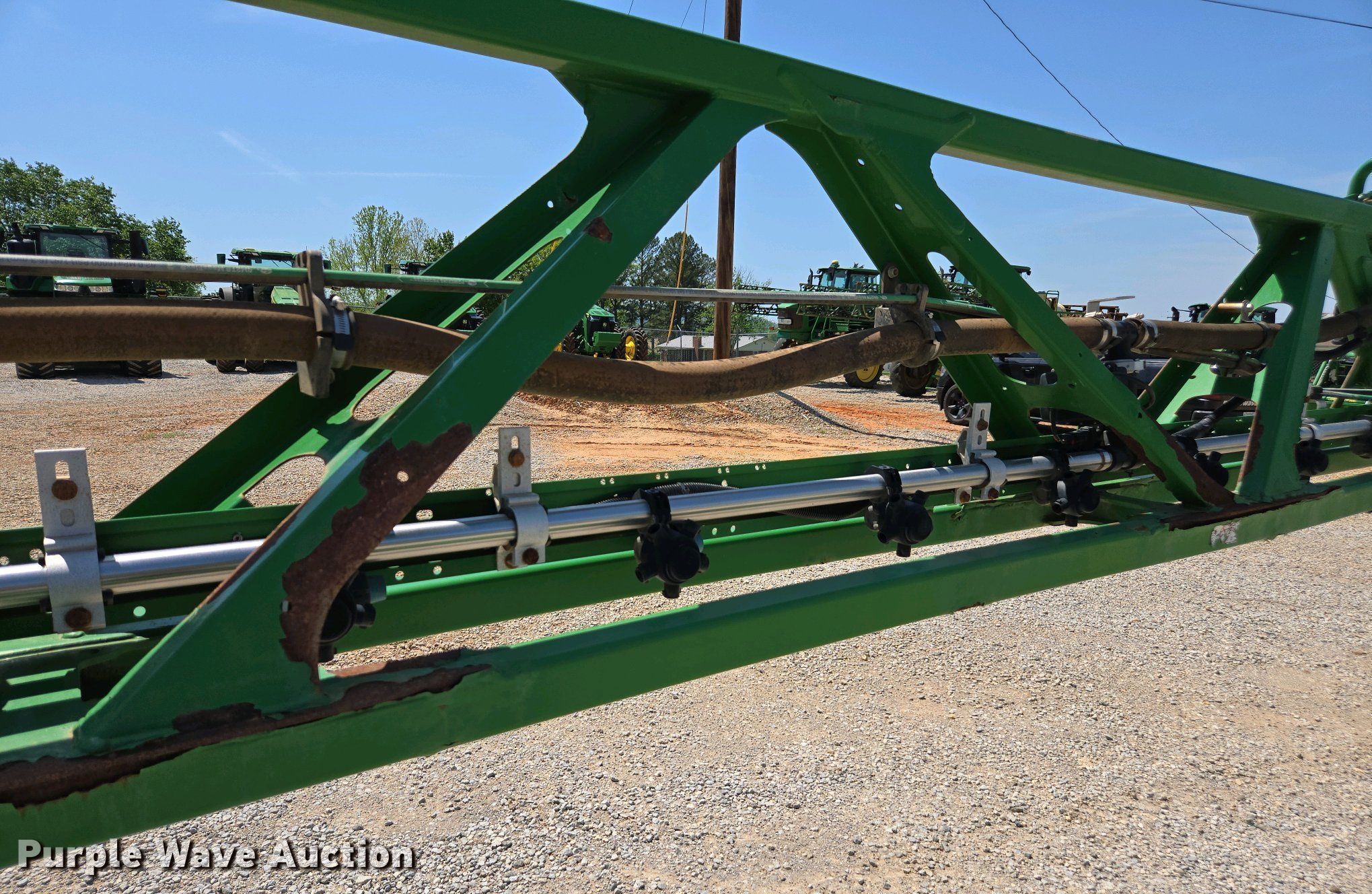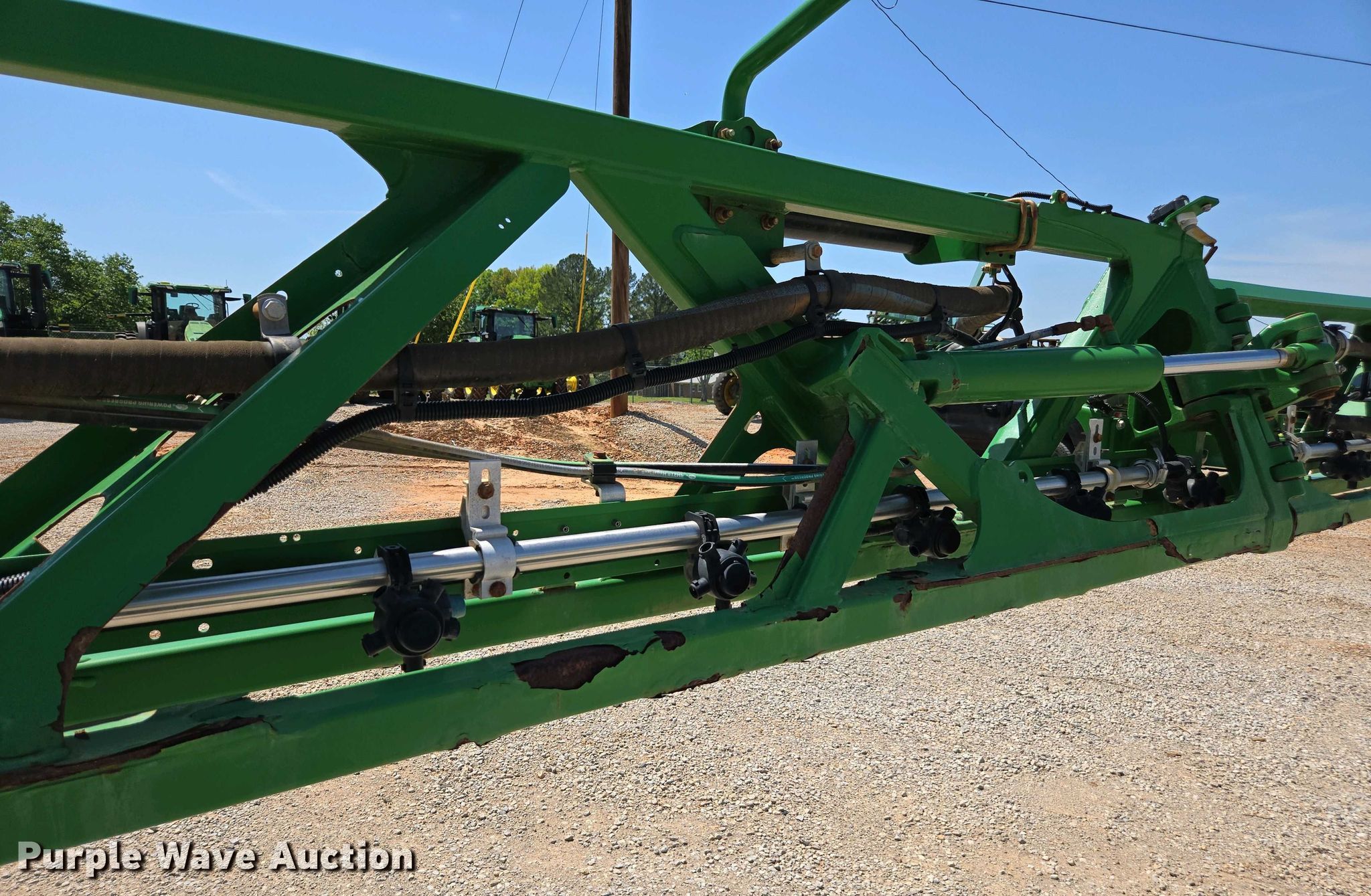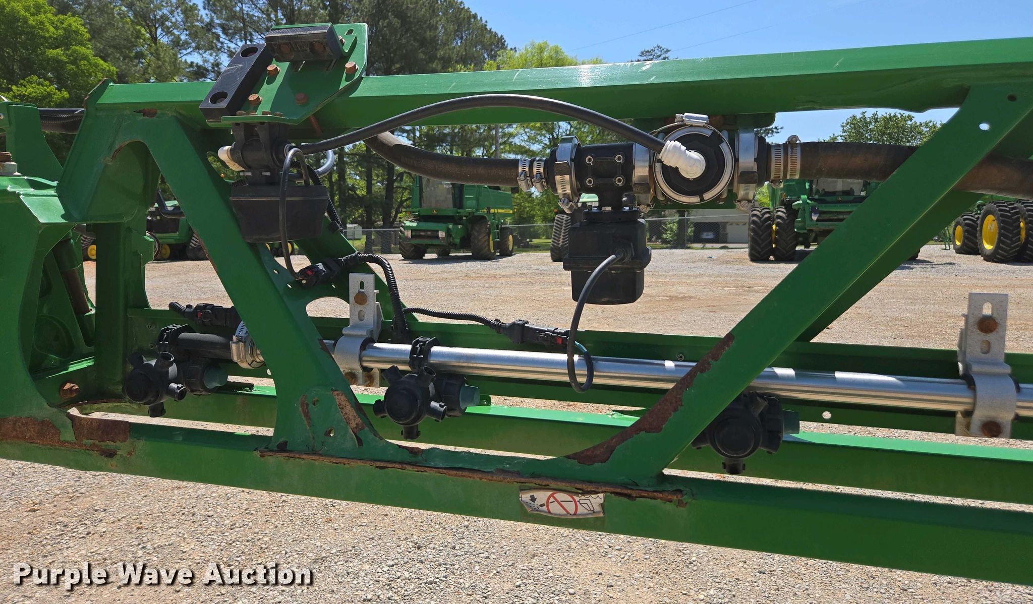 2018 John Deere R4038 sprayer. Engine hours: 2,359 on meter, Serial: 1N04038RTJ0194361. Engine John Deere, Displacement: 9.0L, Cylinders: 6, Fuel type: Diesel. Transmission Hydrostatic, Four wheel drive. Chassis Hydraulic axle width adjust, Differential lock. Operators station AC, Heat, Rotary beacon. Features Hydraulic ladder, Belly shield, Solution tank Capacity: 1,000 gallons, Type: Stainless Steel, Front fill, Rinse tank, Boom Width: 100', Sections: 5, Boom breakaway, Hydraulic boom fold, Hydraulic height control, Automatic height control, Nozzle Spacing: 15", Make: John Deere, Nozzle bodies: 5-way, Fence row nozzles, Electronics GPS monitor John Deere, Auto steer. Tires Front: 420/80R46, Row crop tires. TriGreen Equipment. Leighton, AL 35646
