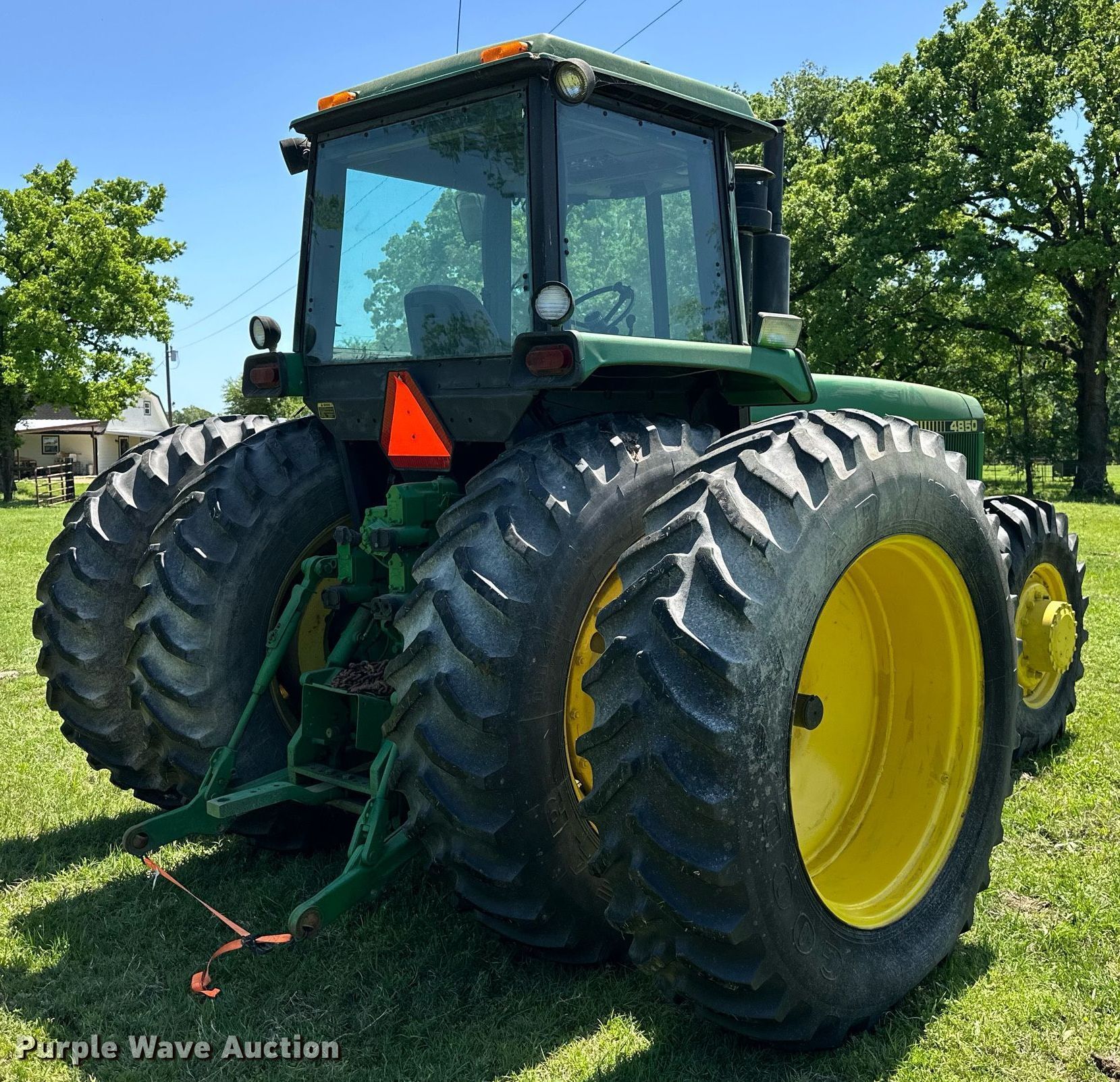 Purple Wave is selling a used Tractor in Texas. This item is a 1984 John Deere 4850 MFWD tractor with the following: Hours: 7,958 on meter, Serial: RW4850P005831