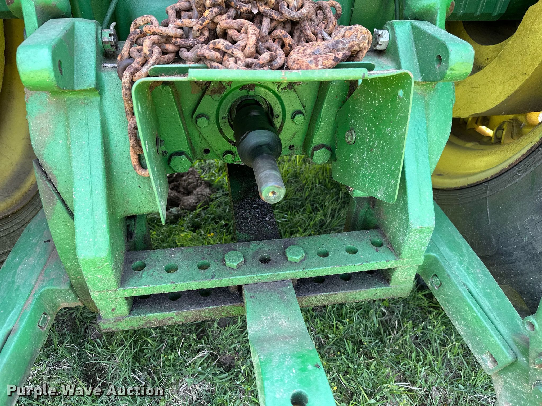 1984 John Deere 4850 MFWD tractor. Hours: 7,958 on meter, Serial: RW4850P005831. Engine John Deere 6466AR-17, Serial: RG6466A273005, Displacement: 7.6L, Cylinders: 6, Fuel type: Diesel. Transmission Powershift, 15F - 4R, Differential lock. Operators station AC, Heat. Features PTO: 1000, Three point, Seven pin outlet, Hydraulic remote sets Rear: 3, Suitcase weights: 20. Tires Front: 16.9R28, Rear: 18.4R42, Wheel weights: 2, Wheelbase: 119", Duals. Notes Warning indicator: Trans Filter, AC issues, does not blow cold, PTO issues, will not turn off. Palestine, TX 75803