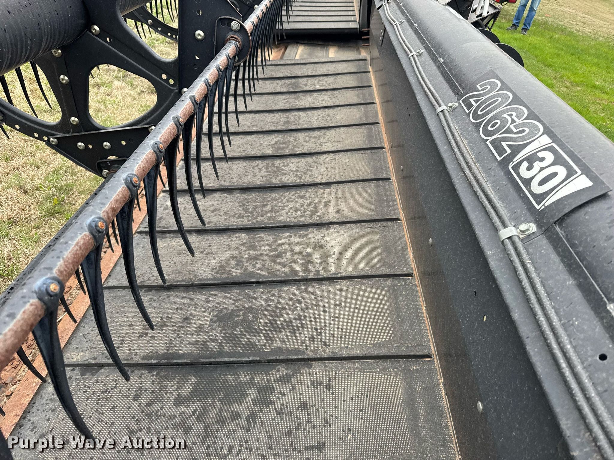 2005 Case IH 2062 draper head. Serial: CCC0015169. Features Width: 30', Reel: Finger Hydraulic fore/aft, Hydraulic reel height control, Drivelines: Single. Notes Compatible with Case 2188, 1680, 2388, and 2588 combines. Radke Implement. Russell, KS 67665