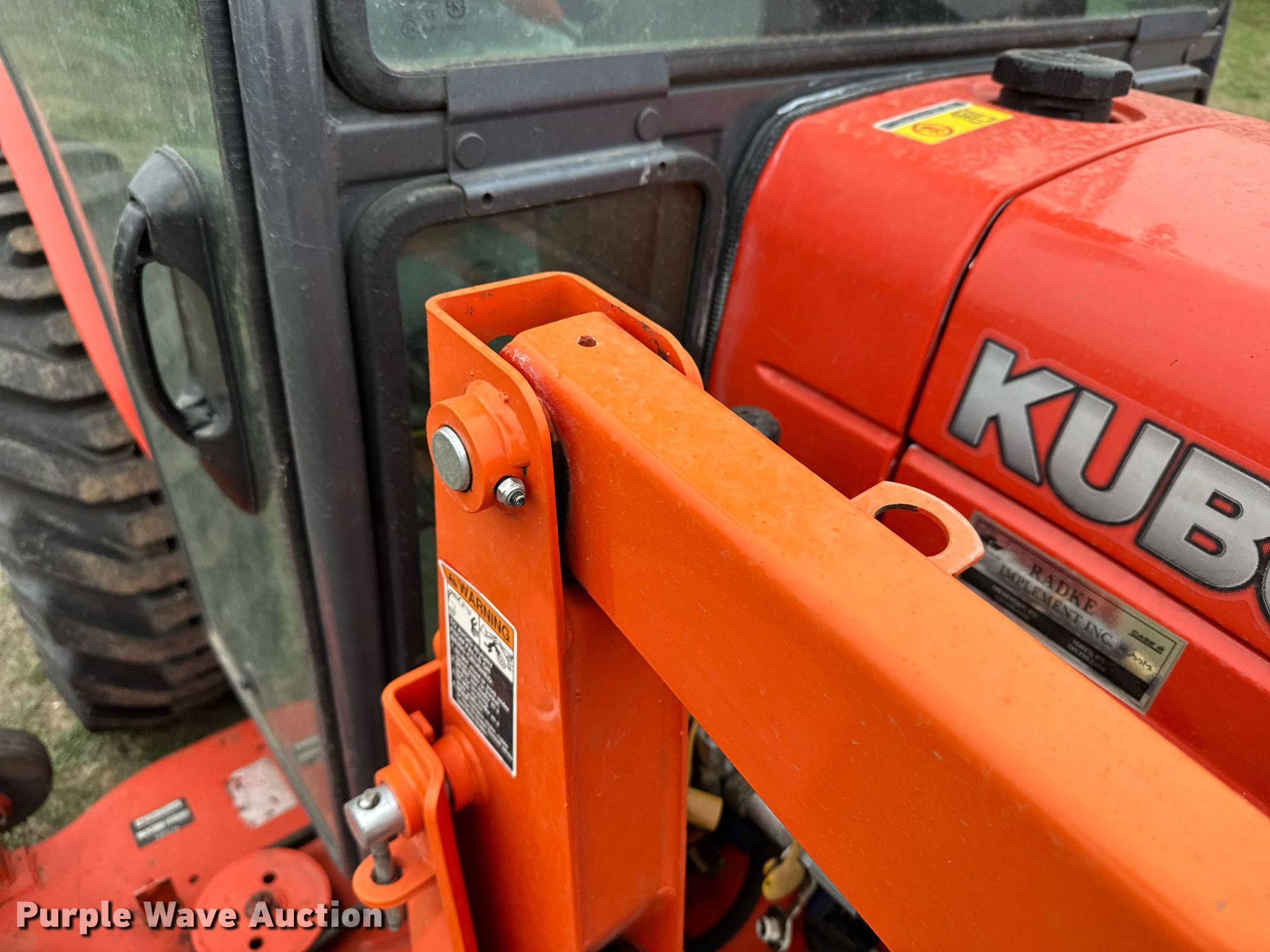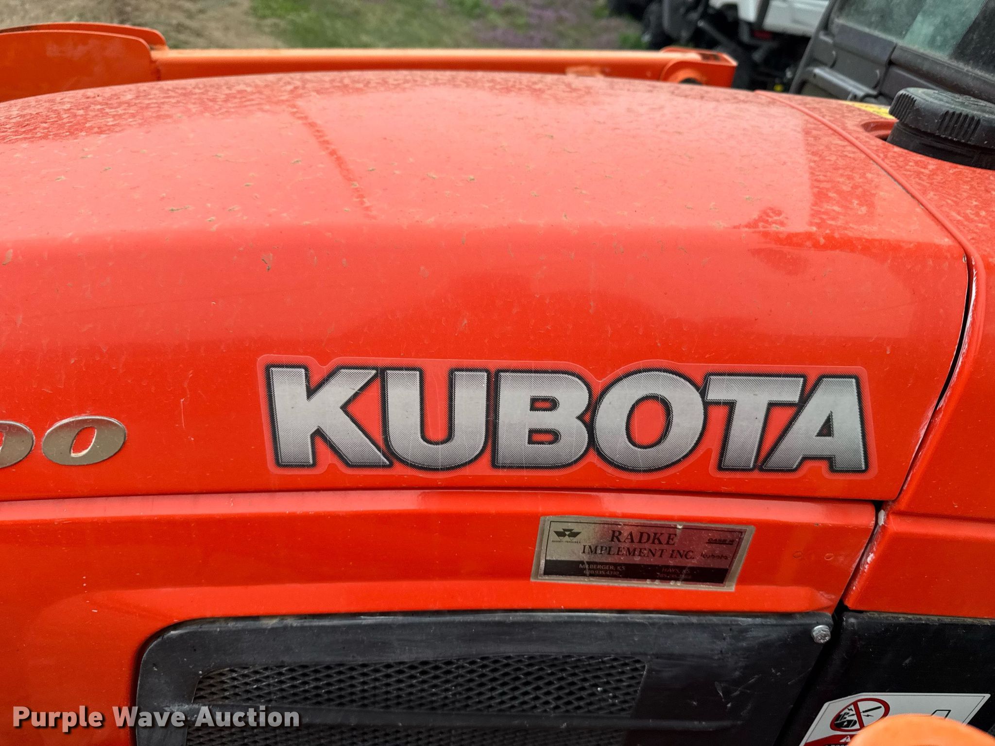 2012 Kubota B3000HSD MFWD tractor. Hours: 318 on meter, Serial: 51295. Engine Kubota V1505, Cylinders: 3, Fuel type: Diesel. Transmission Hydrostatic. Operators station AC, Heat. Features PTO: 540, Three point Top link, Loader Kubota LA403, Controls: Joystick, Bucket Width: 60", Mower deck Kubota RC72-30B, Width: 72". Tires Front: 23x8.50-14, Rear: 12.4-16. Radke Implement. Russell, KS 67665