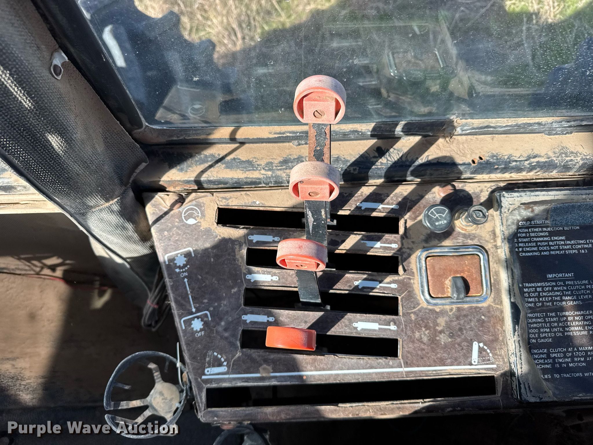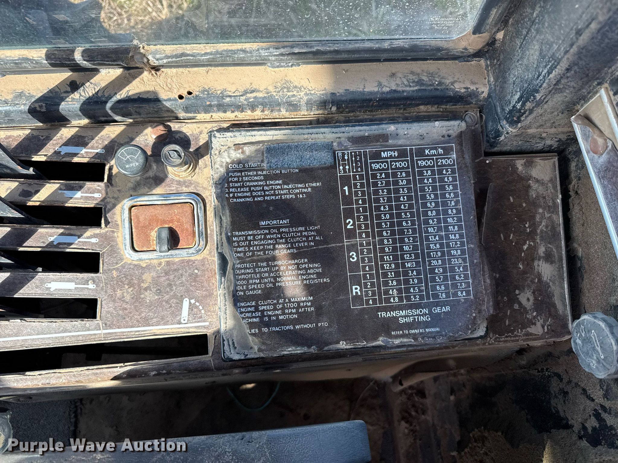 1982 Versatile 895 4WD tractor. Hours: 7,244 on meter, Serial: 091236. Engine Cummins, Serial: 60511789, Cylinders: 6, Fuel type: Diesel, HP: 261. Transmission Manual, 12F - 4R. Features Seven pin outlet, Hydraulic remote sets Rear: 4. Tires Size: 20.8-38, Duals. Ellsworth, KS 67439