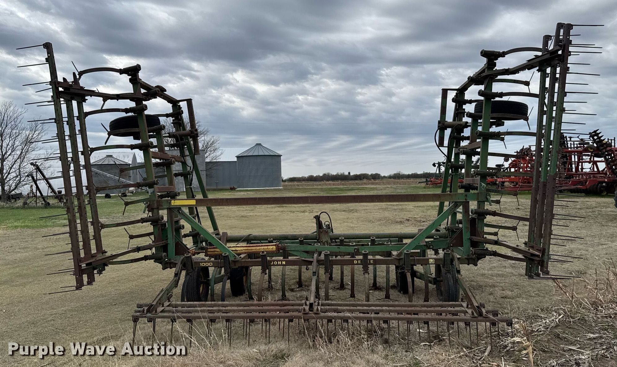Purple Wave is selling a used Field Cultivator or Sweep Plow in Kansas. This item is a John Deere 1000 field cultivator with the following: Overall width: 26'