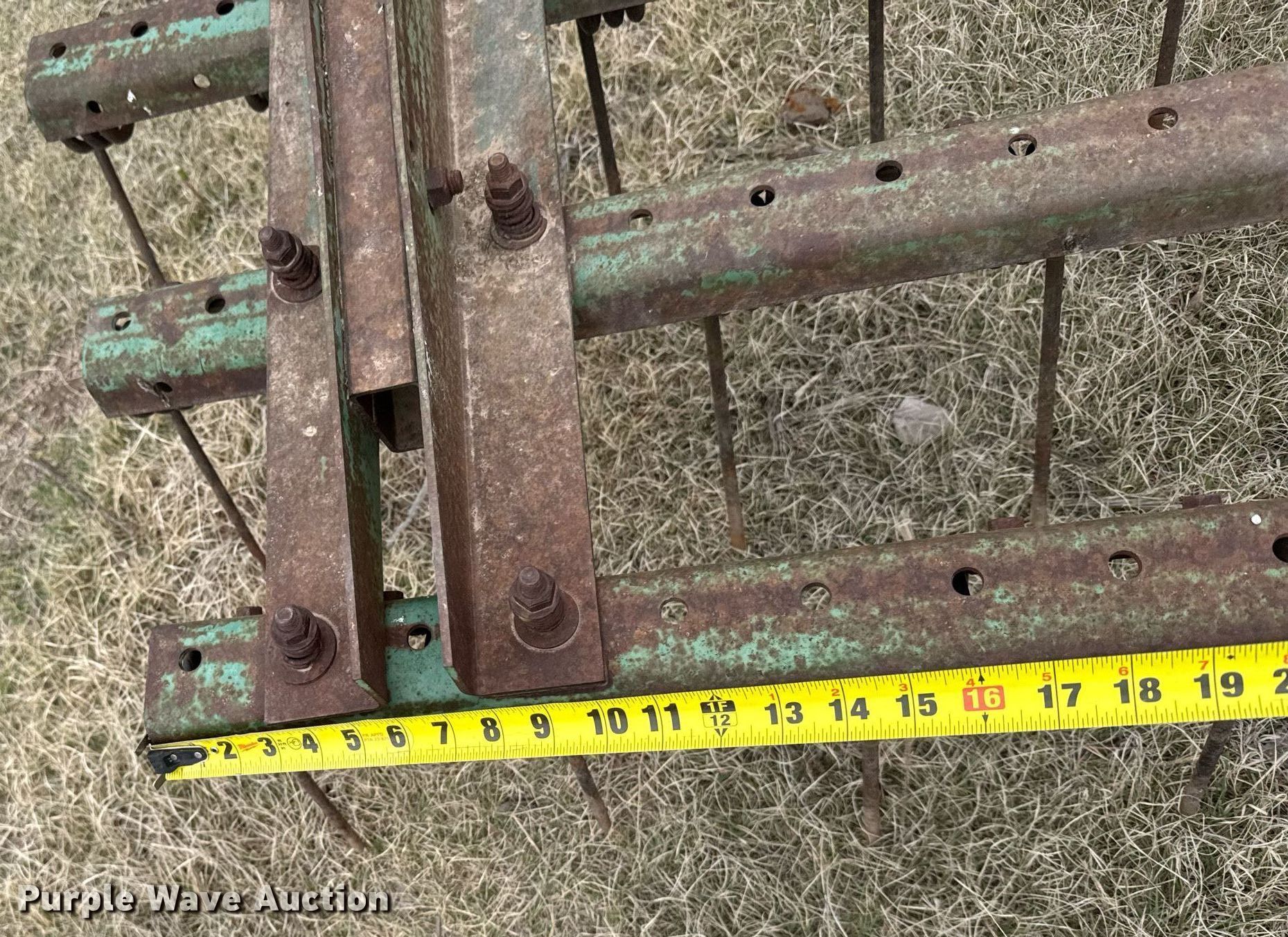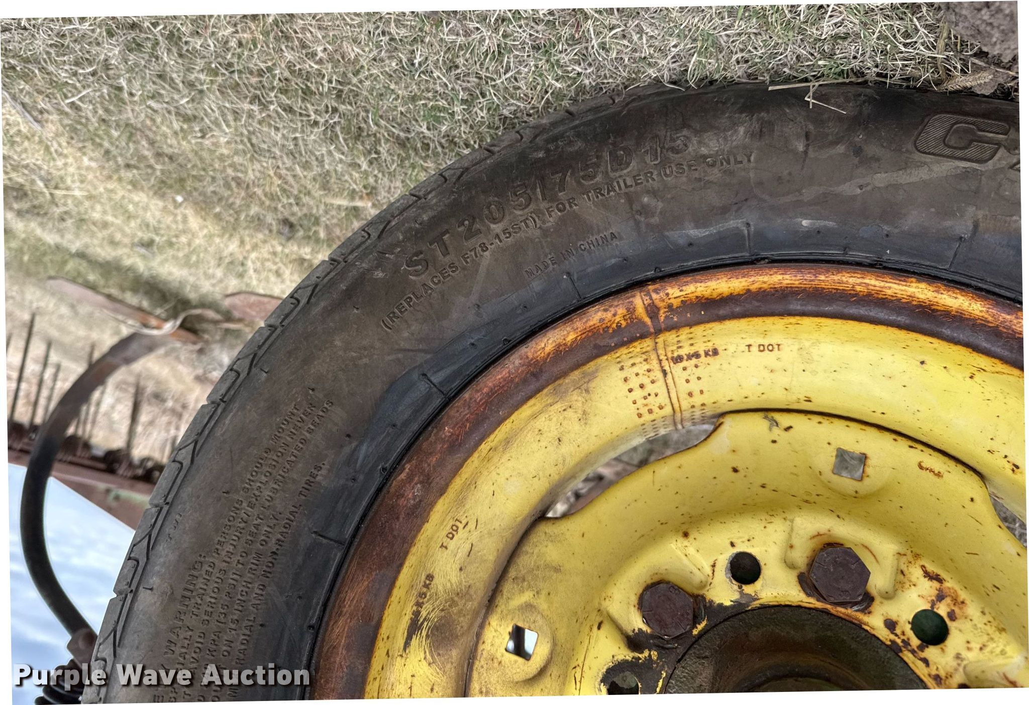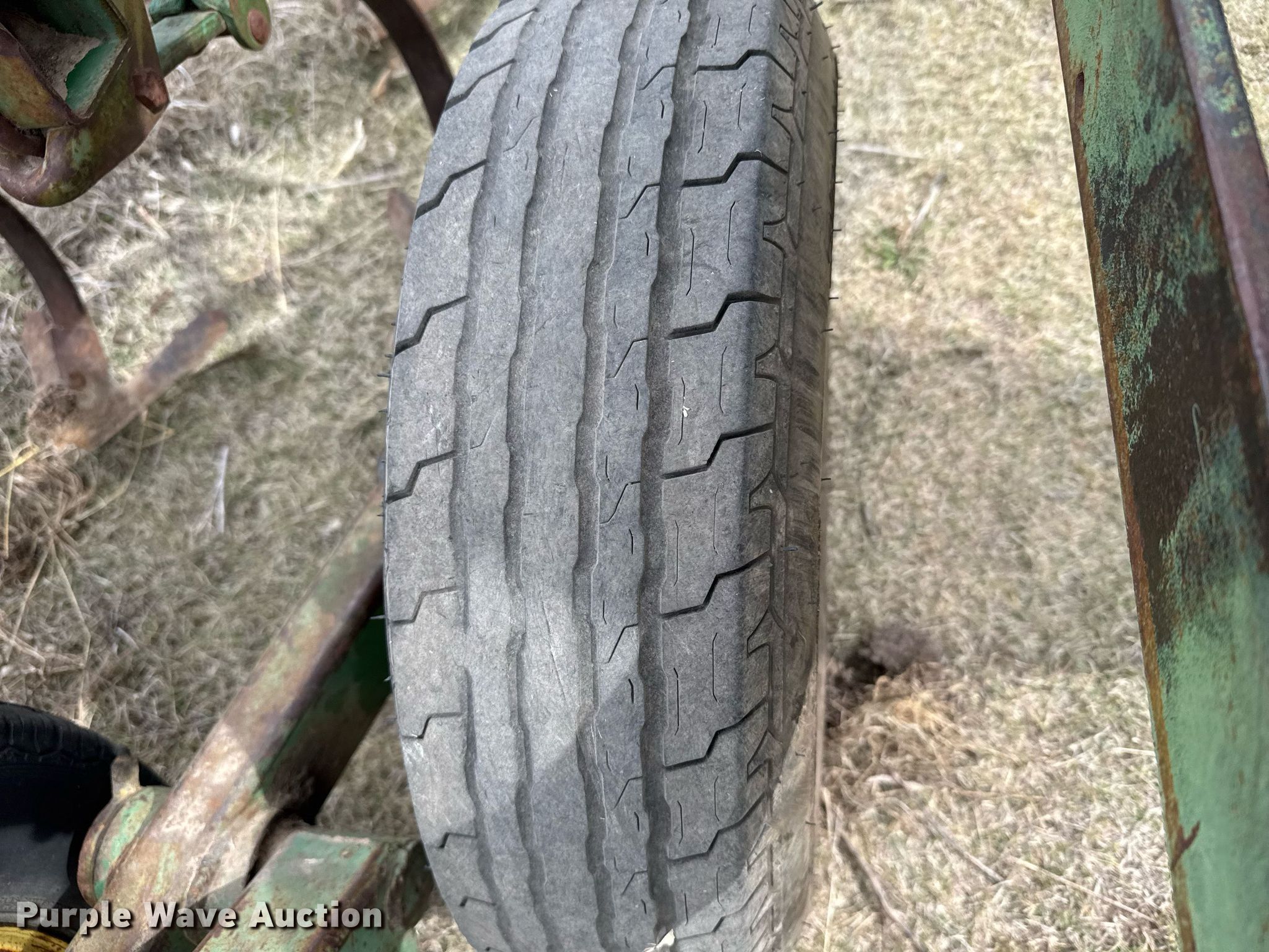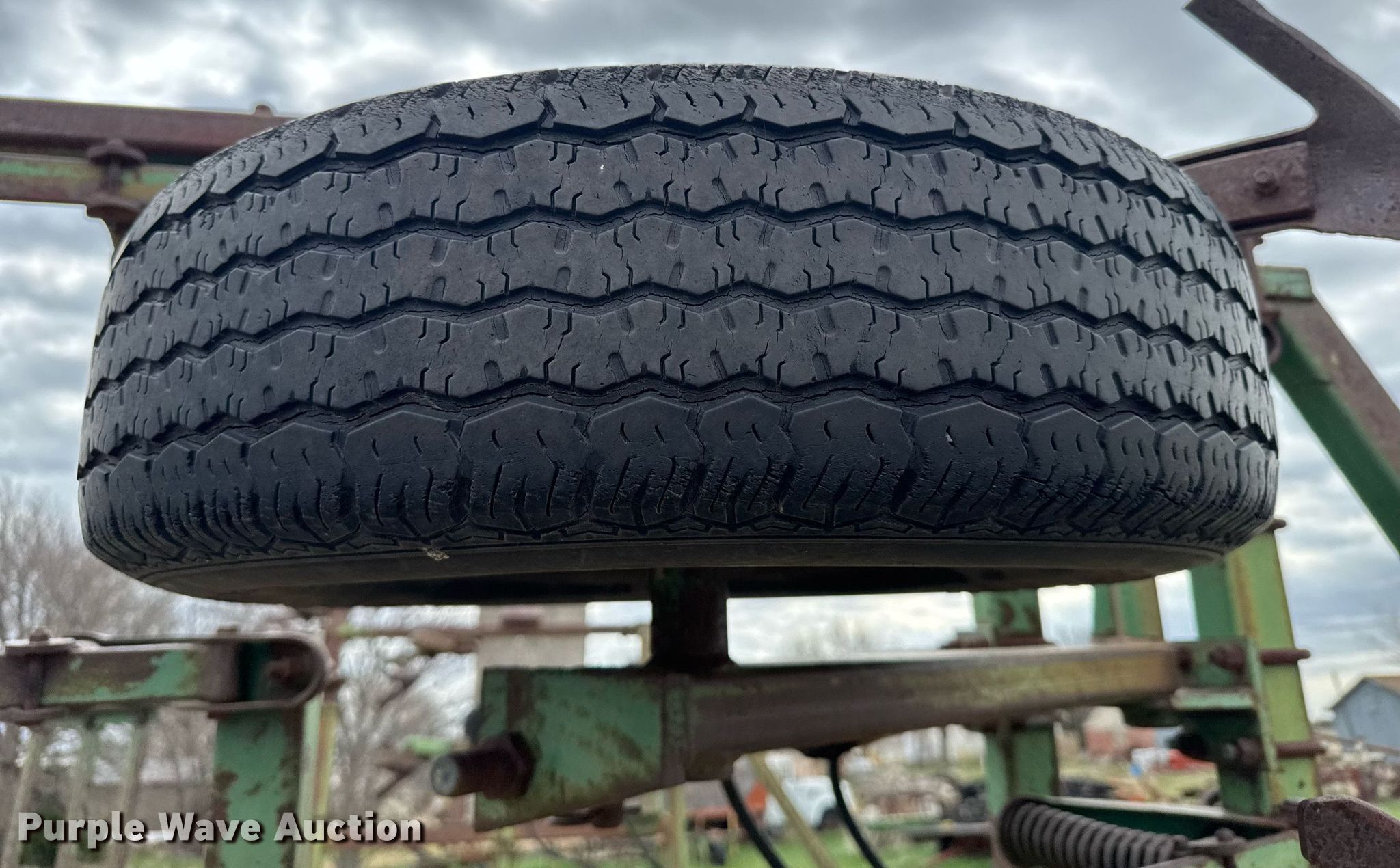 John Deere 1000 field cultivator. Overall width: 26'. Features Shanks: 56, Sweep width: 12", Operation Hydraulic lift, Hydraulic fold, Leveler: Hydraulic, Walking tandem axle, Attachments Tine harrow Harrow bars: 3.. Tires Tire size: 205/75R15, Gauge wheels Size: 205/75R15. Albert, KS 67511