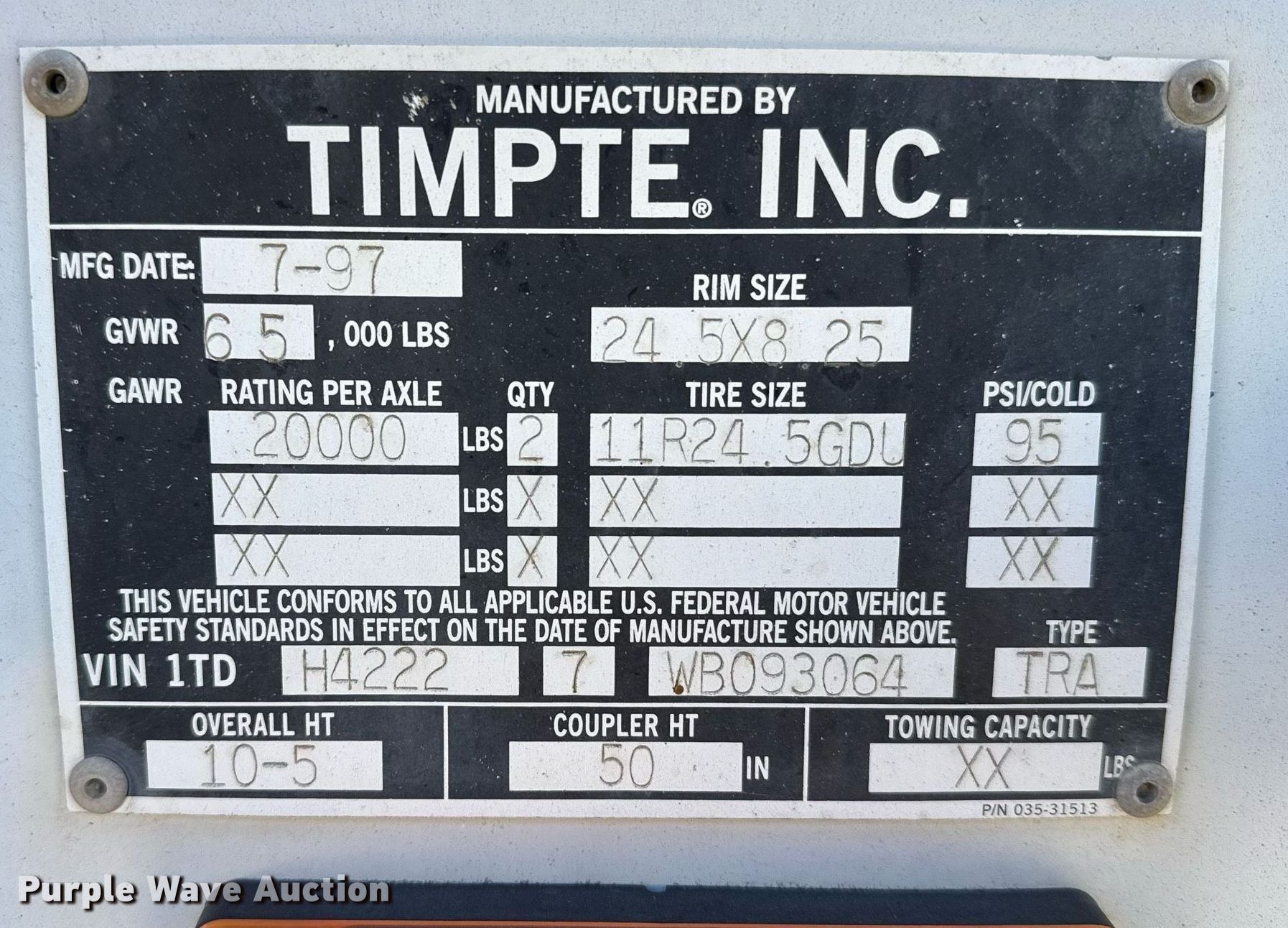 Purple Wave is selling a used Grain or Commodity Trailer in Kansas. This item is a 1998 Timpte grain trailer with the following: VIN: 1TDH42227WB093064