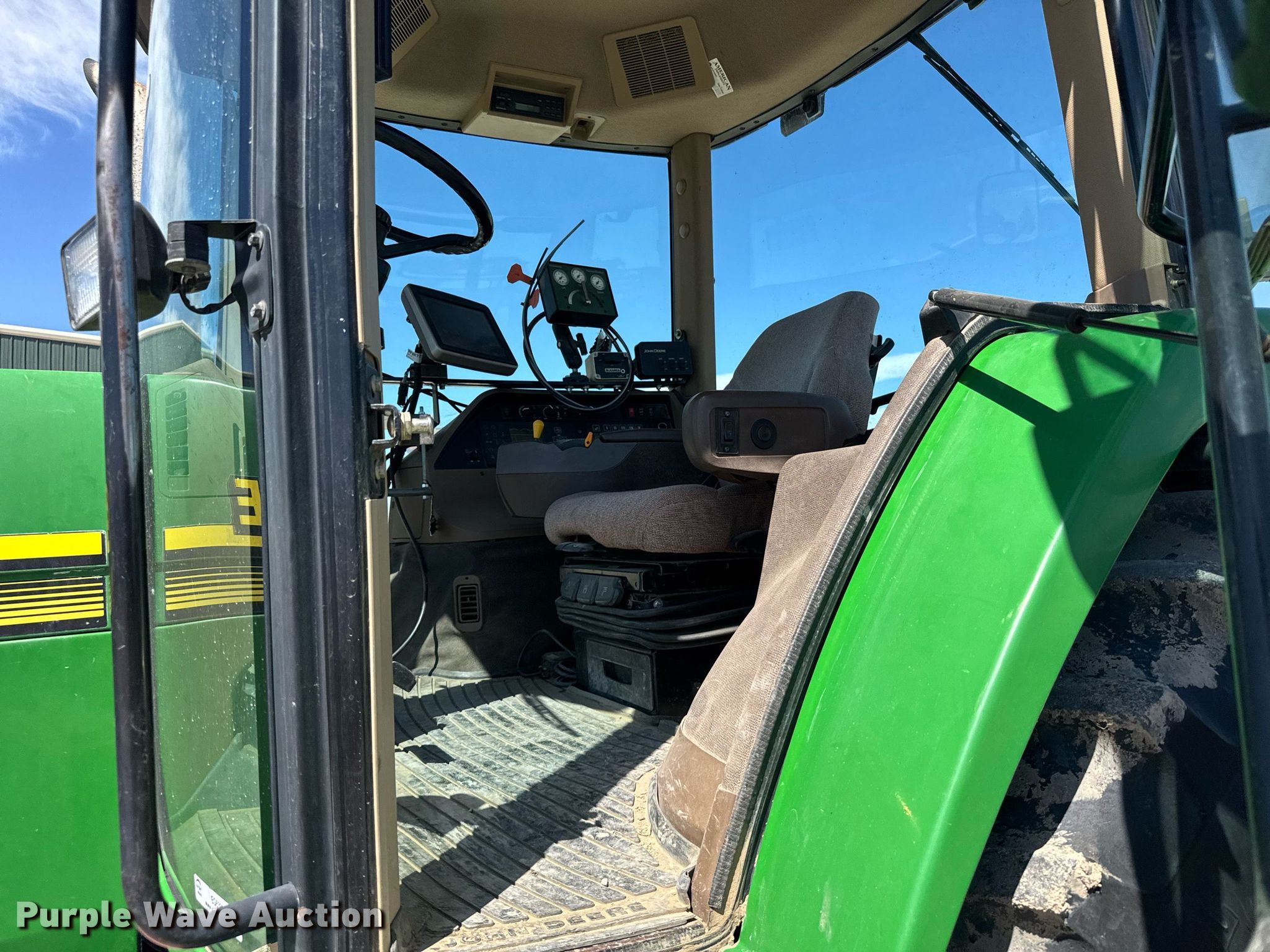 2001 John Deere 8410 MFWD tractor. Hours: 9,597 on meter, Serial: RW8410P013254. Engine John Deere, Cylinders: 6, Fuel type: Diesel, HP: 235. Transmission Powershift, 16F - 4R. Operators station AC, Heat, GPS receiver John Deere Star fire 3000, Display John Deere GreenStar 3. Features PTO: 1000, Three point Top link, Quick attach, Seven pin outlet, ISOBUS outlet, Rear: 5, Suitcase weights: 18. Tires Front: 380/85/R34, Rear: 480/80R46, Wheel weights: 4, Duals. M3 Farms. Oakley, KS 67748