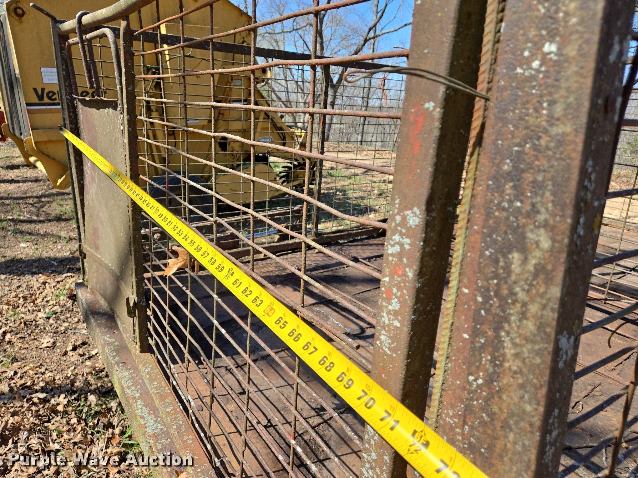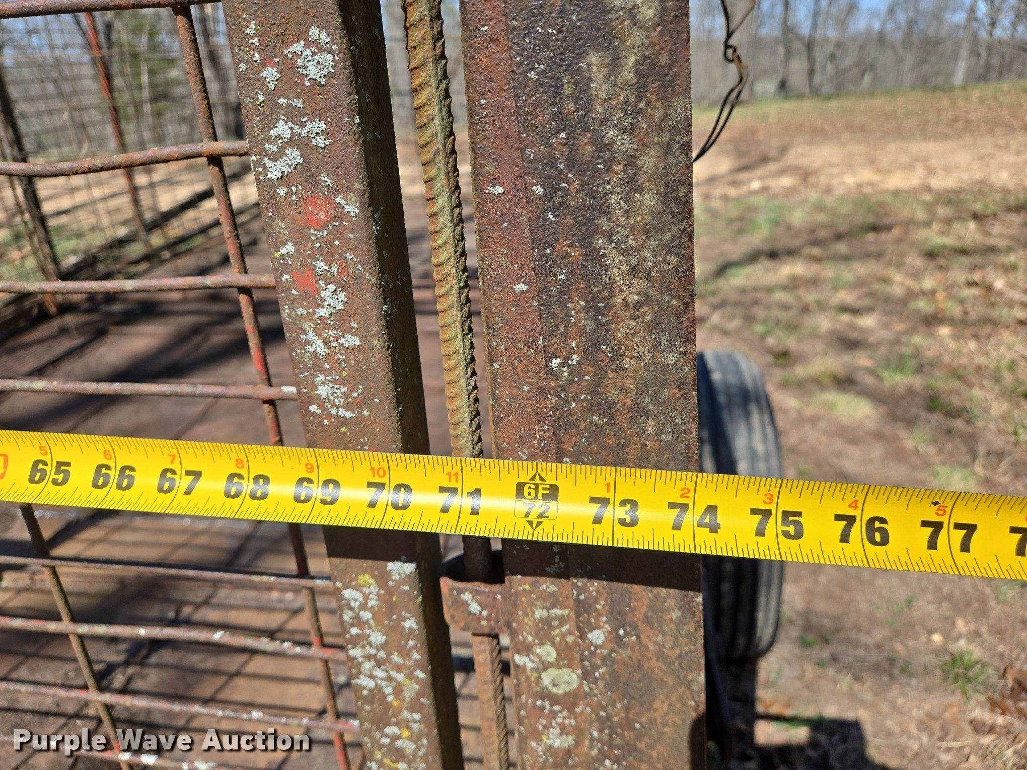 Feed wagon. Features. Dump bed, Length: 12', Hitch: Pin. Tires Size: 7.60L-15. Livestock trailer Dimensions: 12' L x 6' W, Side height: 41", Hydraulic lift, Hitch: Pin. Tires 9.5L-15SL. Notes Tires damaged. Walker Products, Inc.. Sullivan, MO 63080