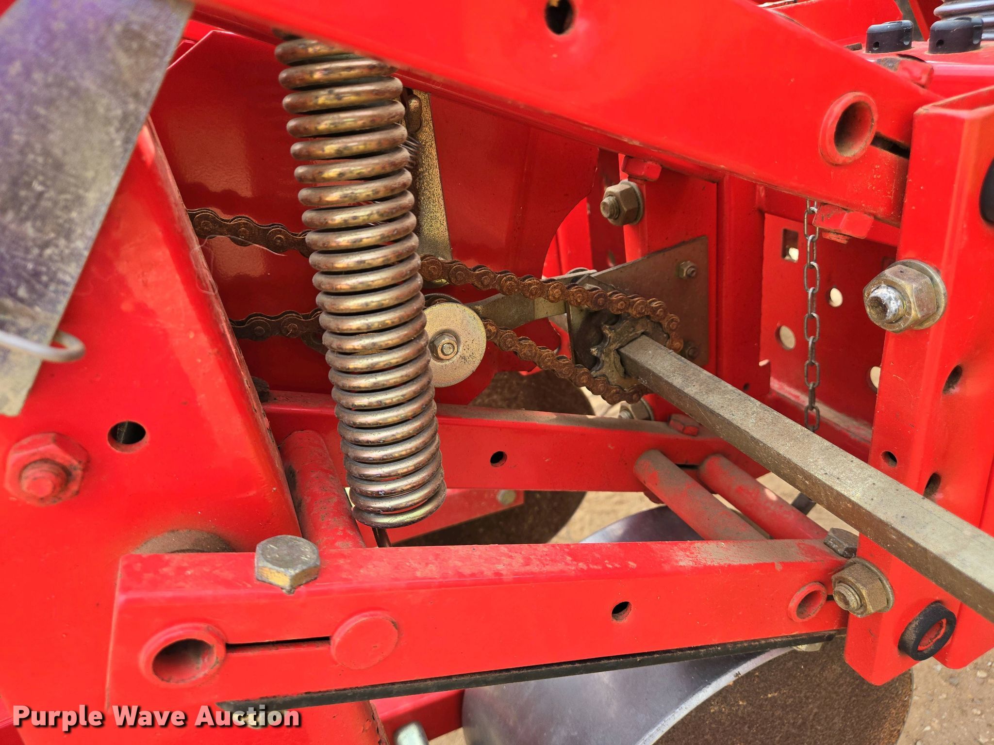 MaterMacc MSO planter. Row units: 3, Row spacing: 13". Features Frame Hitch: Three point, Seed delivery Individual seed hoppers, Row units Vacuum metering, Meter drive: Ground, Seed meters: Corn, Soybeans, Down pressure: Spring, Seed firmers, Disk openers: Double, Gauge wheels: Single, Closing system: Single Type: Cast.. Tires Drive/ outside tire size: 5.00-12. Notes Tractor not included. Ellington, MO 63638