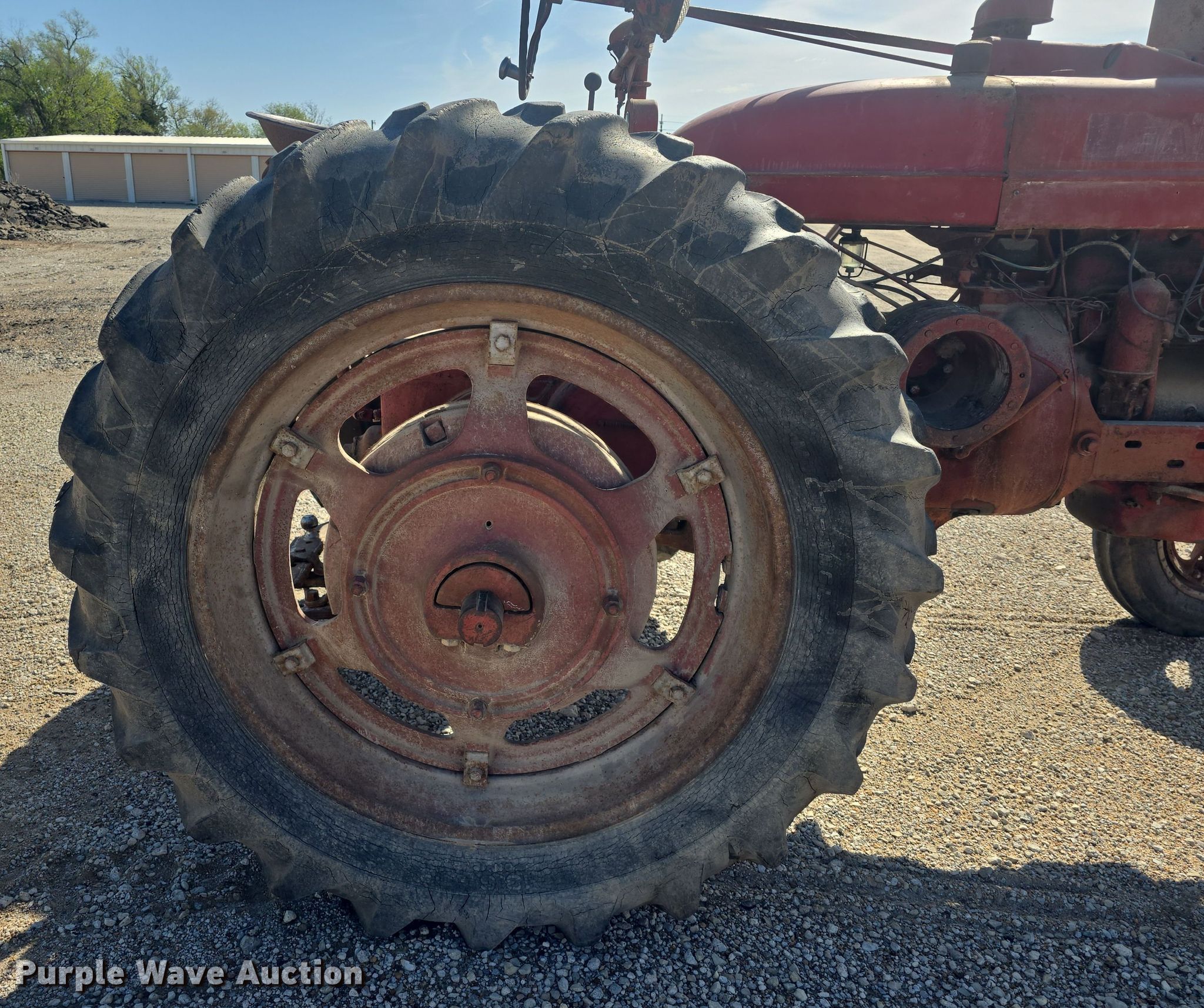 1944 International Harvester Farmall M tractor. Serial: FBK68740. Engine International Harvester, Displacement: 4.1L, Cylinders: 4, Fuel type: Gas. Transmission Manual, 5F - 1R. Features PTO: 540. Tires Front: 6.50-16, Rear: 13.6-38, Wheel weights: 2. Notes Possible engine issues, turns over but will not start , Battery missing. Abilene, KS 67410