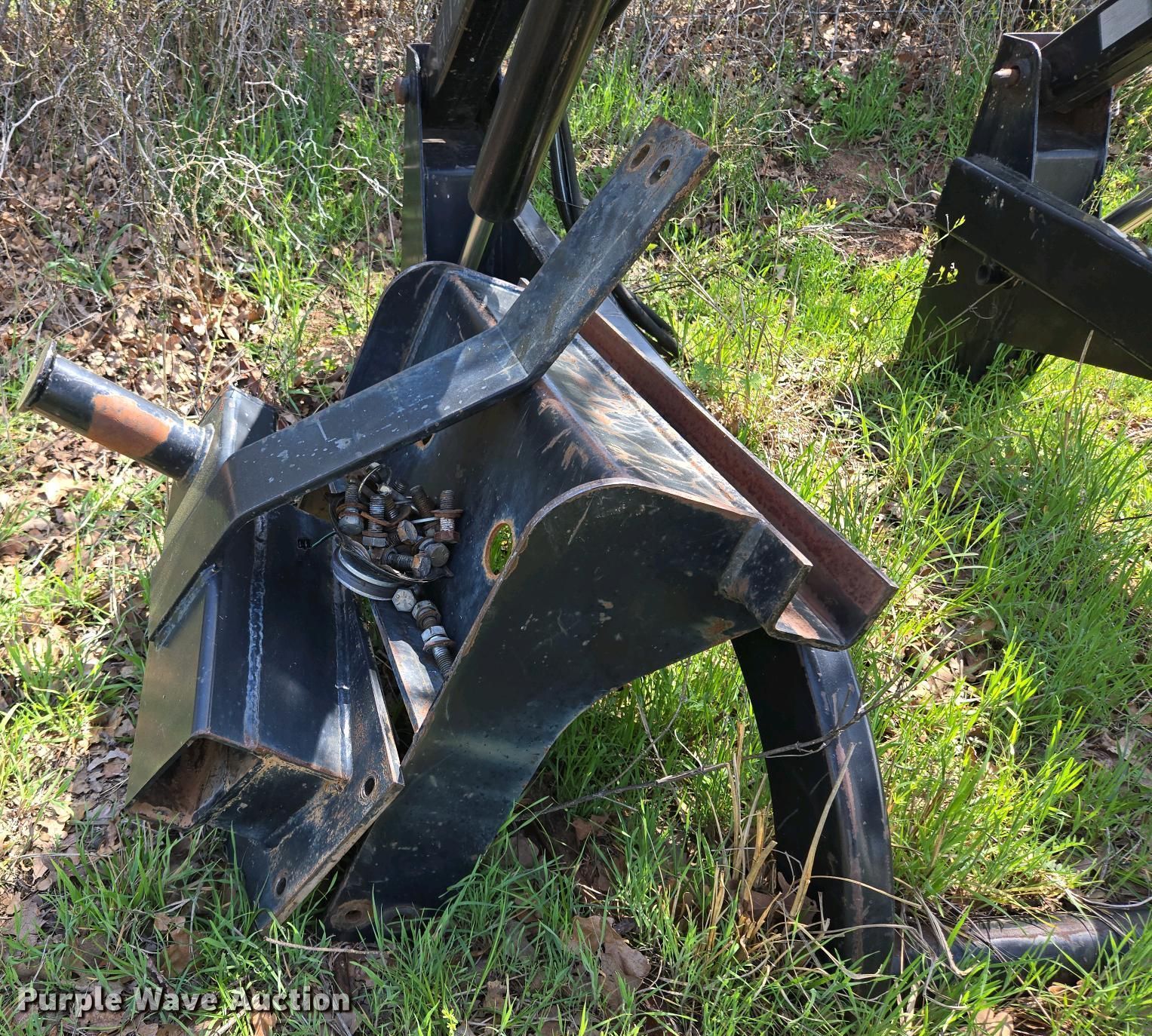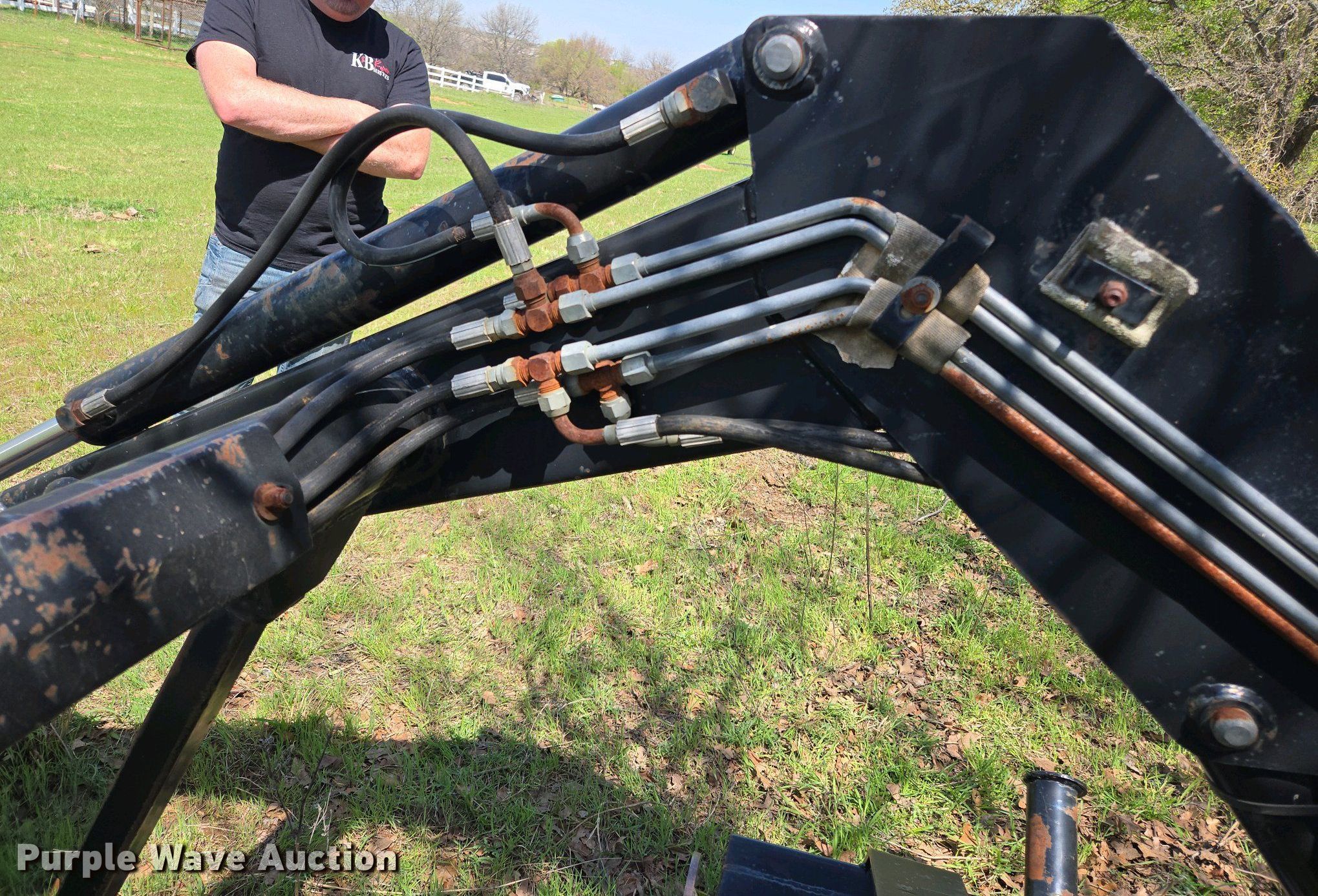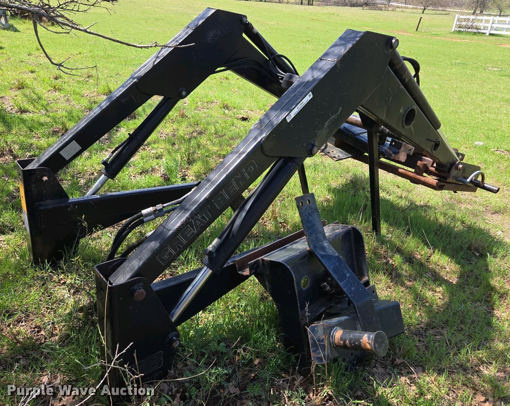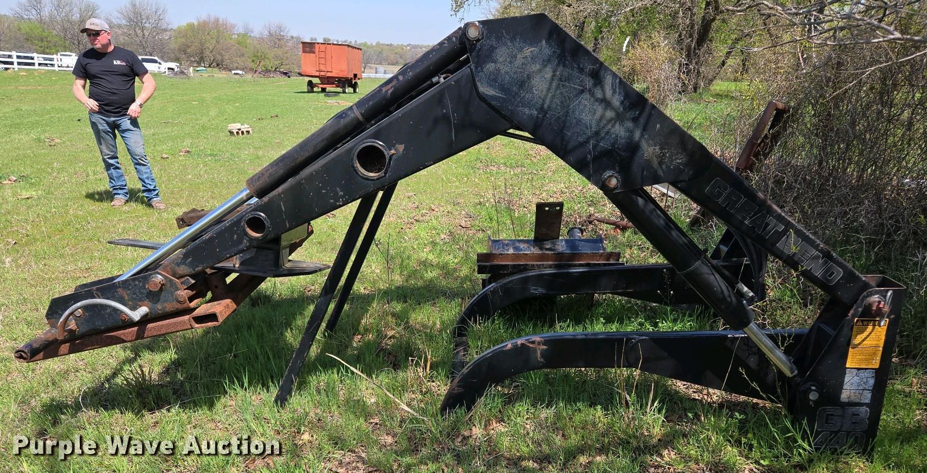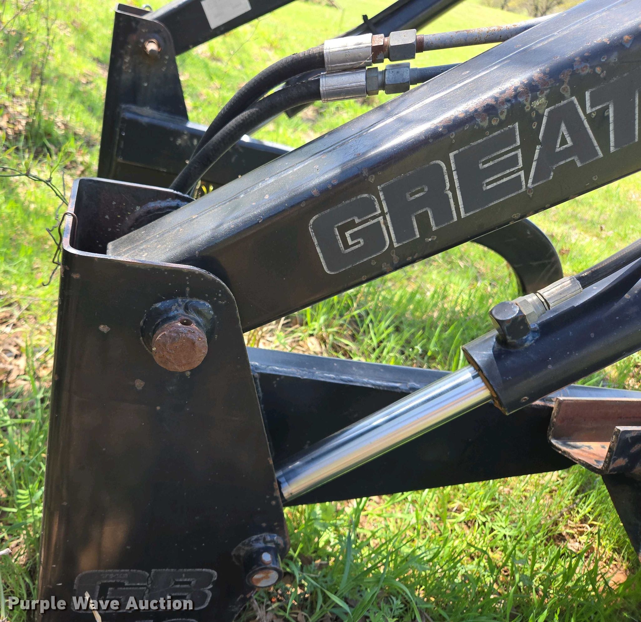 Purple Wave is selling a used Ag Tractor Loader or Attach. in Oklahoma. This item is a Great Bend GB440 loader with the following: Quick attach, Bucket, Width: 7'