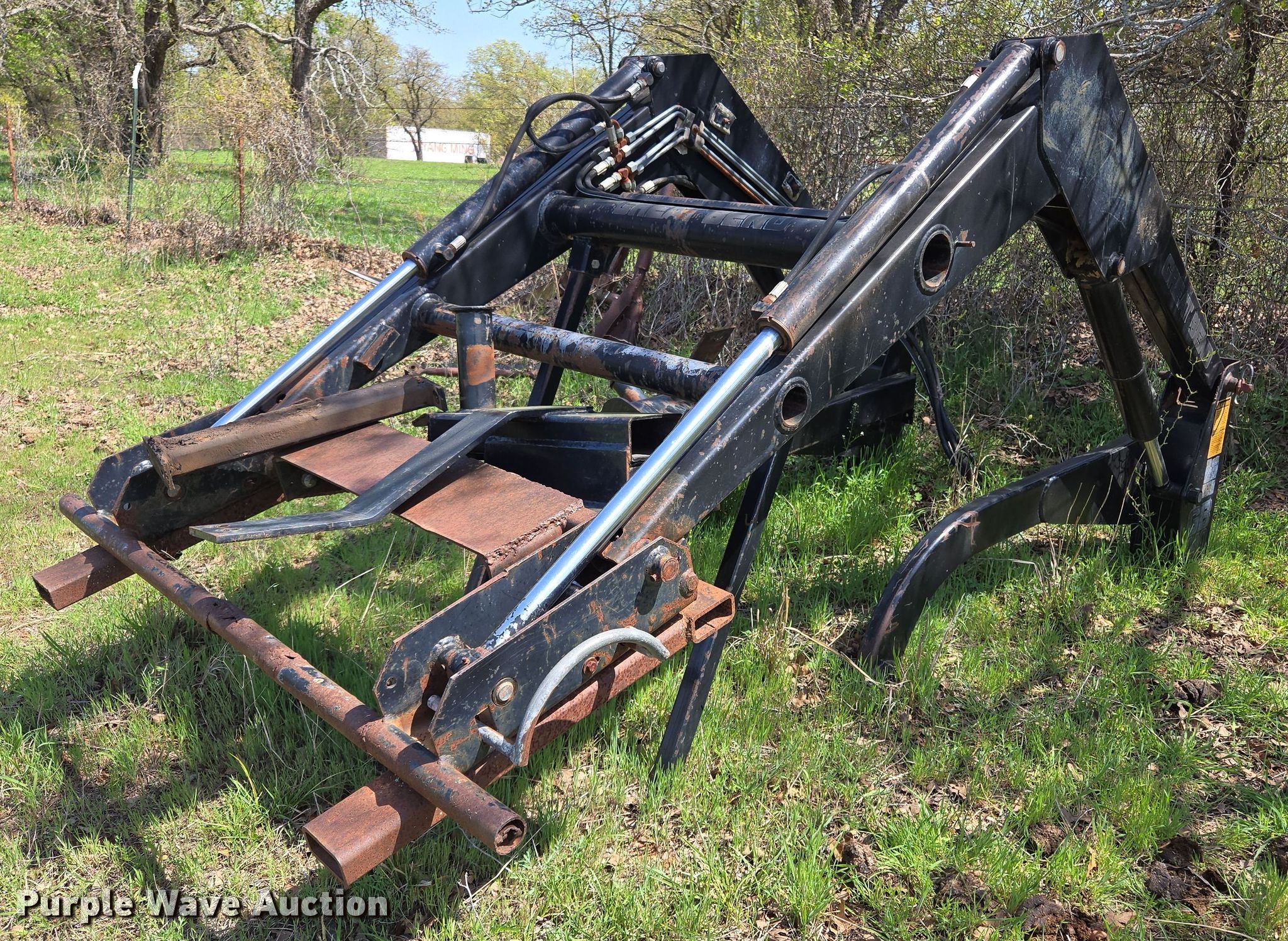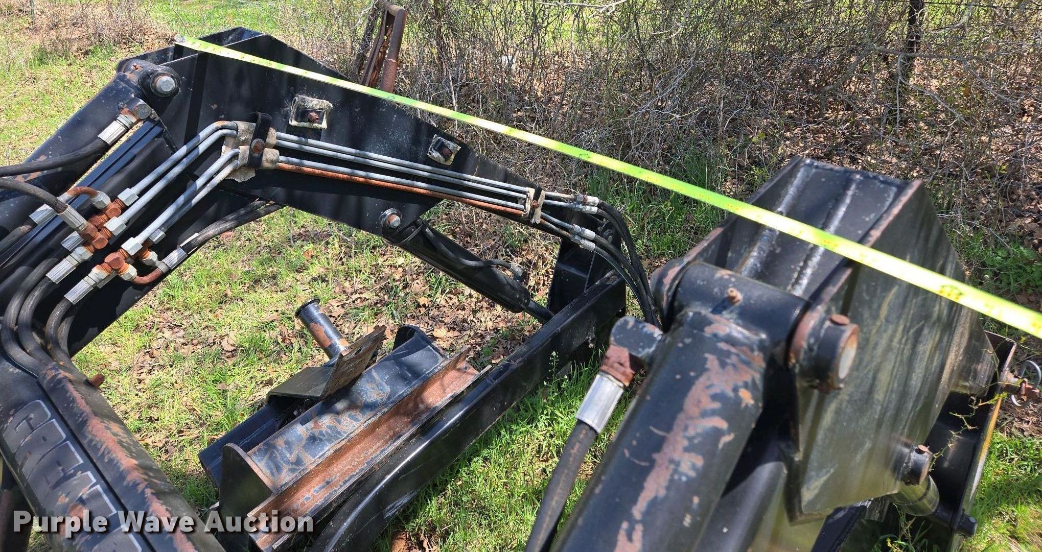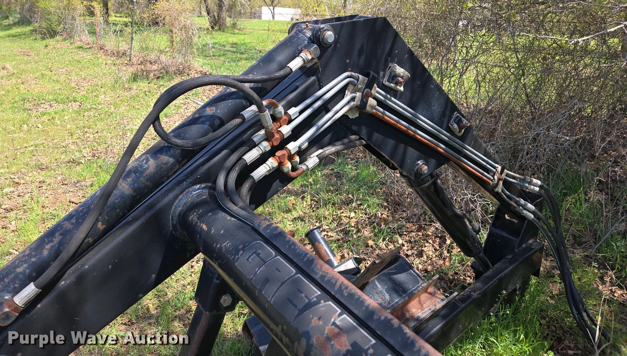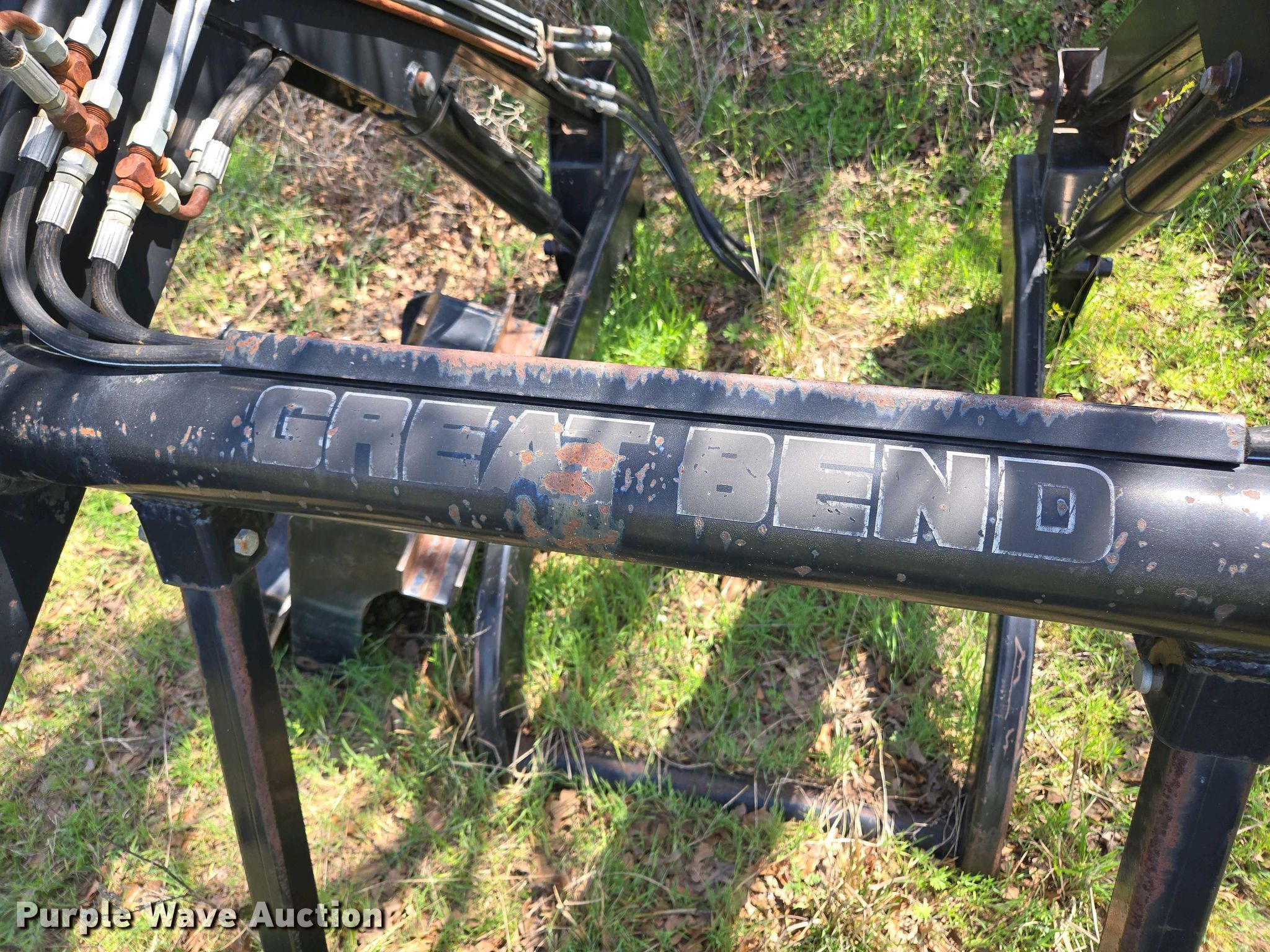 Purple Wave is selling a used Ag Tractor Loader or Attach. in Oklahoma. This item is a Great Bend GB440 loader with the following: Quick attach, Bucket, Width: 7'