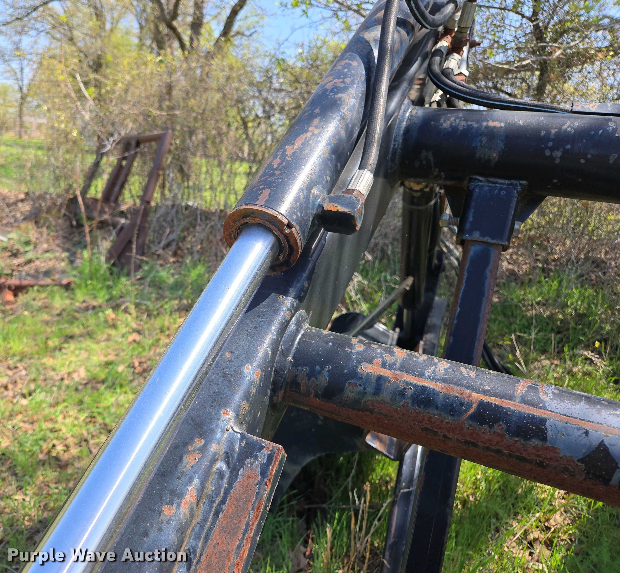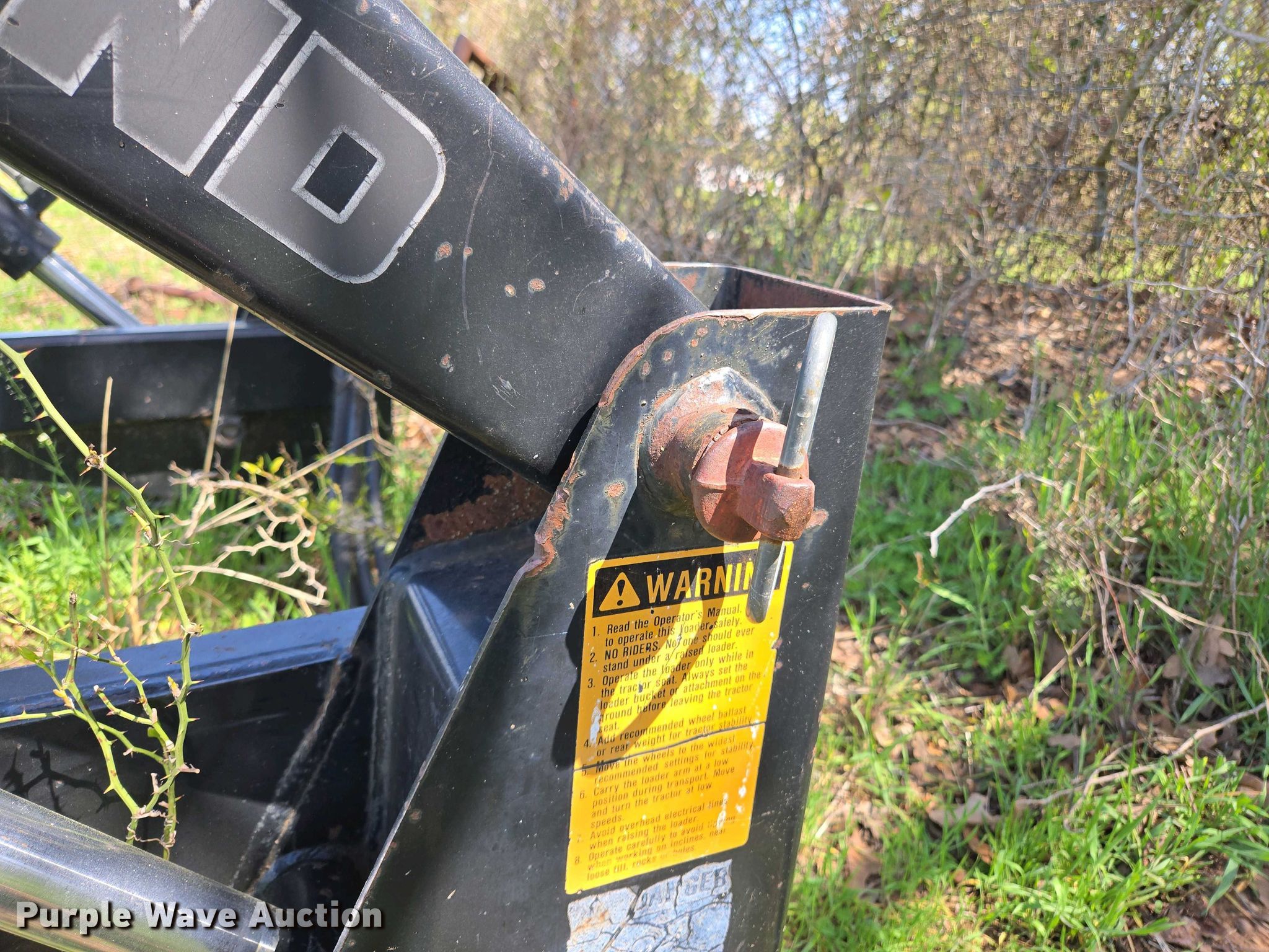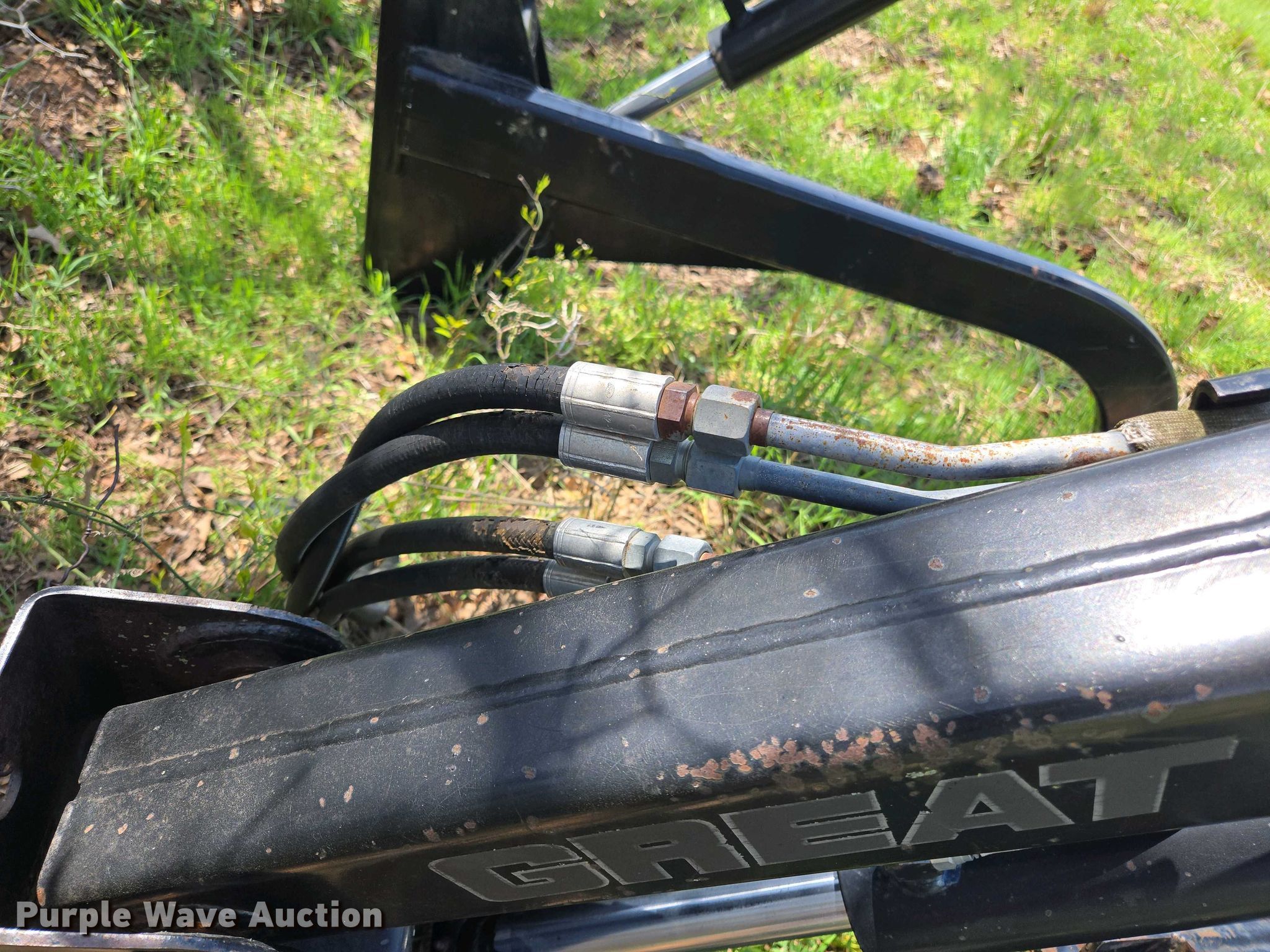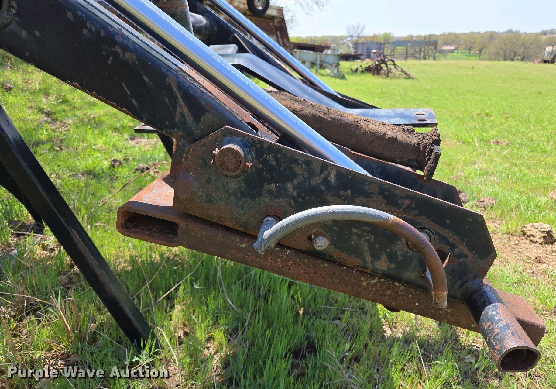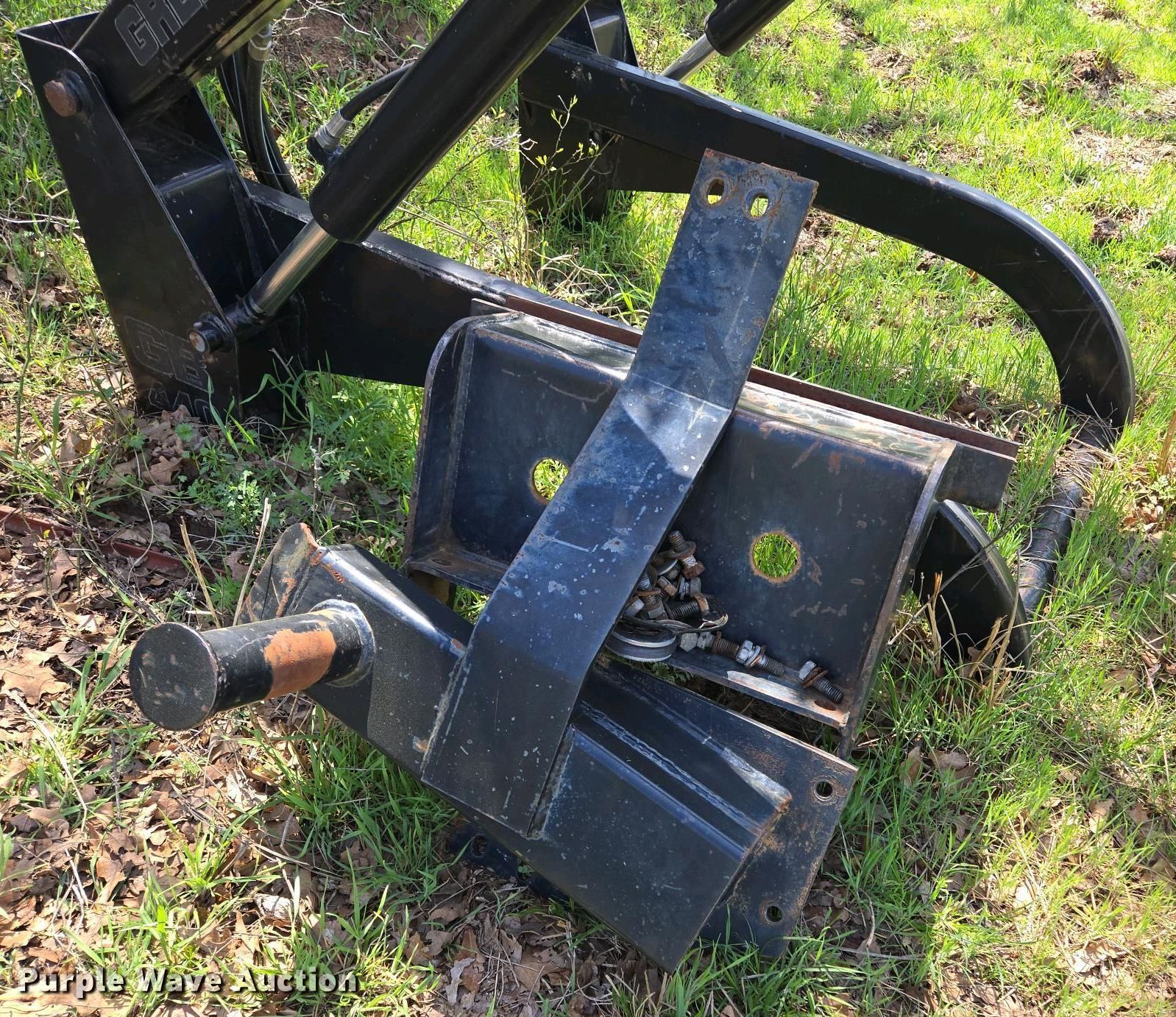 Purple Wave is selling a used Ag Tractor Loader or Attach. in Oklahoma. This item is a Great Bend GB440 loader with the following: Quick attach, Bucket, Width: 7'